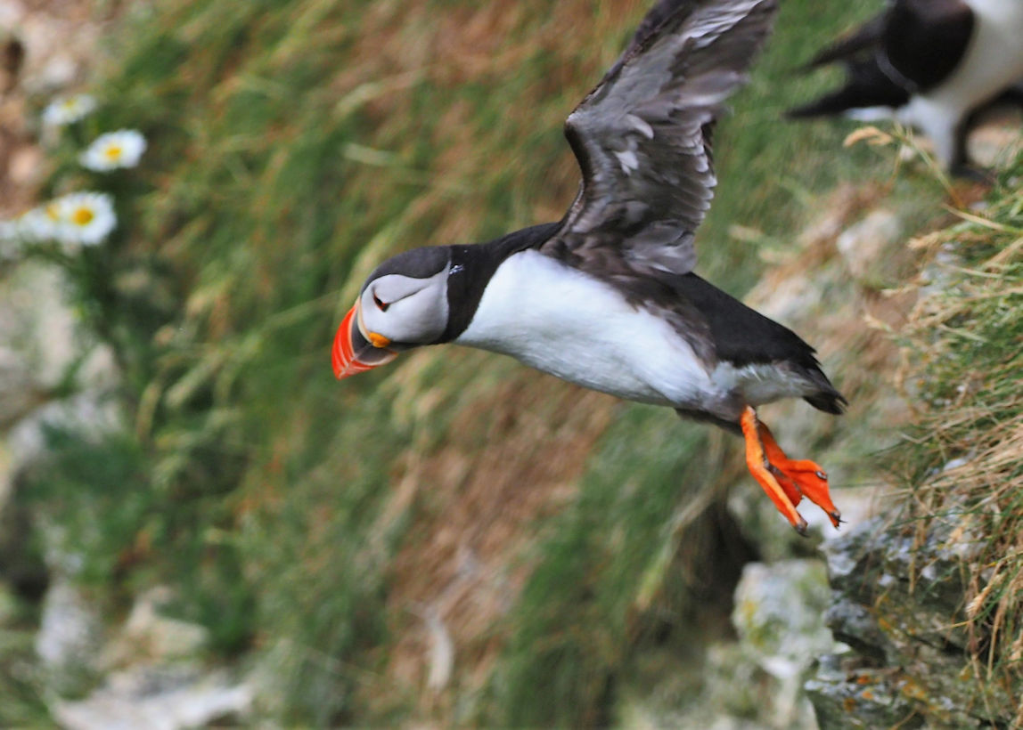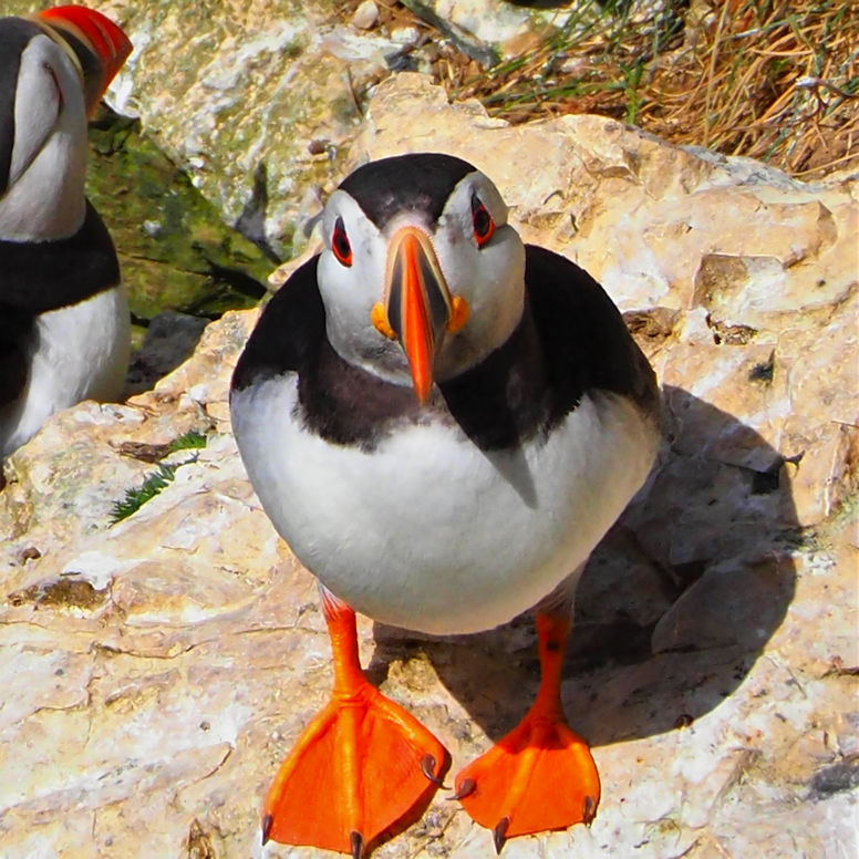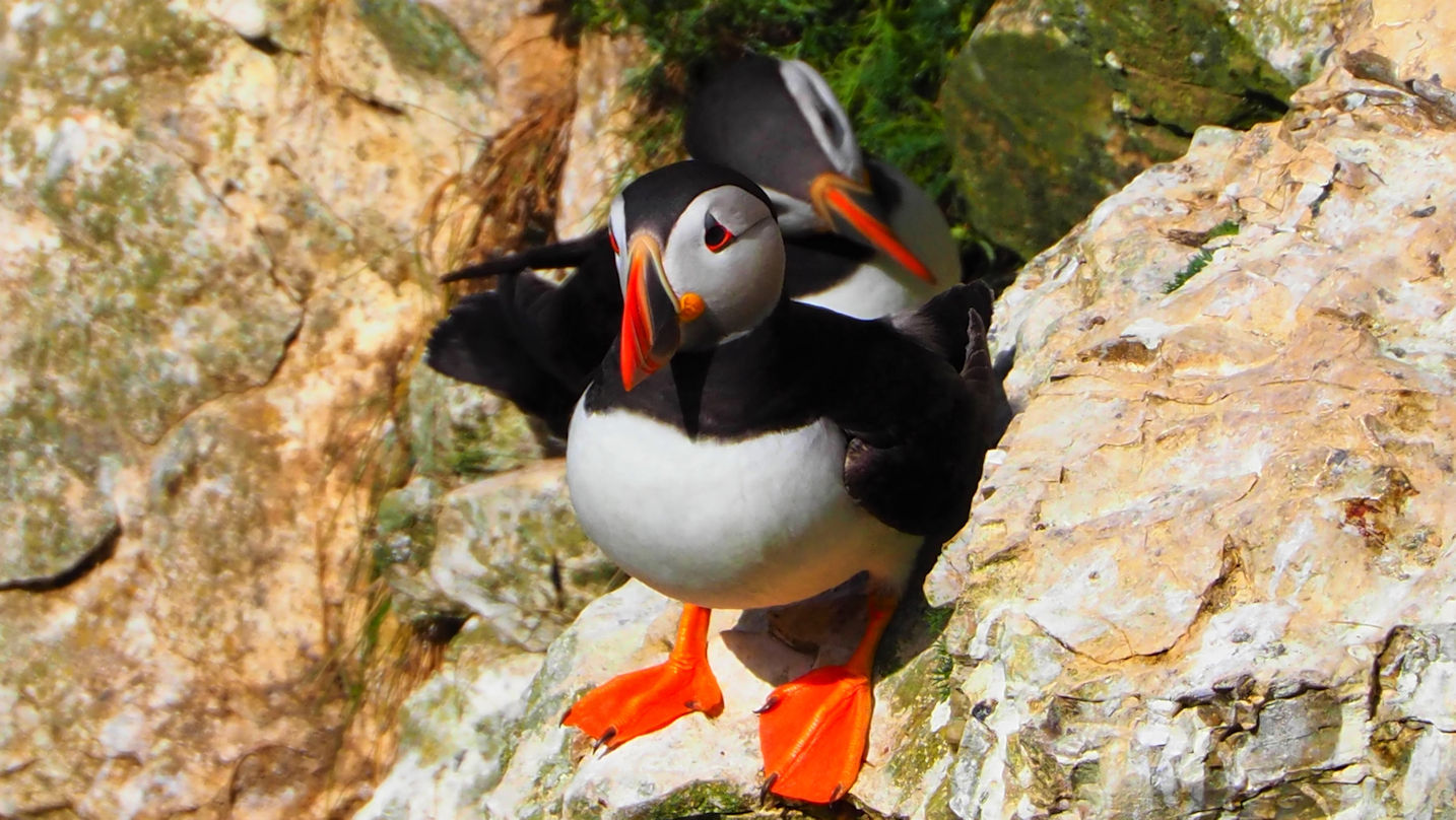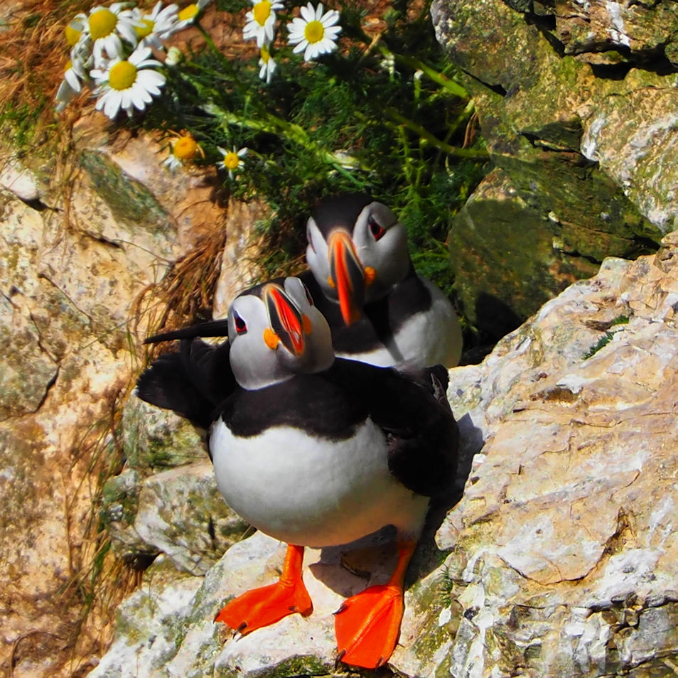 Da alle Aussichtsplätze, die wir passieren derzeit im Schatten liegen, entscheiden wir uns, nochmals an die Stelle zu gehen, an der wir gestern einige Puffins um etwa die gleiche Uhrzeit im Sonnenschein beobachten konnten. Und der Weg lohnt sich. Hier findet heute eine regelrechte Puffinparade statt. Überall sitzen die kleinen Clowns der Meere und lassen sich wunderbar ablichten. Schade, dass ihr das Vogelstimmengewirr nicht hören könnt, wenn ihr Euch die Bilder anseht. Es ist wirklich ein Schauspiel. Schön an diesem Ort ist auch der Zaunkönig, der ganz ohne Scheu um uns herumhüpft und sich in den Gräsern sitzend ablichten lässt.
