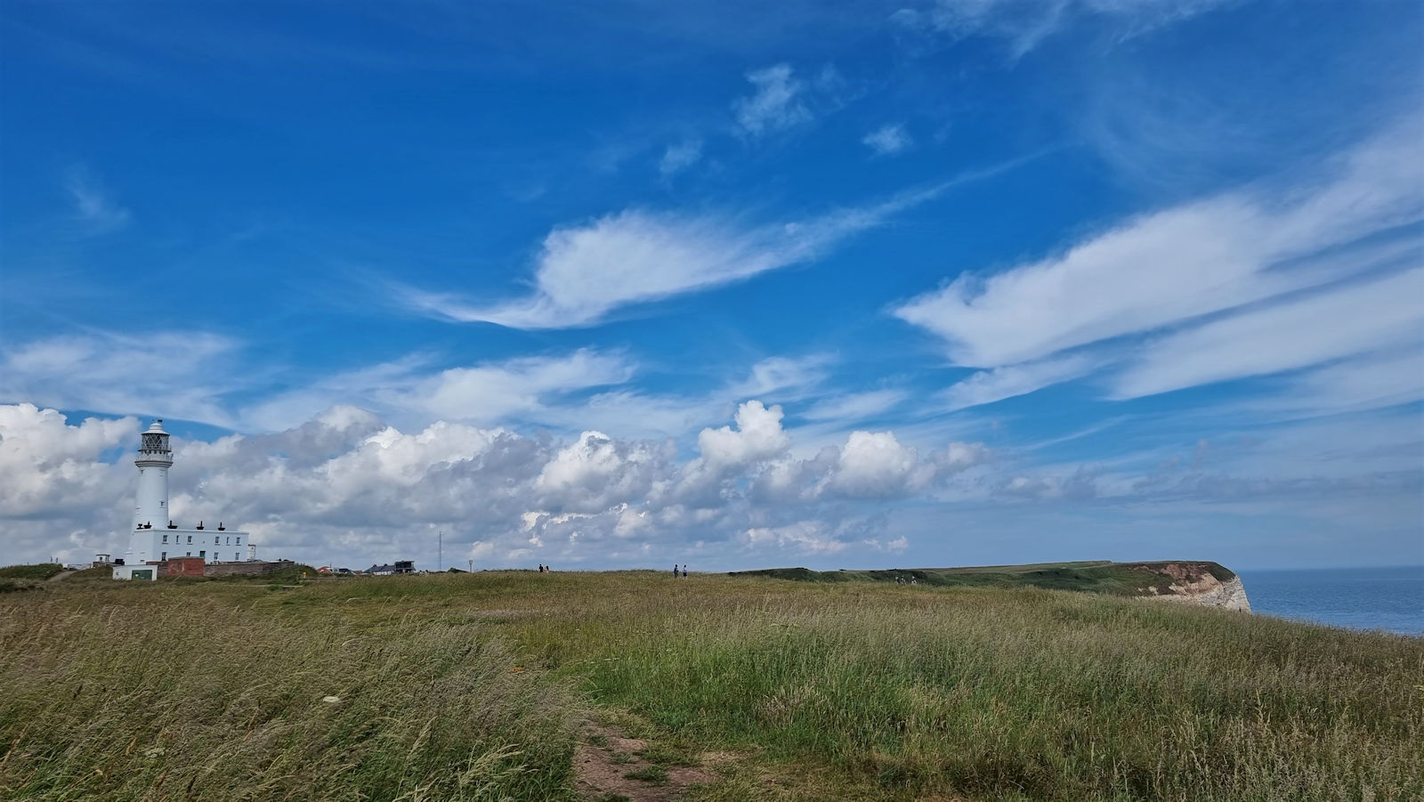 Wie es sich gehört hat es nachts geregnet und bereits kurz nach 7 werden wir von hellem Sonnenlicht und blauem Himmel geweckt. Nach einem Gassigetrödel packen wir gemütlich zusammen und es geht den schmalen Feldweg hinunter zur Straße und kurz nach halb 9 parken wir vor dem Leuchtturm von Flamborough.