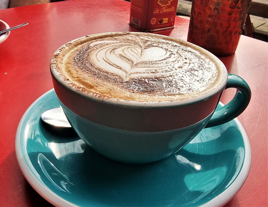Für unseren Morgenkaffee bzw. ein leckeres Frühstück gefällt uns das kleine Café „Pig & Pastry“ ganz gut. Aber jetzt um 8 Uhr ist dort noch nicht geöffnet. Trotzdem offeriert uns der nette Besitzer einen wundervollen Cappuccino, den wir dankend annehmen. Danach erstehen wir noch im nebenanliegenden Bäcker ein Brot und es geht zum Frühstück zurück ins Womo…noch ein leckerer Bialetti-Kaffee und ein Croissant und wir befinden uns schweren Herzens auf unserem Weg in Richtung Süden.