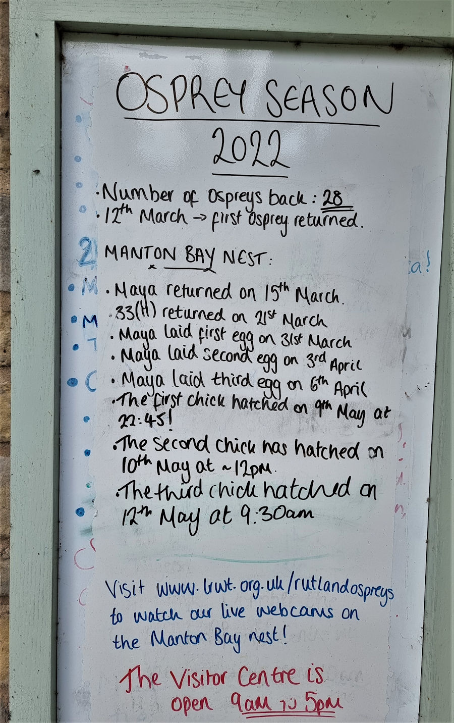 Hunde sind hier übrigens erlaubt! Schon beim Eintreten sehen wir auf der Tafel, dass derzeit ein Fischadlerpaar hier nistet und auch Nachwuchs hat. Wir sind sehr gespannt. Aus den View Points heraus kann man die Adler zwar sehen, aber selbst für unsere Objektive ist die Entfernung und das fehlende Licht fast nicht zu handeln. Nennen wir die Adlerfotos einfach mal „Alibifotos“. Auch die anderen Mitbewohner des Sees sind fast alle zu weit entfernt, um sie gut ablichten zu können. Wir sind halt auch sehr verwöhnt von Bempton Cliffs und Skomer Island.