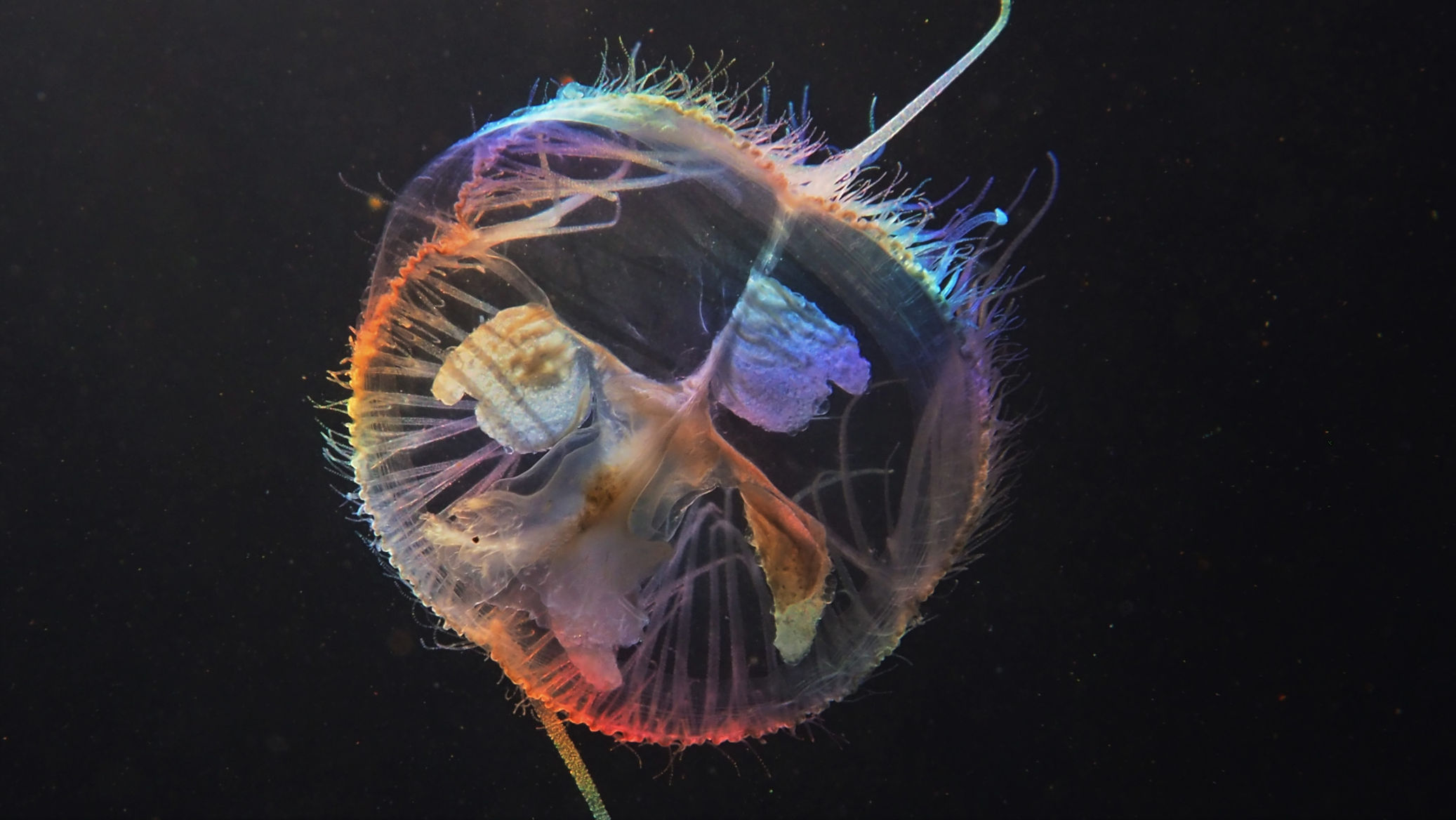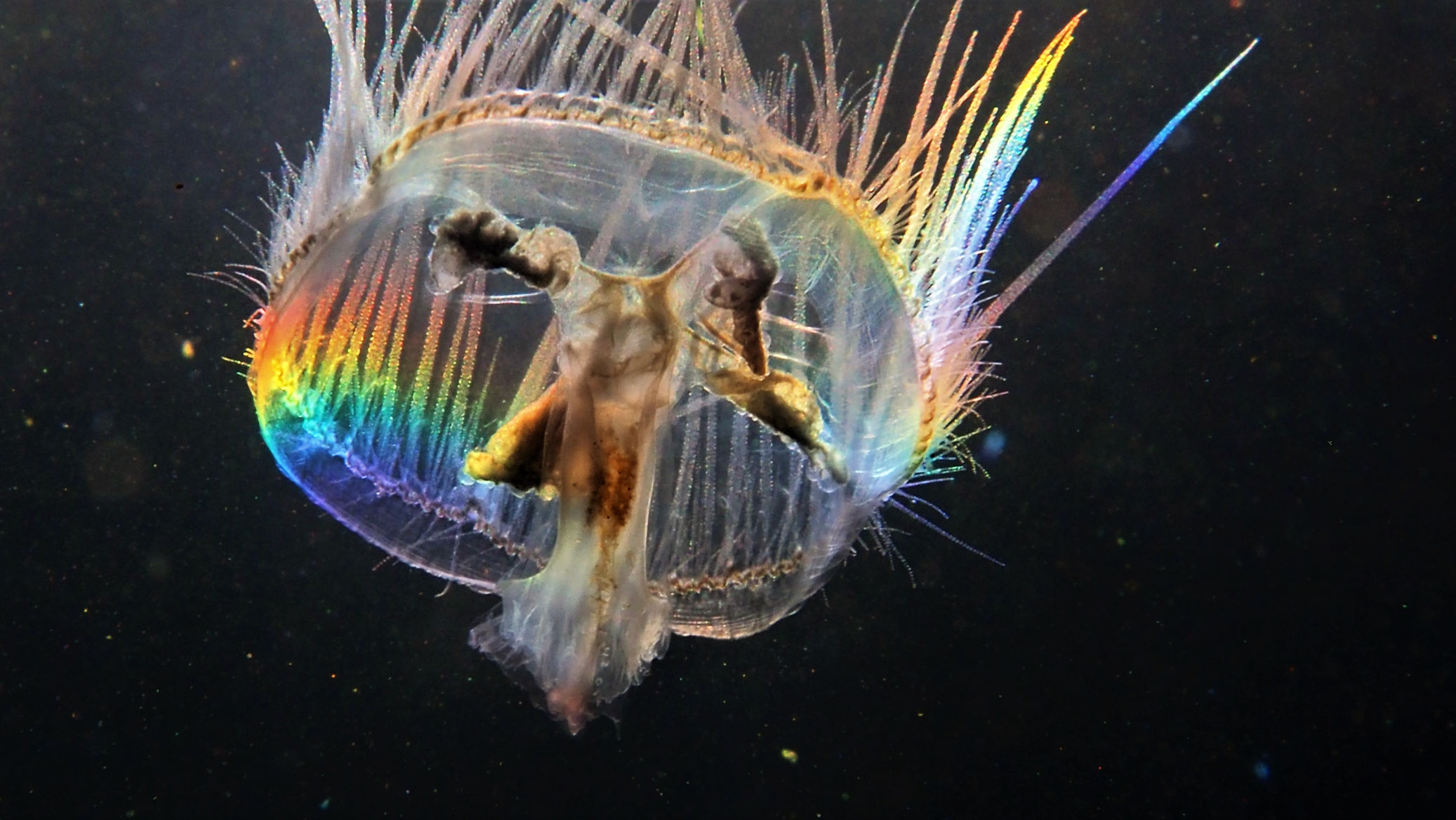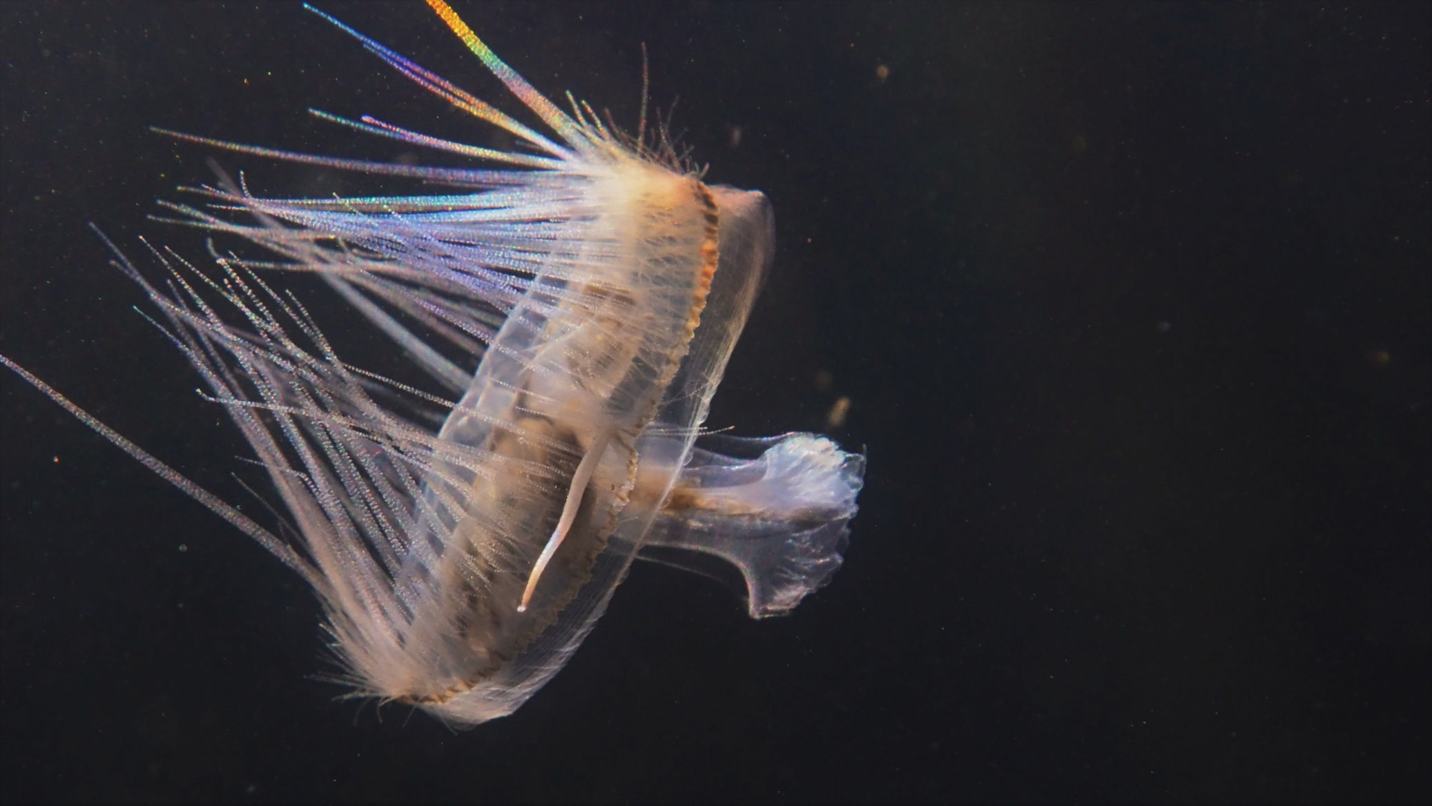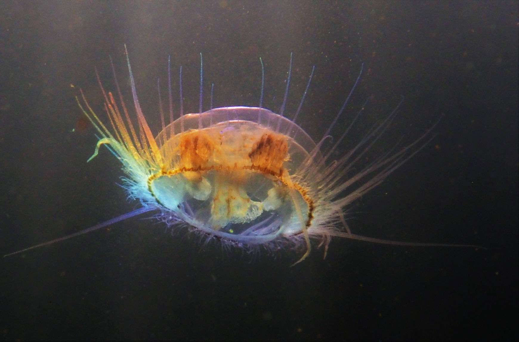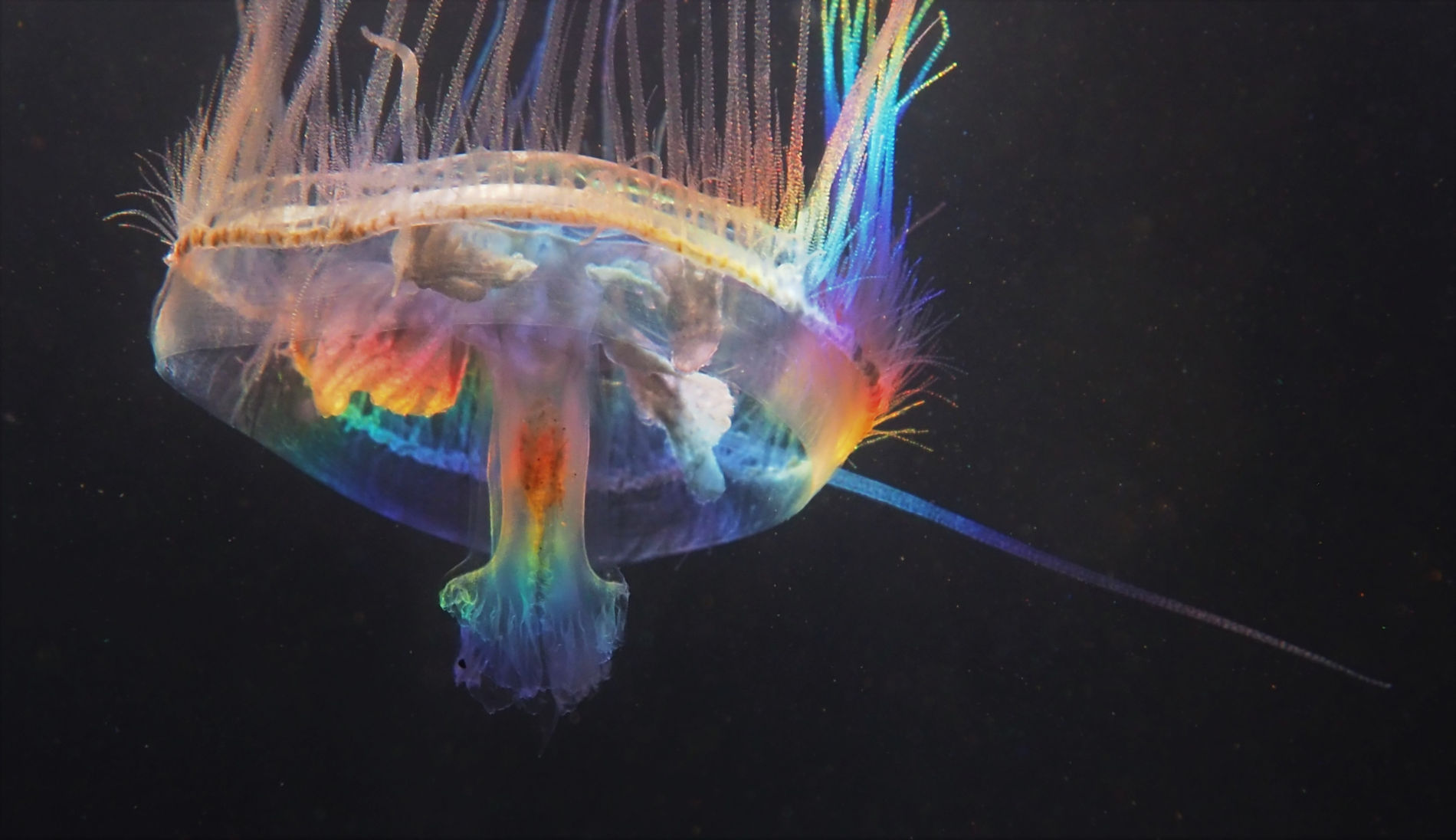 Nach einigen Änderungen an den Einstellungen und des Winkels zum Objekt ist er da: der erste richtig magische Moment: ein Volltreffer der Regenbogenfarben in der Qualle.