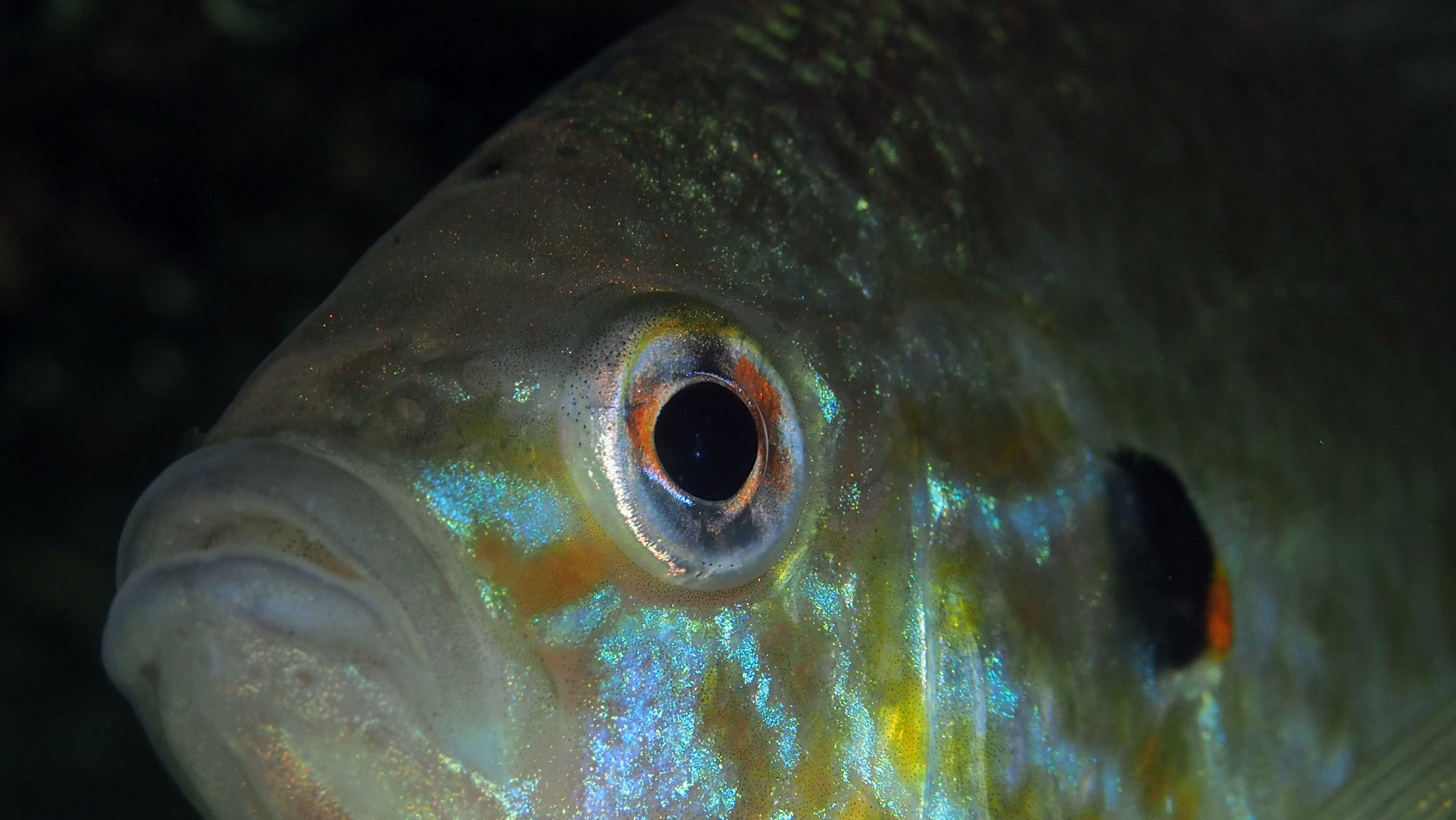Nachdem sich die Blicke von diesen bezaubernden Tieren endlich lösen, ist es Zeit für einen Besuch an der Brutstätte einer der vielen Sonnenbarsche. Denn nur dann hat man die Möglichkeit wirklich sehr nah an diese sonst so scheuen Tiere heranzukommen. Eine echte Herausforderung für den Fotografen, den richtigen Moment zu erwischen. Heißt: genau in diesem Moment „freischwebend“ – nicht wie bei der Landfotografie mit einer durch ein Stativ fixierten Kamera- den Auslöser zu betätigen.