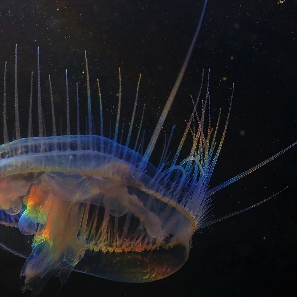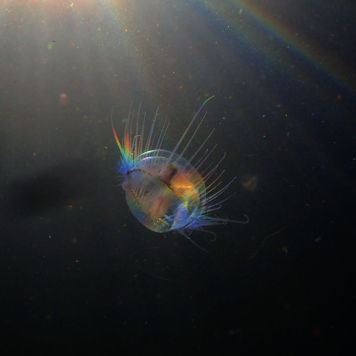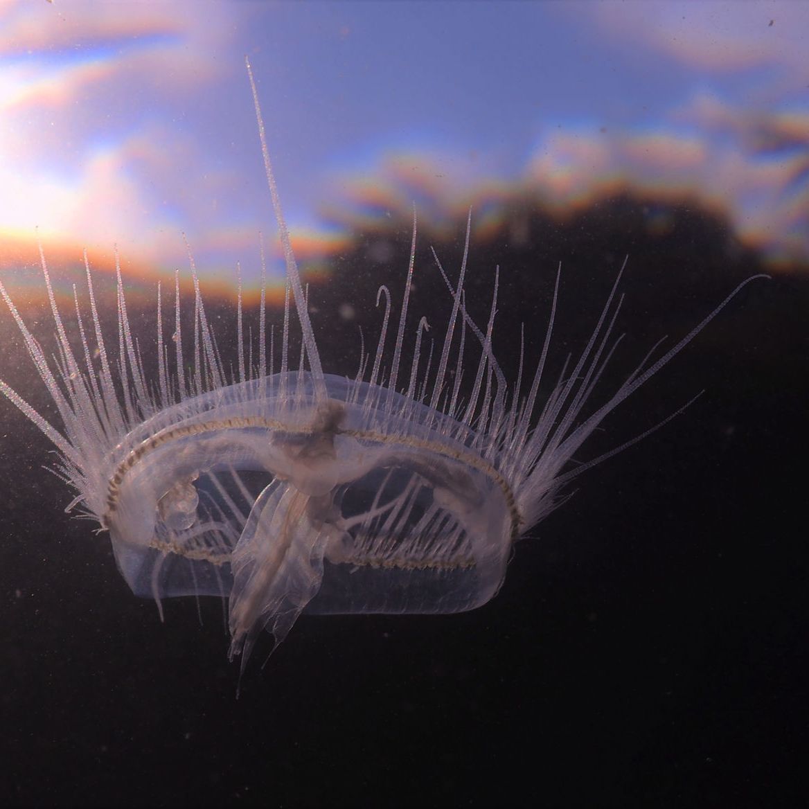 Erst am Samstag während einer Wolkenlücke findet sie sich während des Tauchgangs plötzlich in einer Wolke dieser filigranen Tiere wieder. Die Sonne verschwindet hin und wieder hinter einer Wolke, um dann erneut diese bunte Magie der Spektralfarben in diese kleinen wundervollen Tier zu zaubern…auch ein paar bewegte Bilder für Euch hat sie mitgebracht….