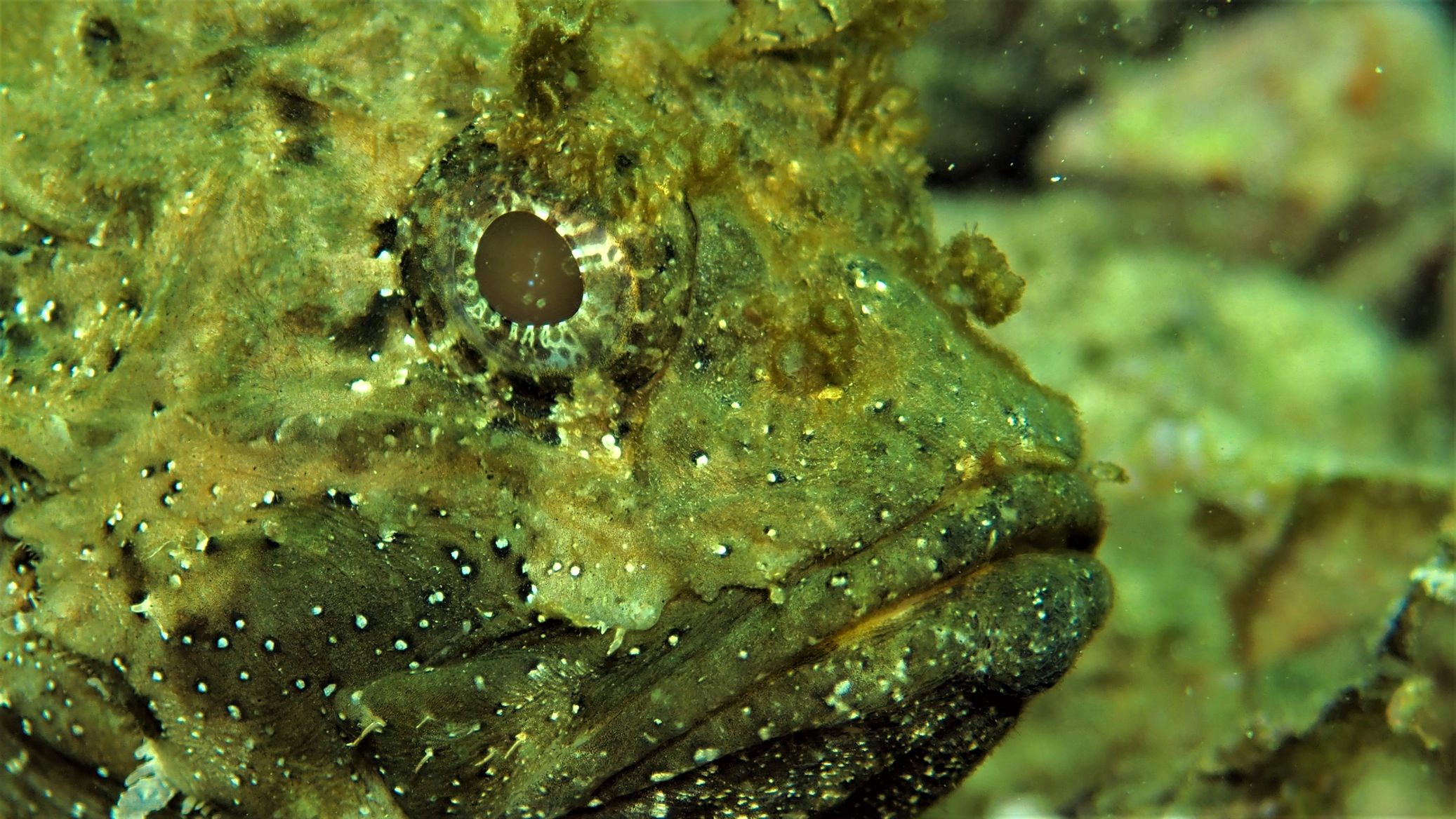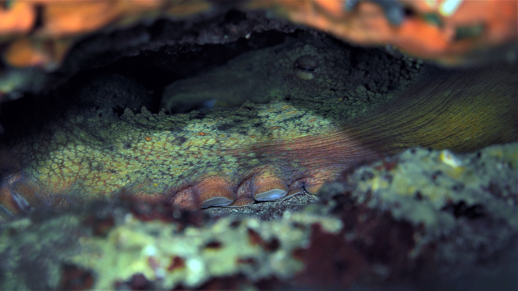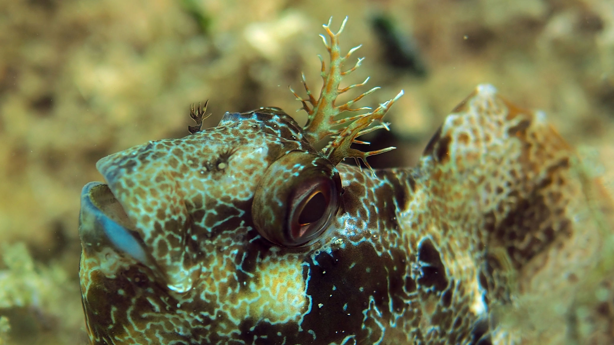 Der von uns reservierte Stellplatz 24 B ist jetzt gegen halb 10 noch belegt. Also statten wir Neptuns Welt einen weiteren Besuch ab. Neben den üblichen Mittelmeerbewohnern zeigen sich eine Parnergarnele und ein kleiner Knurrhahn. Ab und an schafft es auch die Sonne, eine tolle Atmosphäre unter die Wasseroberfläche zu zaubern, aber leider nicht nachhaltig.