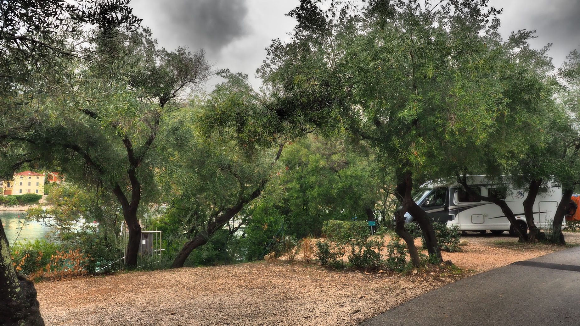 Gegen 8 Uhr blinzelt die Sonne das erste Mal zaghaft durch die Olivenzweige. Zeit für das Fellzwergegassi. Kurz nachdem die beiden wieder getrocknet sind, kommt Jojo zum Verabschieden und ein letztes Mal „Amadeo zum Spielen auffordern“ vorbei. Und dann fahren unsere netten Nachbarn mit ihrer Jojo in ihrem „Emil“ davon.