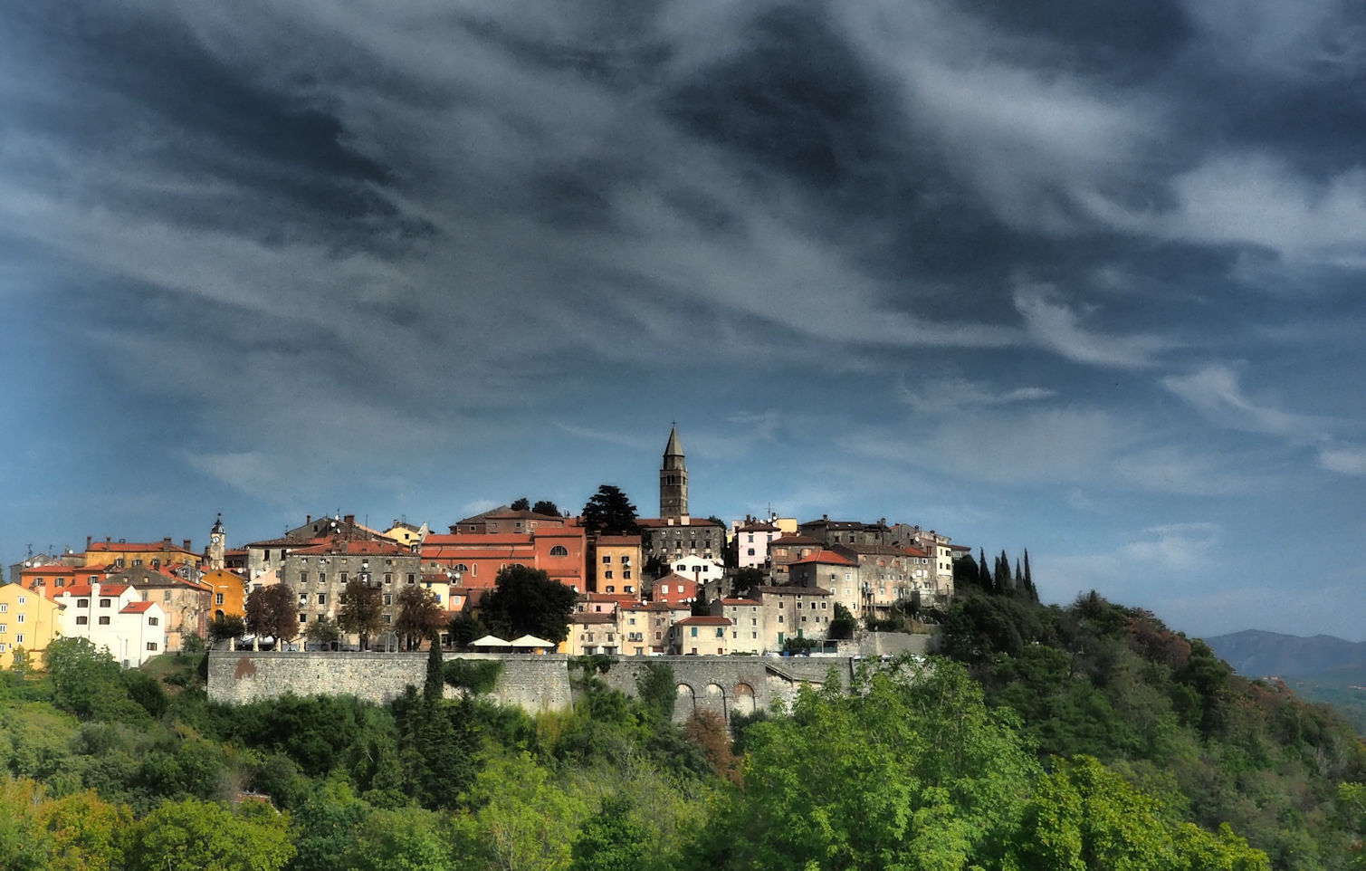 Kurz nach 11 sitzen wir im Womo und schlängeln uns die enge Straße in Richtung Labin hinauf. Es ist mit 17 Grad noch recht kühl heute Morgen und die Sonne tut sich hinter den vielen, feinen Wolken auch schwer. Unsere Strecke führt uns über Rasa, Cere und Sminj weiter in Richtung Vrsar. Kurz vor Flengi nimmt uns ein Wohnmobil mit deutschen Kennzeichen die Vorfahrt. Statt dann, wie gerade noch vorgedrängelt, einfach in angemessenem Tempo vor uns her zu fahren, steht der Fahrer bei der kleinsten Biegung, die die Straße macht und erst recht in den Kurven nahezu permanent auf der Bremse.