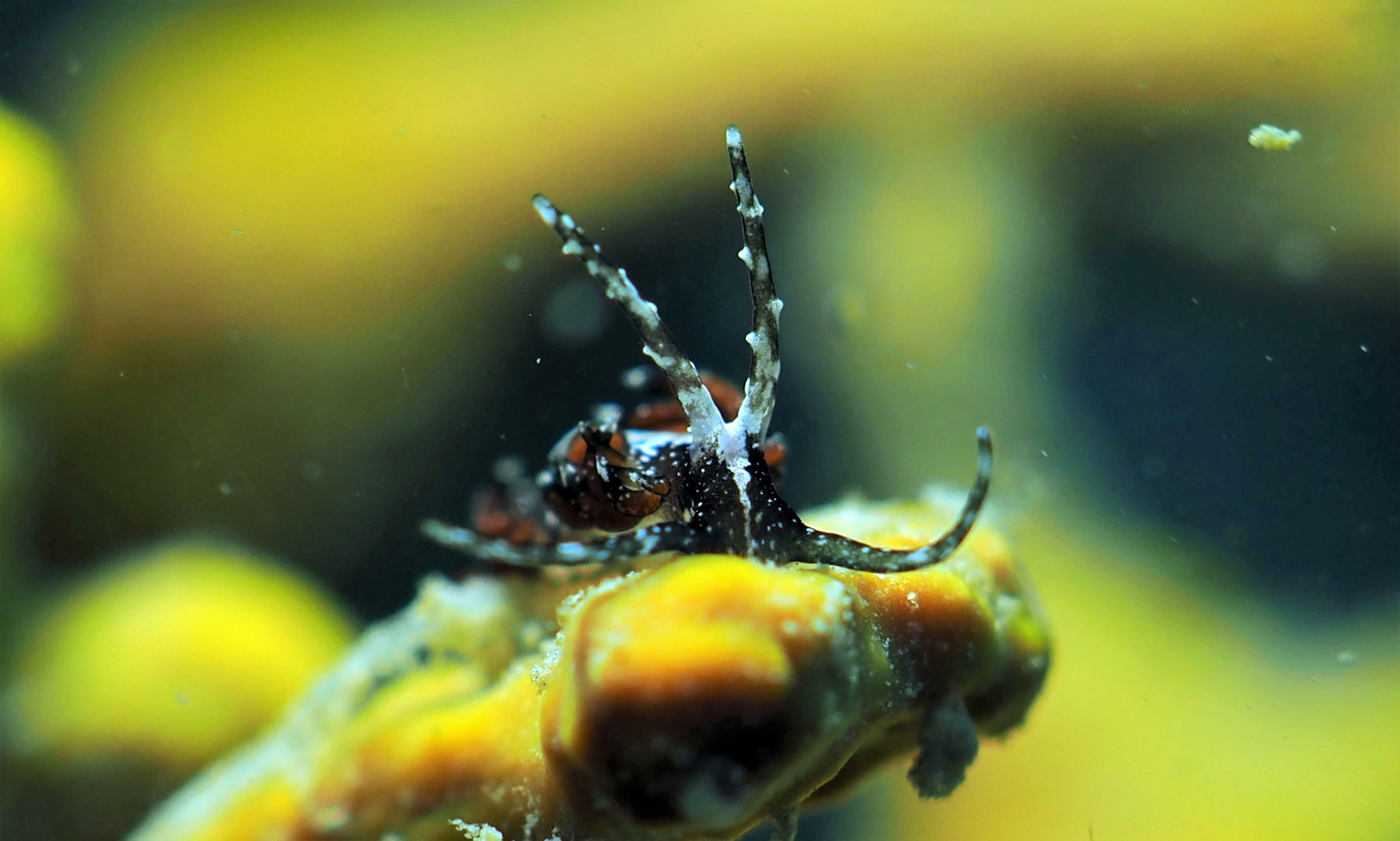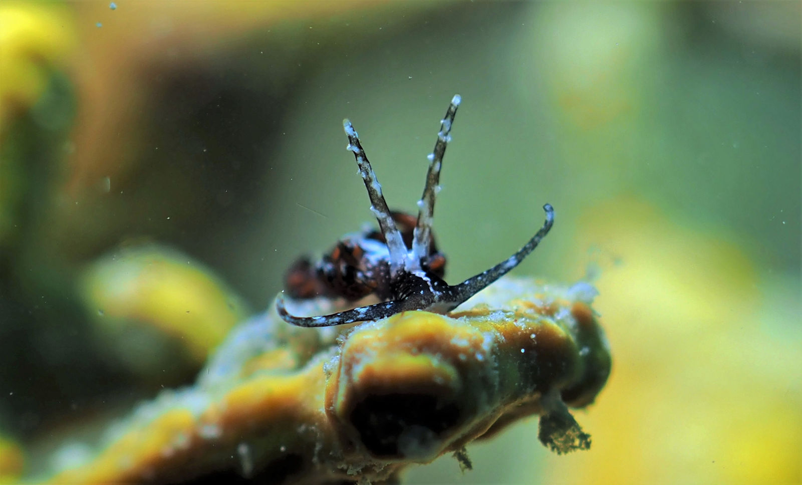 Genau das ist es, was uns am Mittelmeertauchen so gefällt. Die Schönheit liegt in den verborgenen, gut versteckten Winzlingen. Und jedes Mal, wenn wir in diesem Meer tauchen, begegnet uns mindestens ein Tier, das wir noch nie vorher gesehen haben. Um welche Schnecke es sich genau handelt, haben wir noch nicht rausfinden können, werden aber bei Identifizierung das Ergebnis nachreichen.