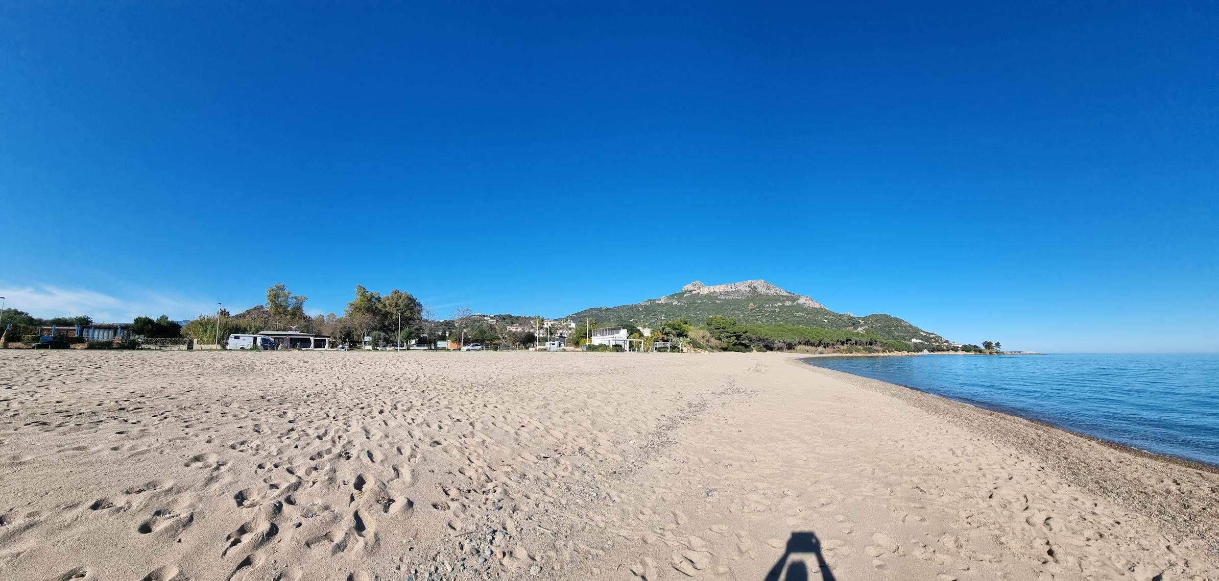 Als wir uns Baunei nähern ist der Blick auf die Ebene von Arbatax einfach nur beeindruckend. Die Durchgangsstraße von Baunei selbst ist an manchen Stellen sehr eng, aber da fast nichts los ist, einfach zu meistern. Und dann geht es steil bergab in Richtung Santa Maria Navarese, wo wir nach weiteren 1000den von Kurven am südlichen Ortsende parken.