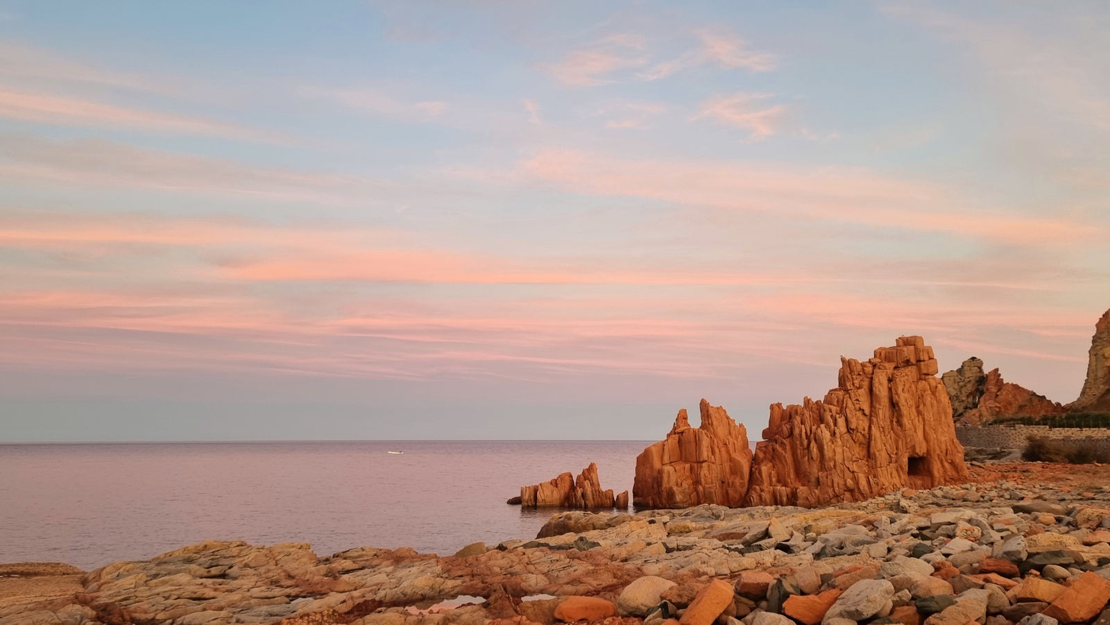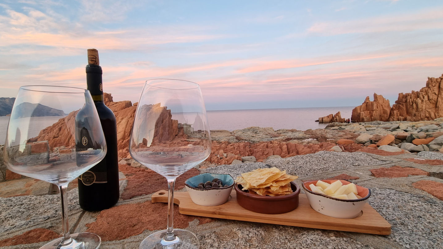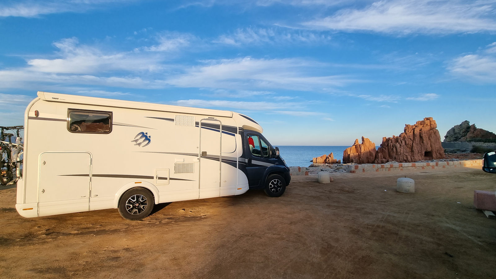 Und nun sitzen wir bei unserem Aperitivo Sardo vorm Womo an den magischen Roten Felsen, schauen auf’s Meer, genießen den Moment und überlegen, was wir morgen unternehmen….Ergebnis natürlich offen….