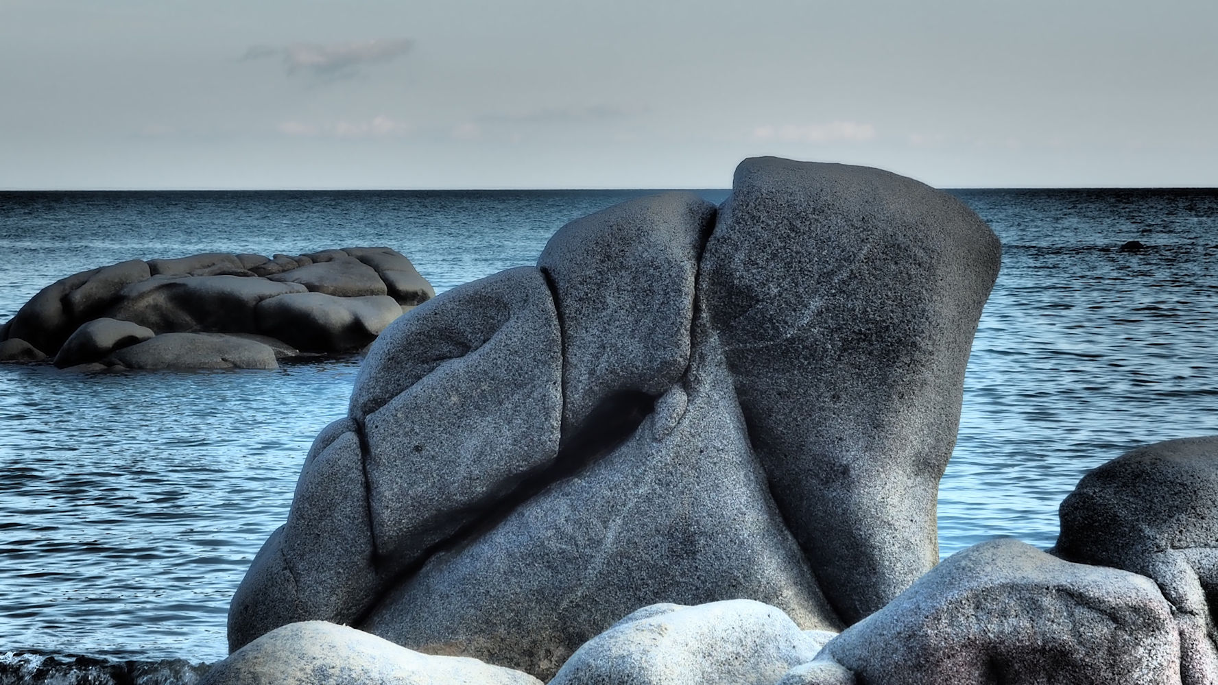 Die Felsen und das klare Wasser hier am Strand verströmen ein richtiges Seychellenfeeling und es macht Spaß, die toll geformten Steine in Szene zu setzen. Am witzigsten finden wir den riesigen Fuß, der, so scheint es, halb eingegraben im Sand liegt. Wem der wohl gehören mag?