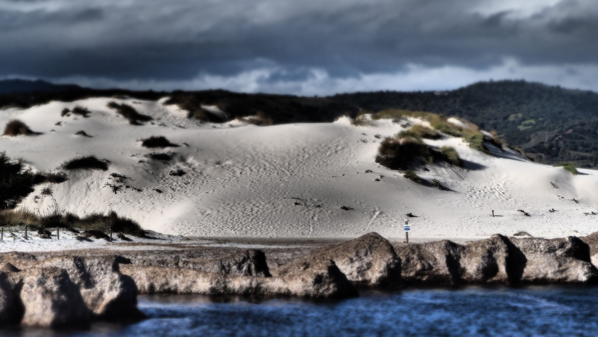 Weiter führt uns unsere Tour zum Parkplatz von Il Moletto am Capo Comino. Eine schneeweiße Dünenlandschaft am tiefblauen Meer. Vorgelagert eine Insel aus rotem Gestein und im Hintergrund majestätisch die Tavolara Insel. Aber der Wind ist recht kalt, so beschließen wir, bis nach Orosei weiterzufahren.