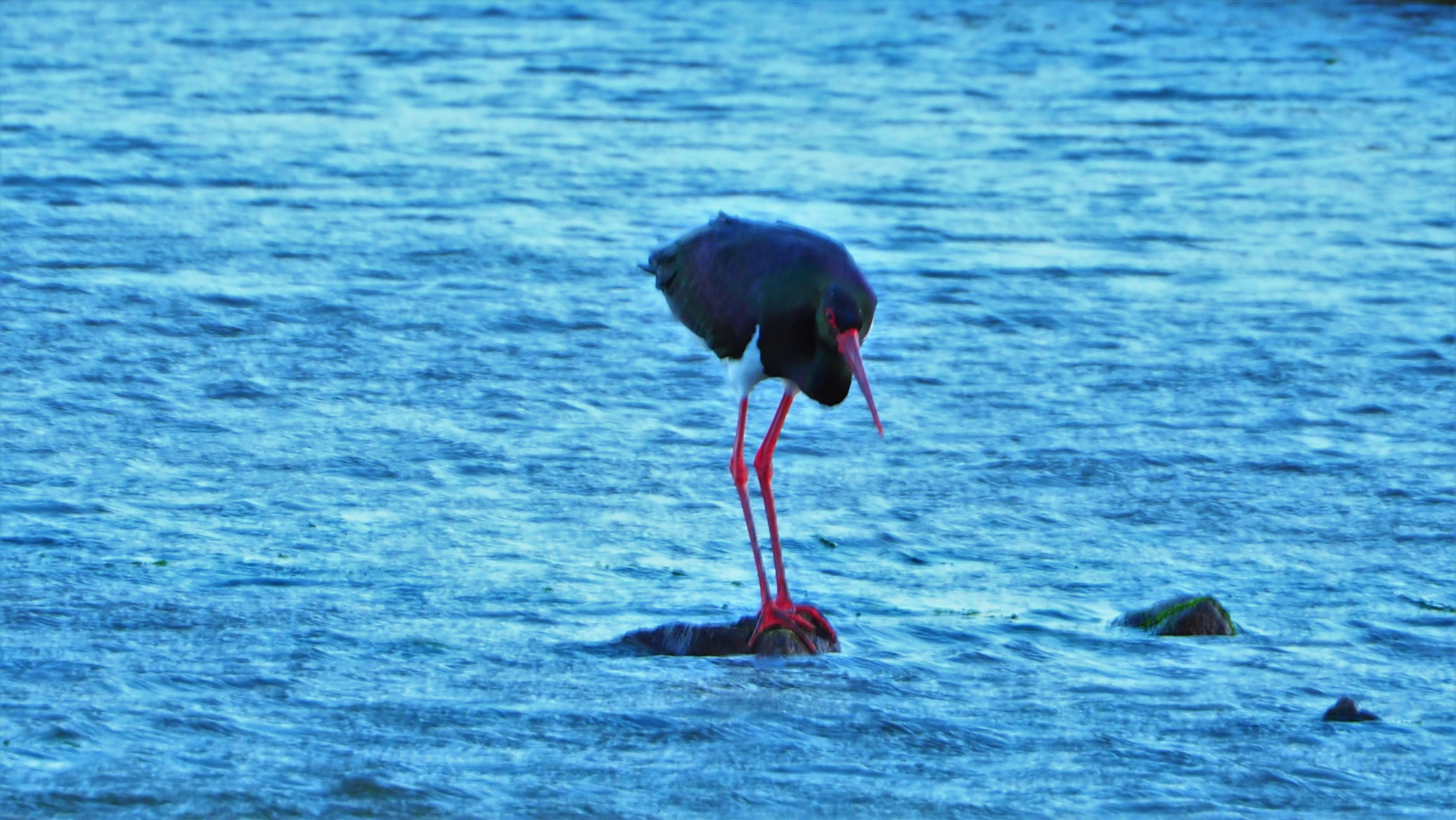 Als wir dort ankommen, steht eine kleine Überraschung im See. Ein wunderschöner, eher seltener Schwarzstorch. Leider ohne Sonne, aber wir freuen uns riesig über diese Sichtung.