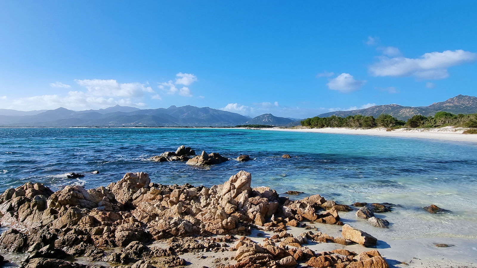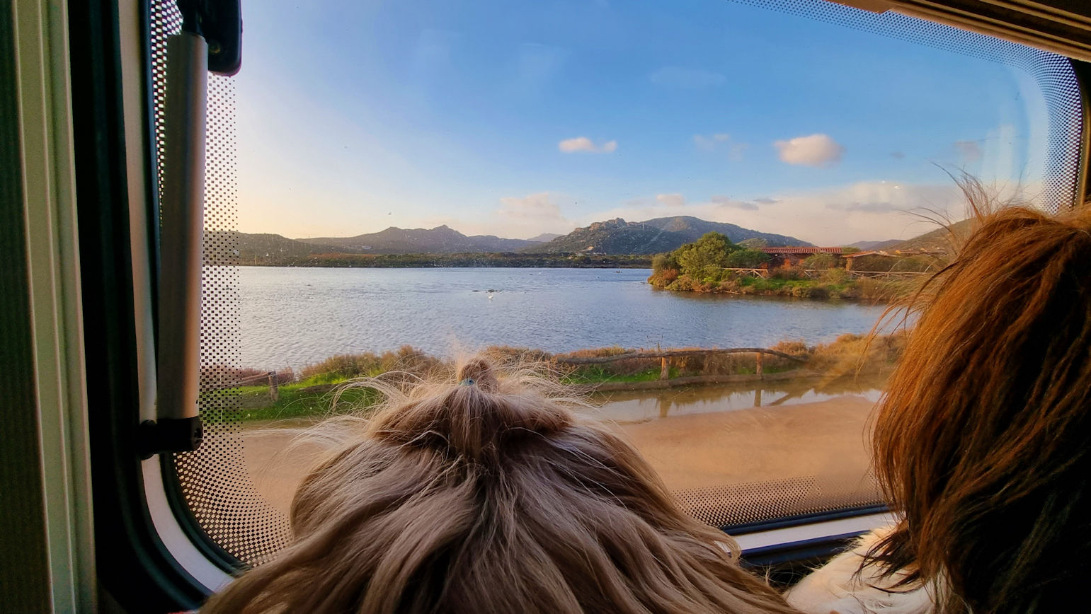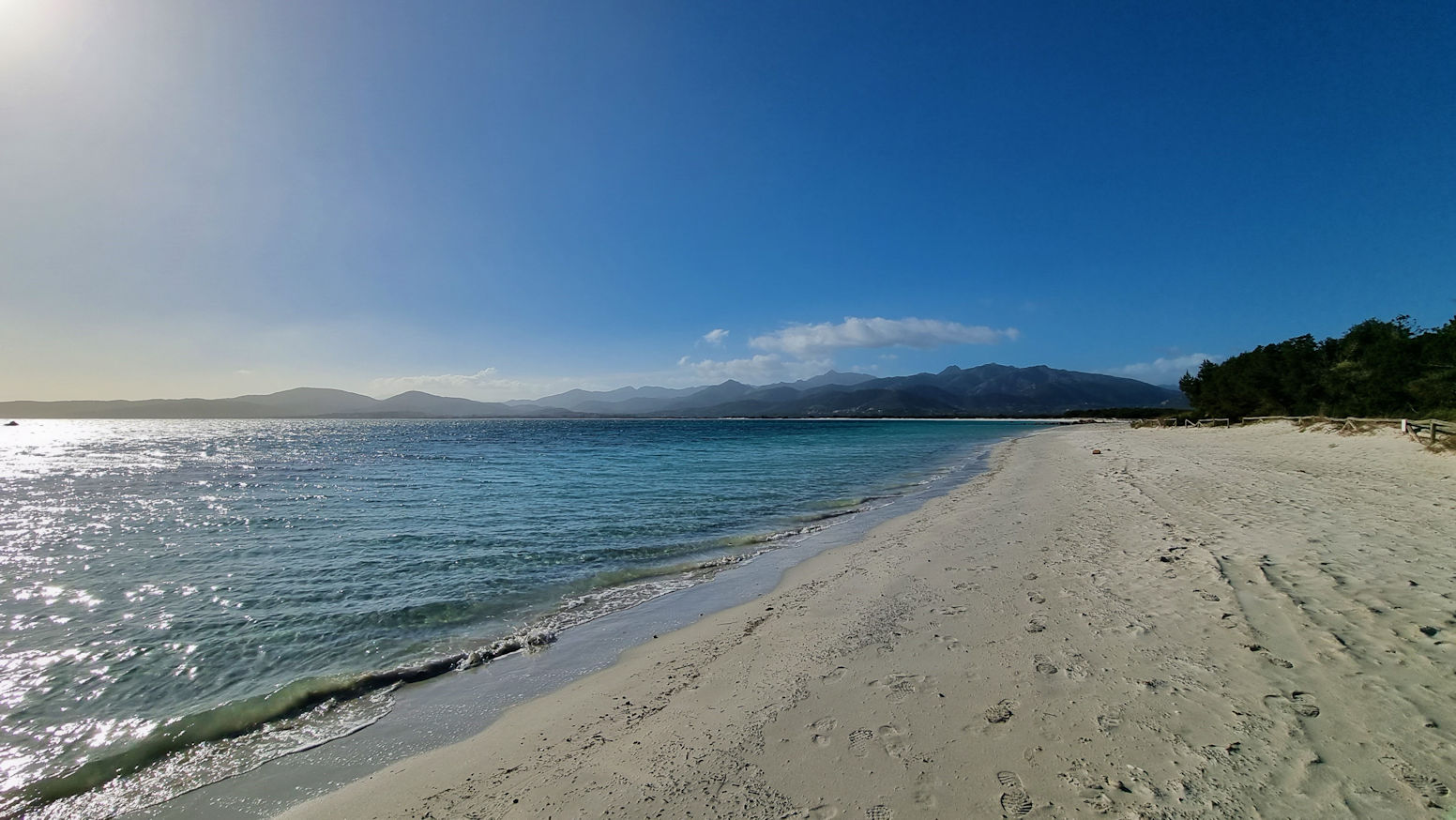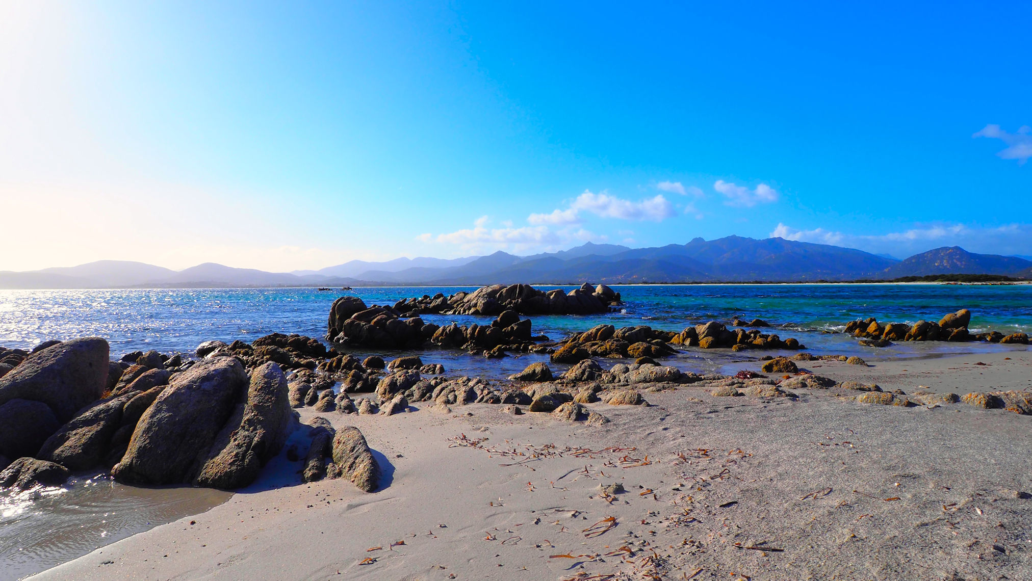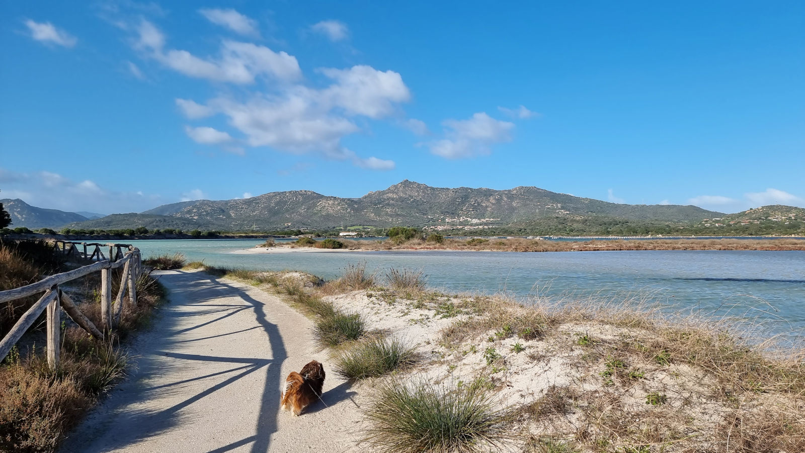 Nächstes Ziel soll sein: der Parkplatz in Puntaldia. Von hier aus wollen wir zum Stagnozufluss am berühmten Damm von San Teodoro „La Cinta“ laufen. Es ist nur ein kurzer Spaziergang, aber die Landschaft und der Strand hier sind magisch.