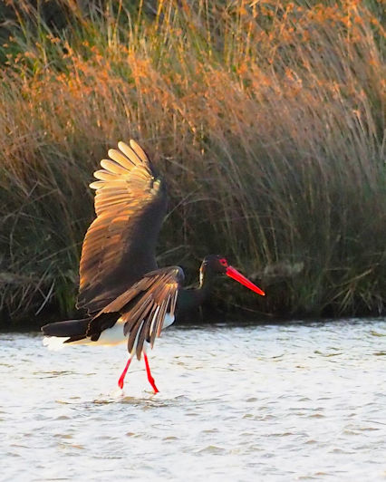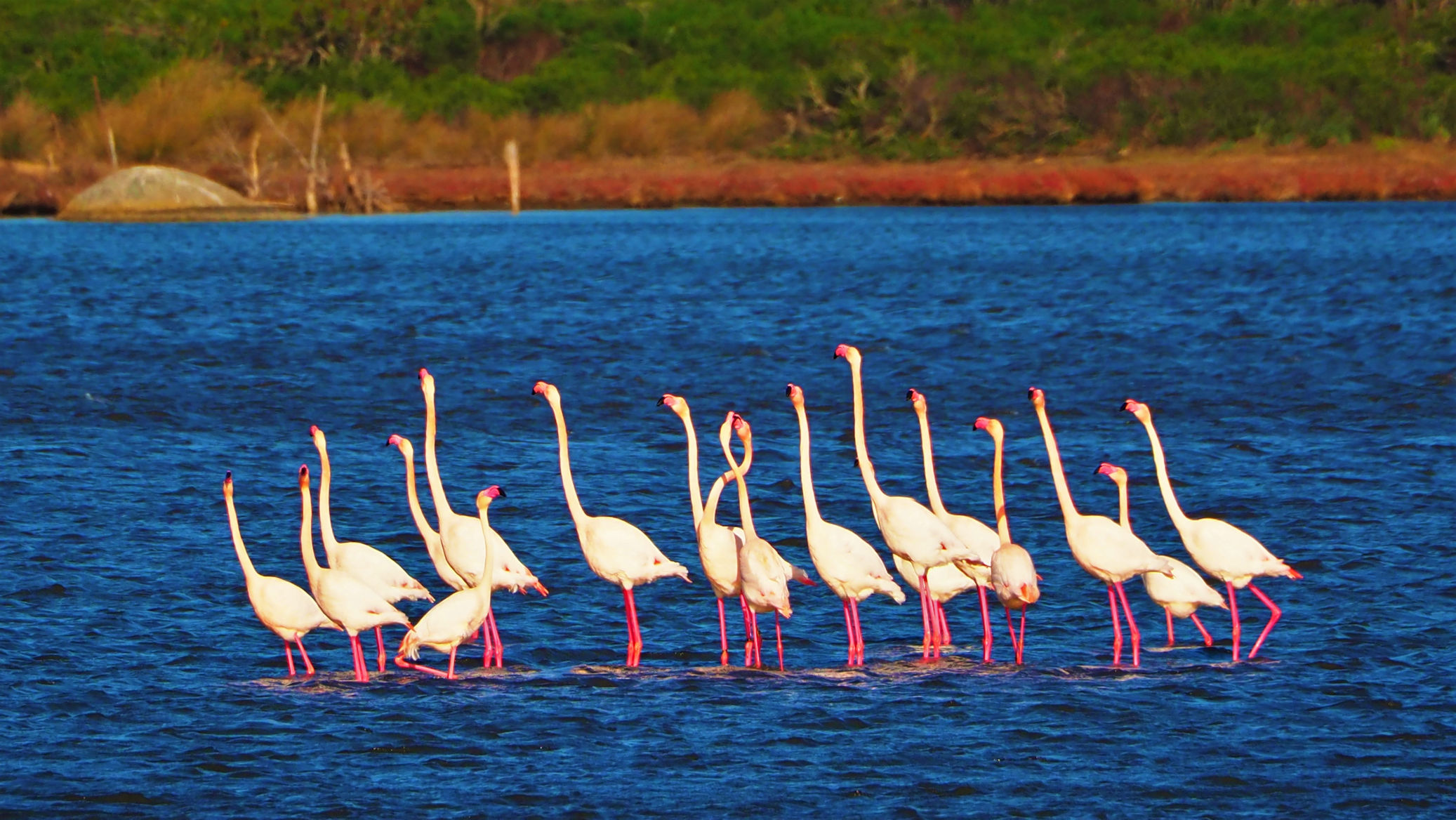 Unsere Morgengassirunde wird von einer Schwarzstorchsichtung unterbrochen und kurze Zeit später weitergeführt. Es entstehen ein paar Fotos der Flamingos und der wunderschönen Landschaft, bevor wir uns bei einem leckeren Bialetti an unseren Frühstückstisch setzen.
