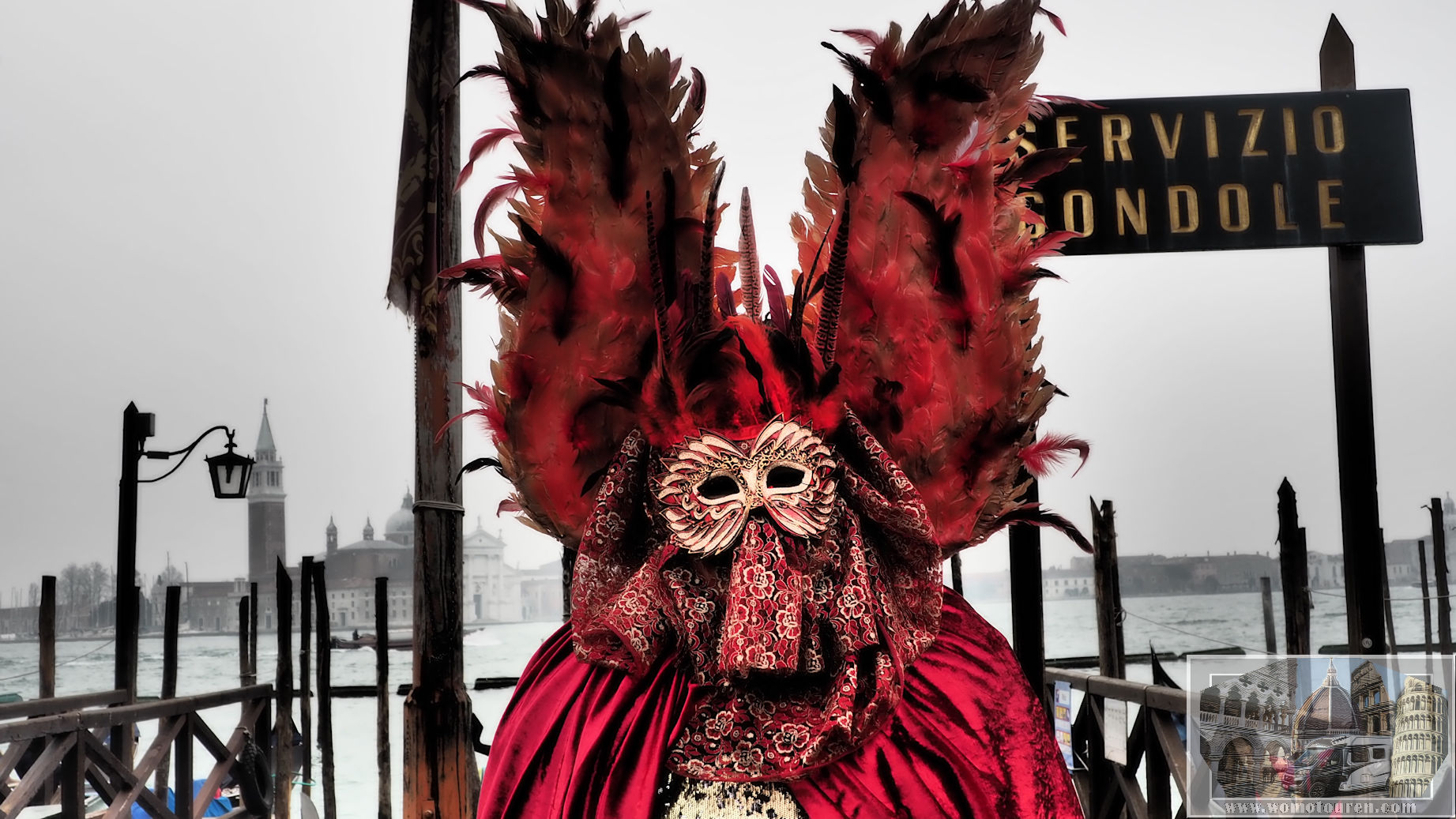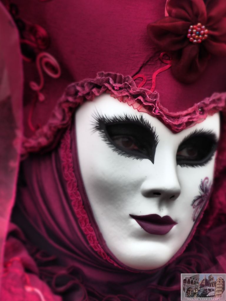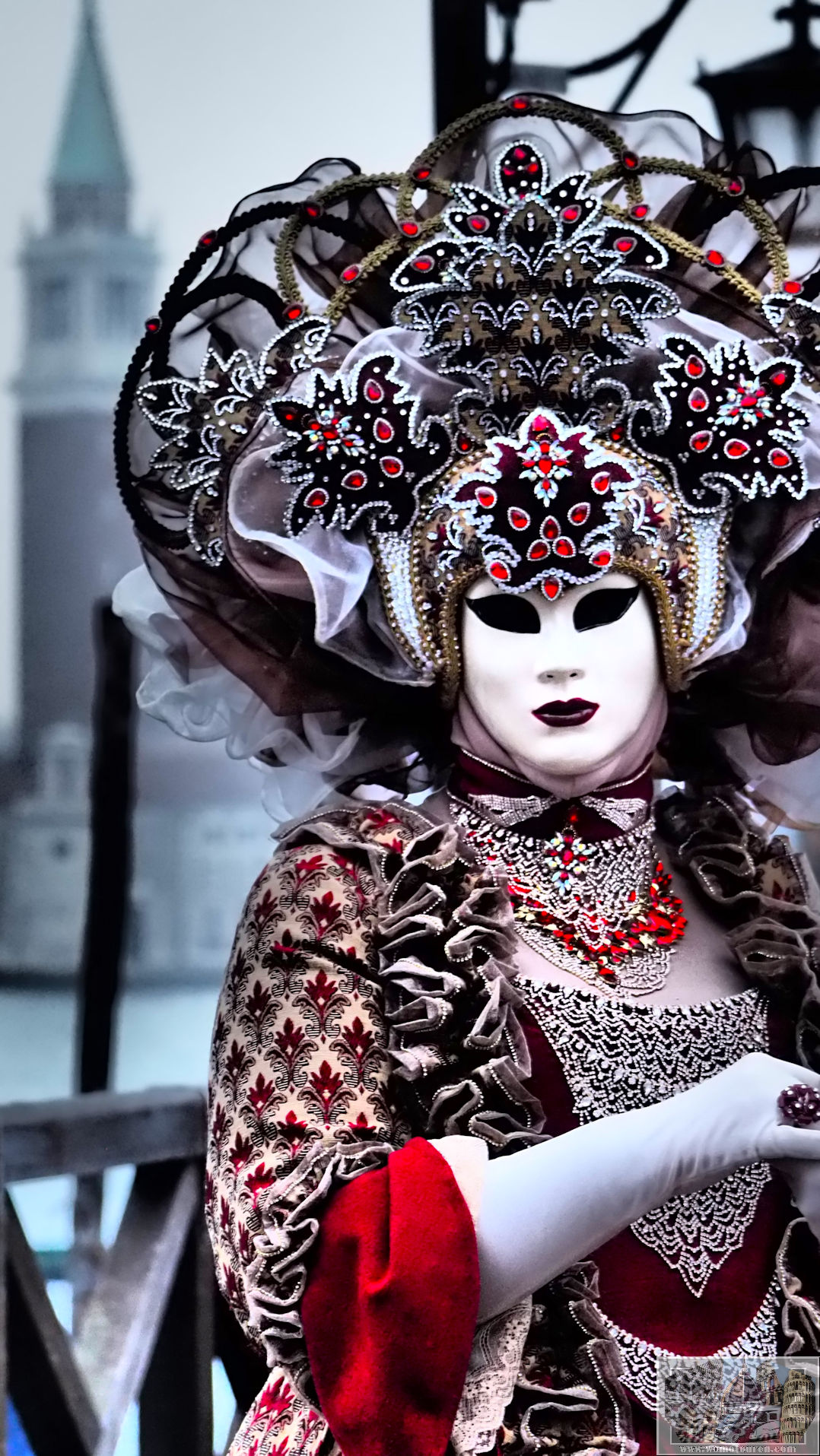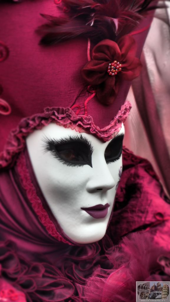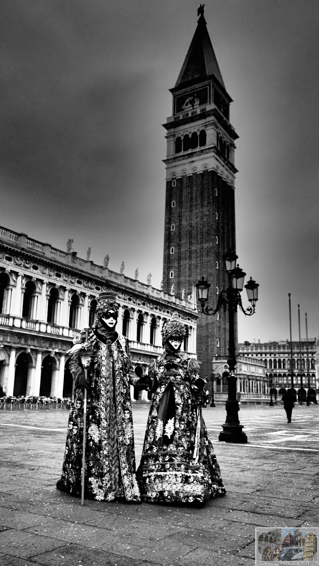 Bereits auf dem Weg dorthin passieren wir einige der tollen Masken. Dort angekomm entpuppt sich die Piazza am Löwen als der heute perfekte Ort, um Masken zu fotografieren.