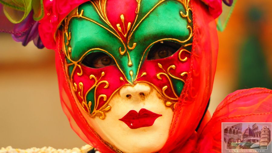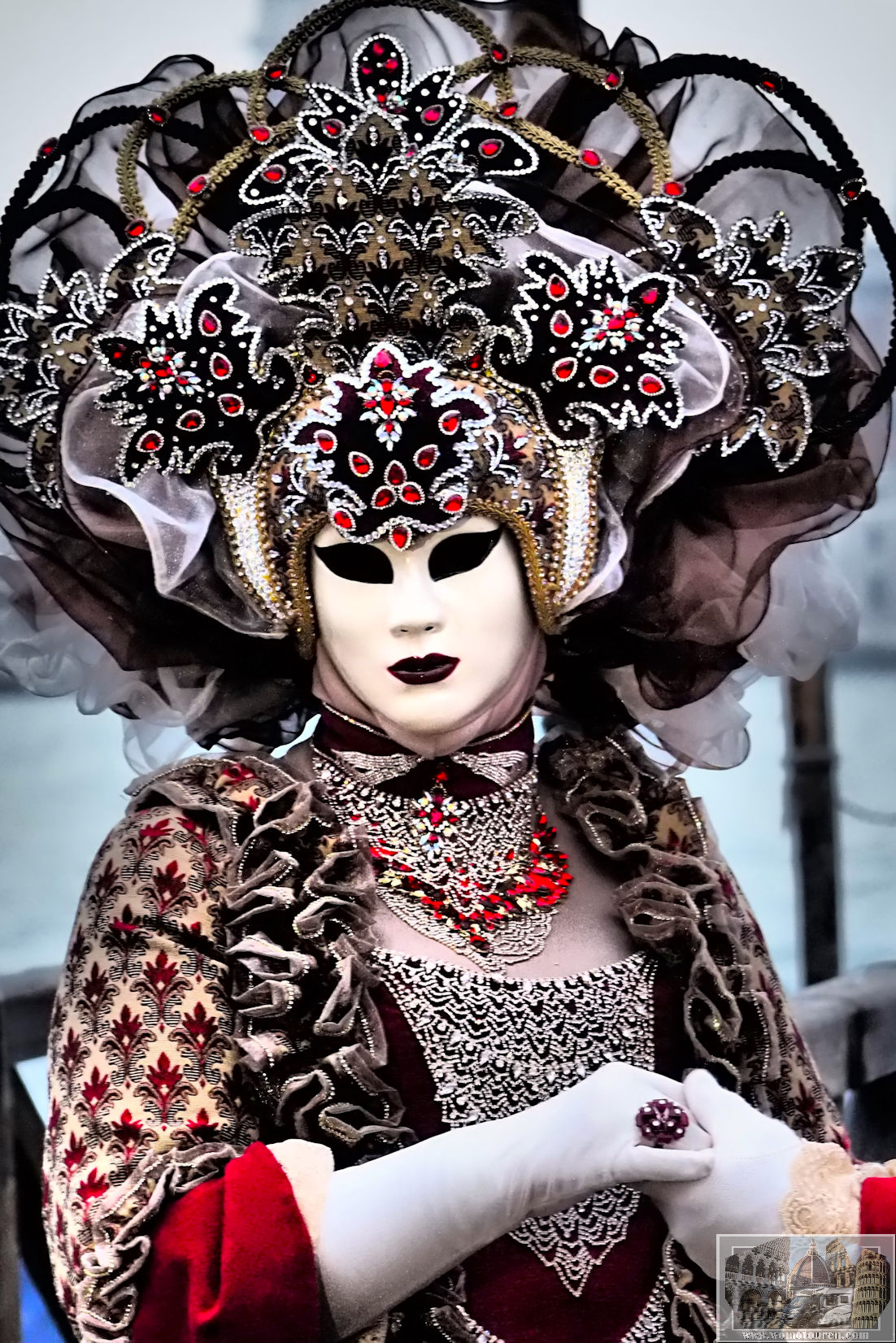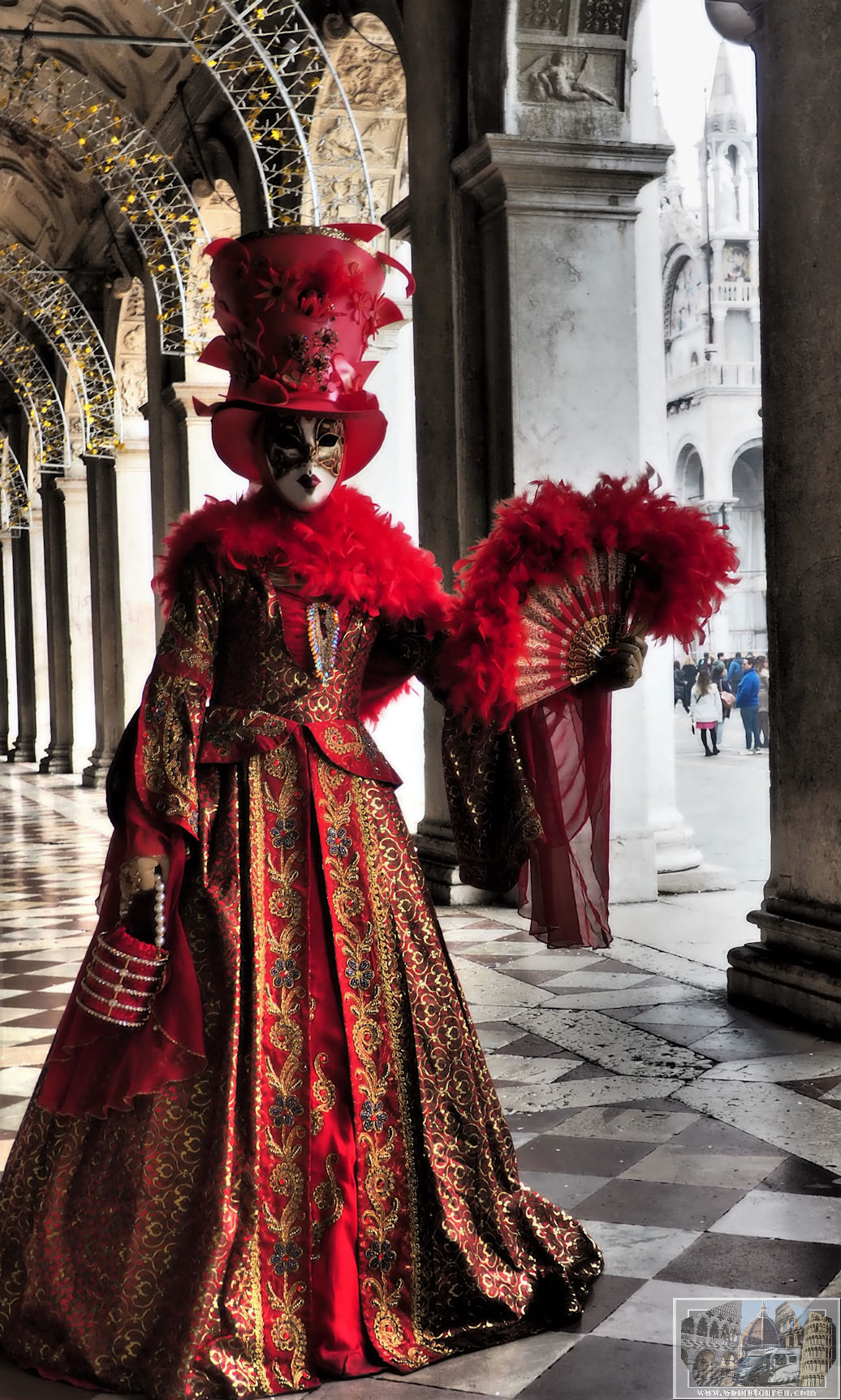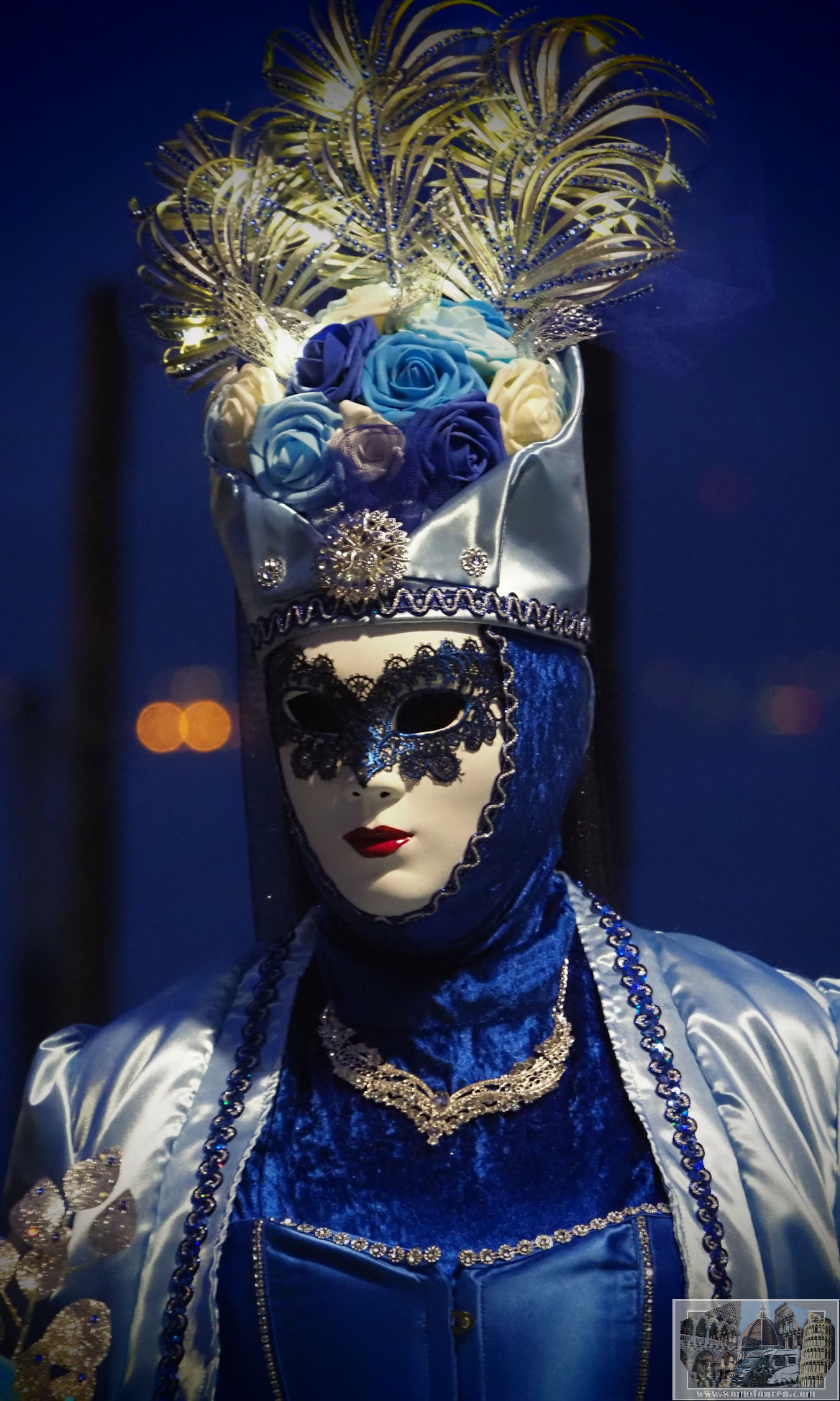 Bereits auf dem Weg dorthin passieren wir einige der tollen Masken. Dort angekomm entpuppt sich die Piazza am Löwen als der heute perfekte Ort, um Masken zu fotografieren.