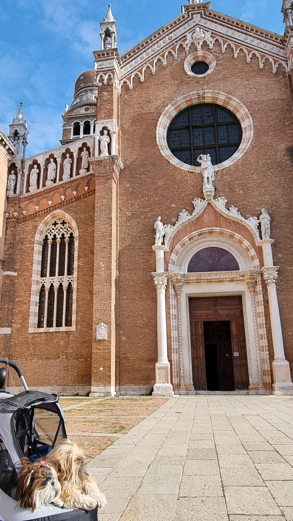 Da unser Plan war, heute Cannaregio und die Grabeskirche von Tintoretto zu besuchen, laufen wir zur Piazza SS Giovanni e Paolo, stoppen an der kleinen Bar, die wir zu Karneval schon ab und an besucht hatten und frühstücken in der Sonne. Die Sonnenstrahlen sehen zwar deutlich wärmer aus, als sie sind, aber wir genießen den Cappuccino und das Schokocroissant trotzdem.