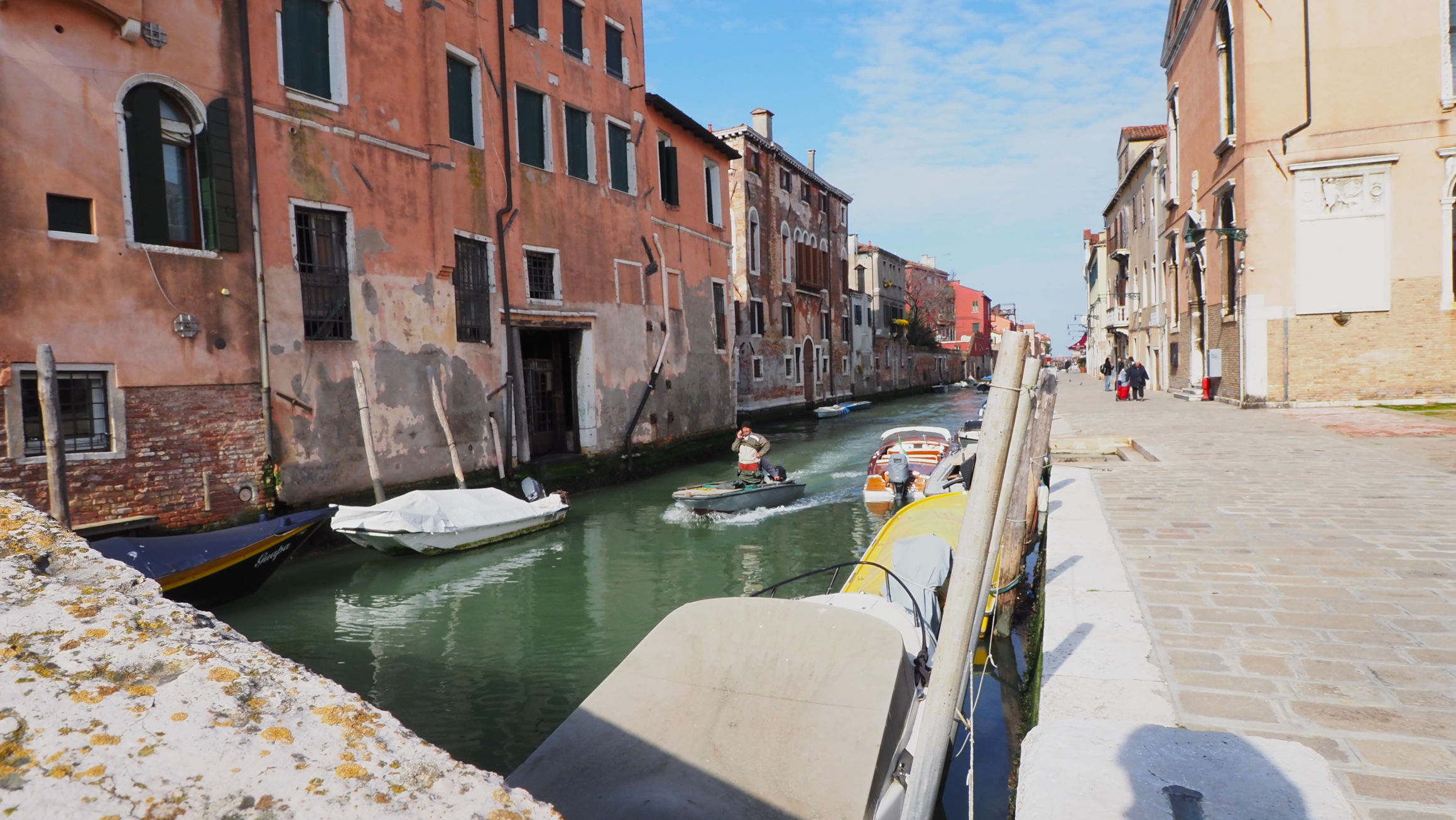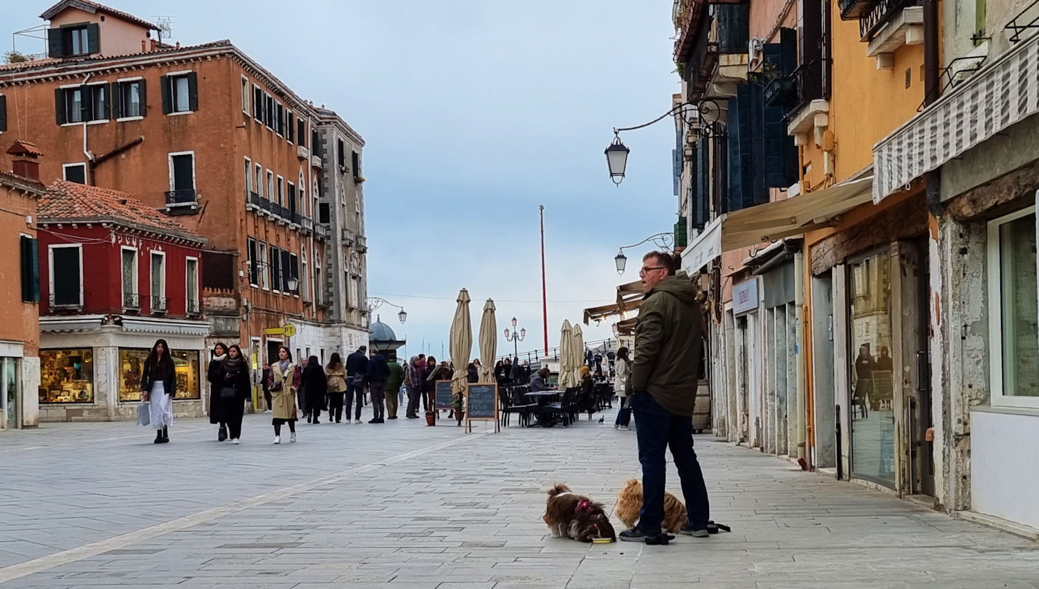 Direkt hier an der Ecke wird Ulli von einer Veniziana angesprochen und es entwickelt sich ein sehr nettes Gespräch. Tenor ist, dass die Veneziani gerne Gastgeber für Touristen sind, es jedoch immer mehr Touristen gibt, die keine Benehmen haben. Müll wird überall da entsorgt, wo er nicht hingehört, Häuser werden vollgeschmiert und Türen werden mit Inizialen ver9kratzt. Da fragt man sich doch wirklich, was denken sich solche Menschen dabei, Eigentum und Wohnraum anderer zu zerstören? Auch die Hundebesitzer seien hier erwähnt: Wenn man schon eine Kacktüte nutzt, dann kann man sie doch auch in einen der Mülleimer werfen und nicht auf Fensterbänken, Brückengeländern oder Mauern drappieren, oder? Okay, es dauert manchmal etwas länger, bis ein Abfalleimer zu finden ist. Aber gibt einem das das Recht, diese Tüten willkürlich in der Stadt zu verteilen. Auch wir haben heute ein ähnliches Problem…aber mehr dazu später…