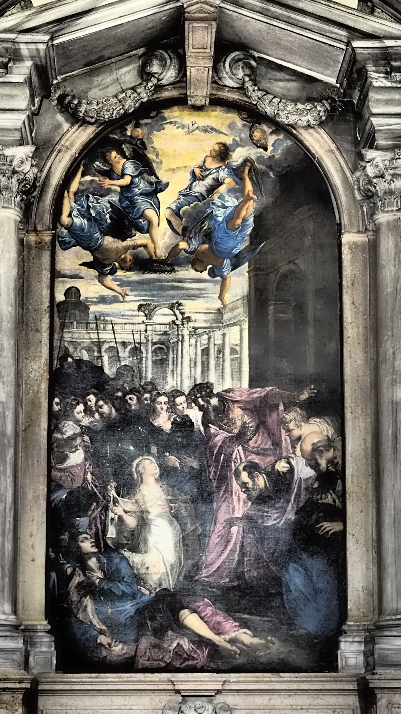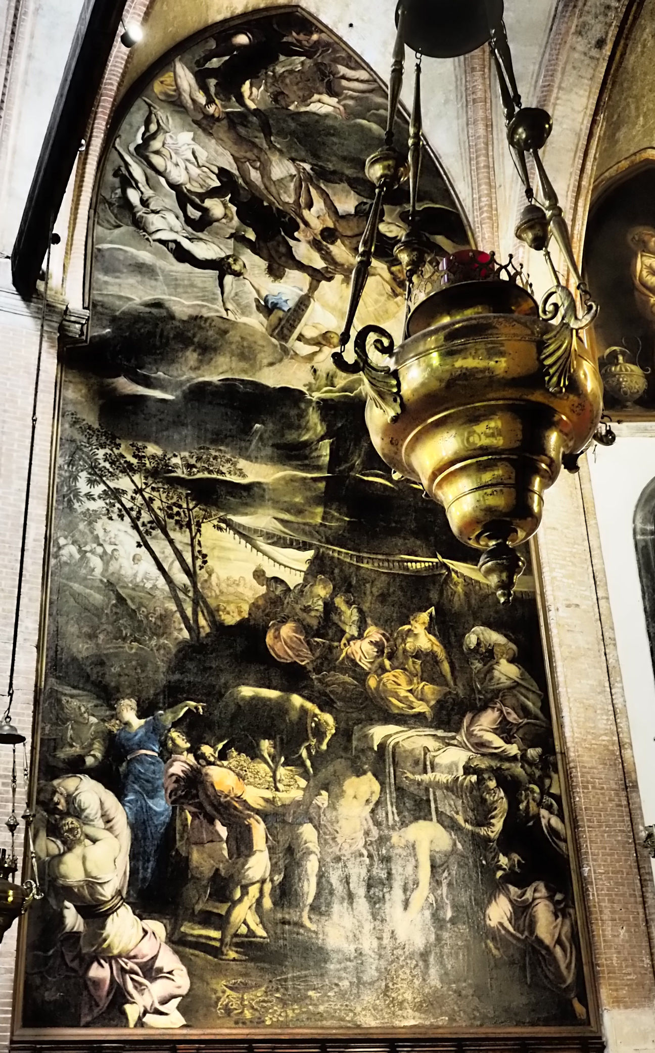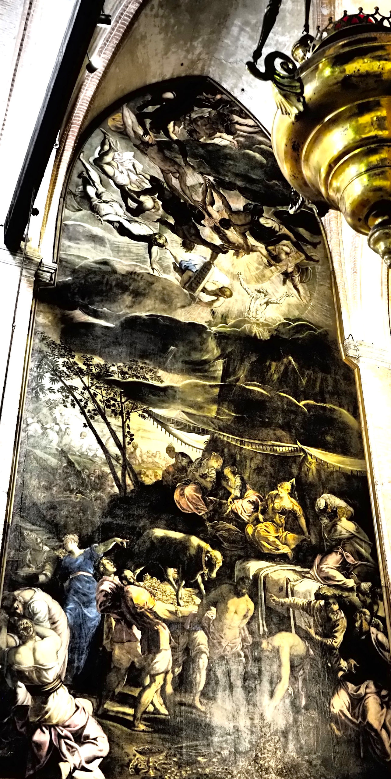 Von hier aus ist es nur noch einen Steinwurf bis zur Grabeskirche Tintorettos, die jetzt um Punkt 10 Uhr gerade öffnet. Die 3 Euro Eintritt sind es wert, denn die Kirche bietet neben dem Künstlergrab auch einige wunderschöne Gemälde des wohl berühmtesten Malers Venedigs.