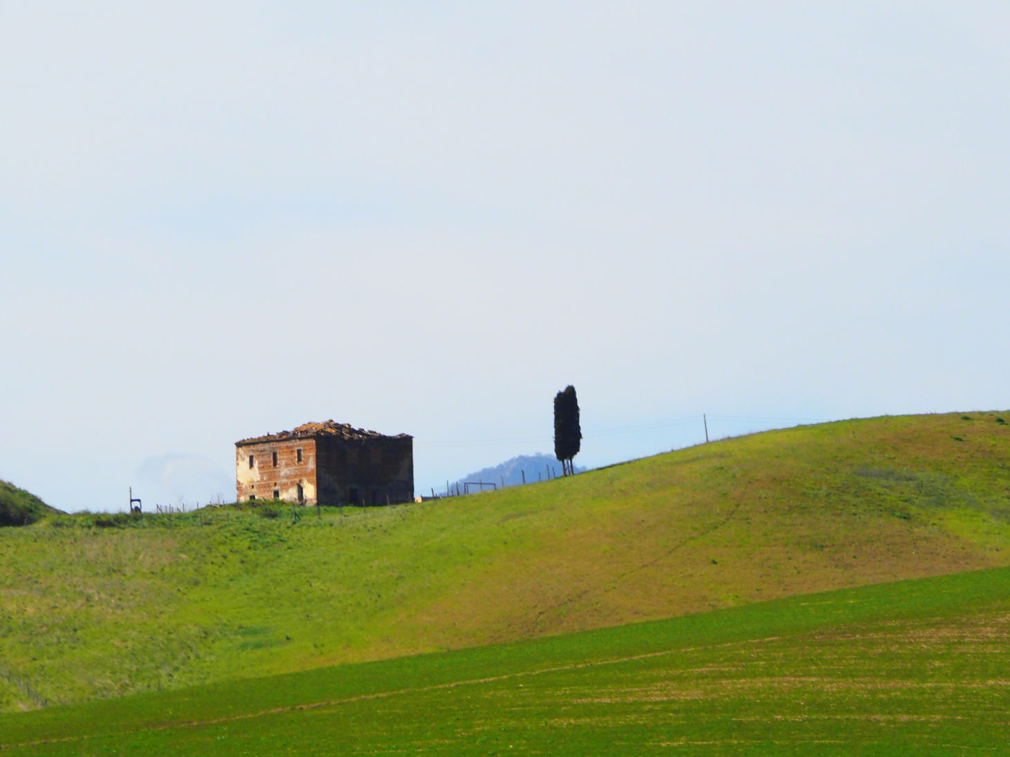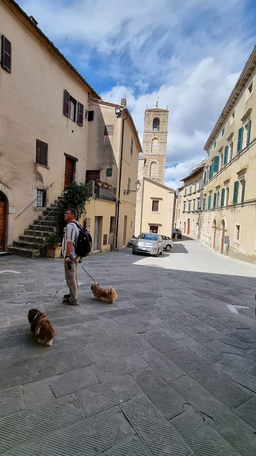 Es folgen einige, kurze Fotostops in dieser wundervollen Landschaft, wir „umkreisen“ die Fortezza von Radicofani, die Burg Ghino de Taccos, dem Robin Hood des Val d’Orcia, und genießen einen der Aussichtspunkte bei San Casciano dei Bagni. Hier kreist ein recht großer Raubvogel über uns, als Ralf die Drohne über diese wundervolle Landschaft fliegen lässt.