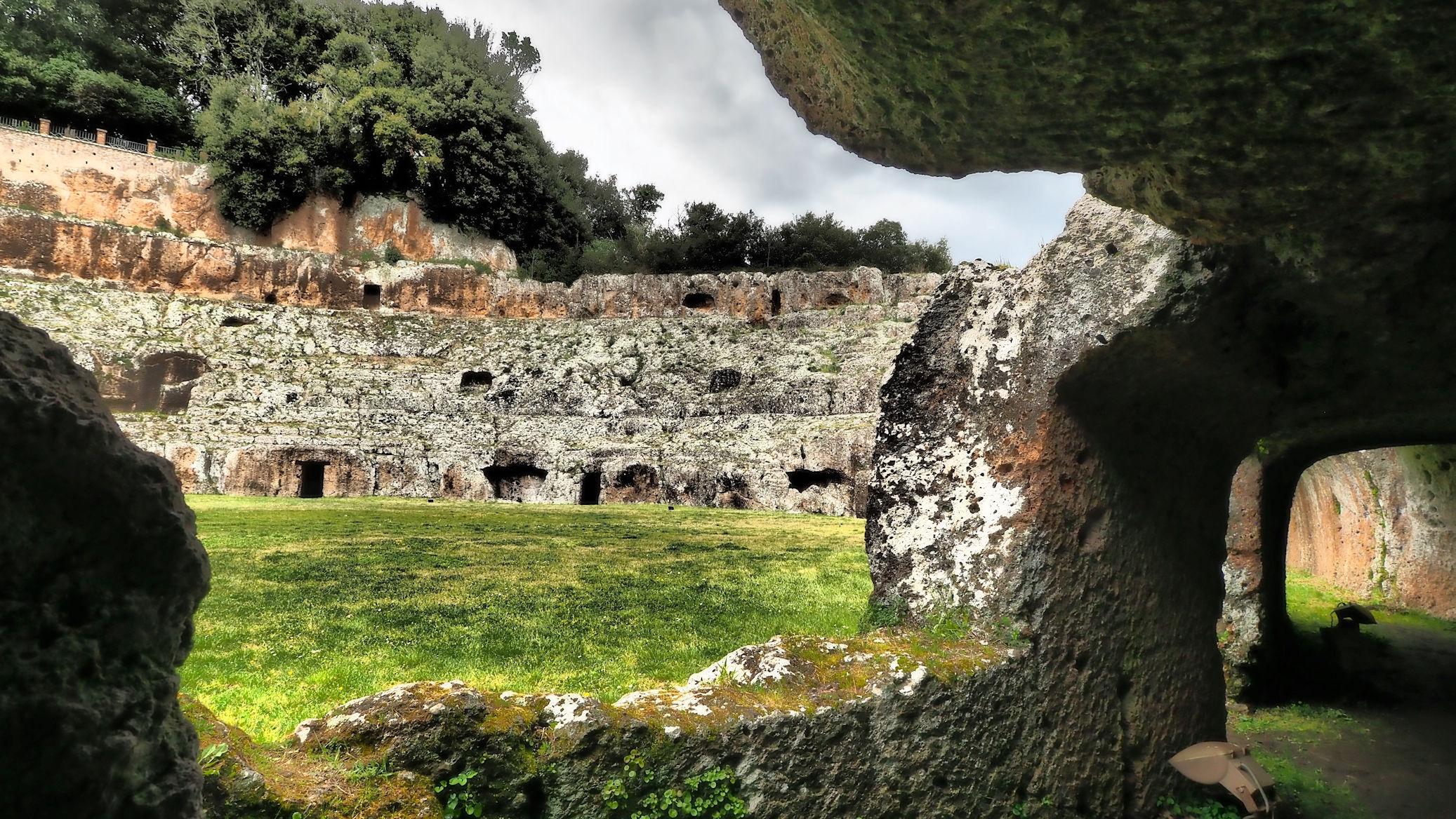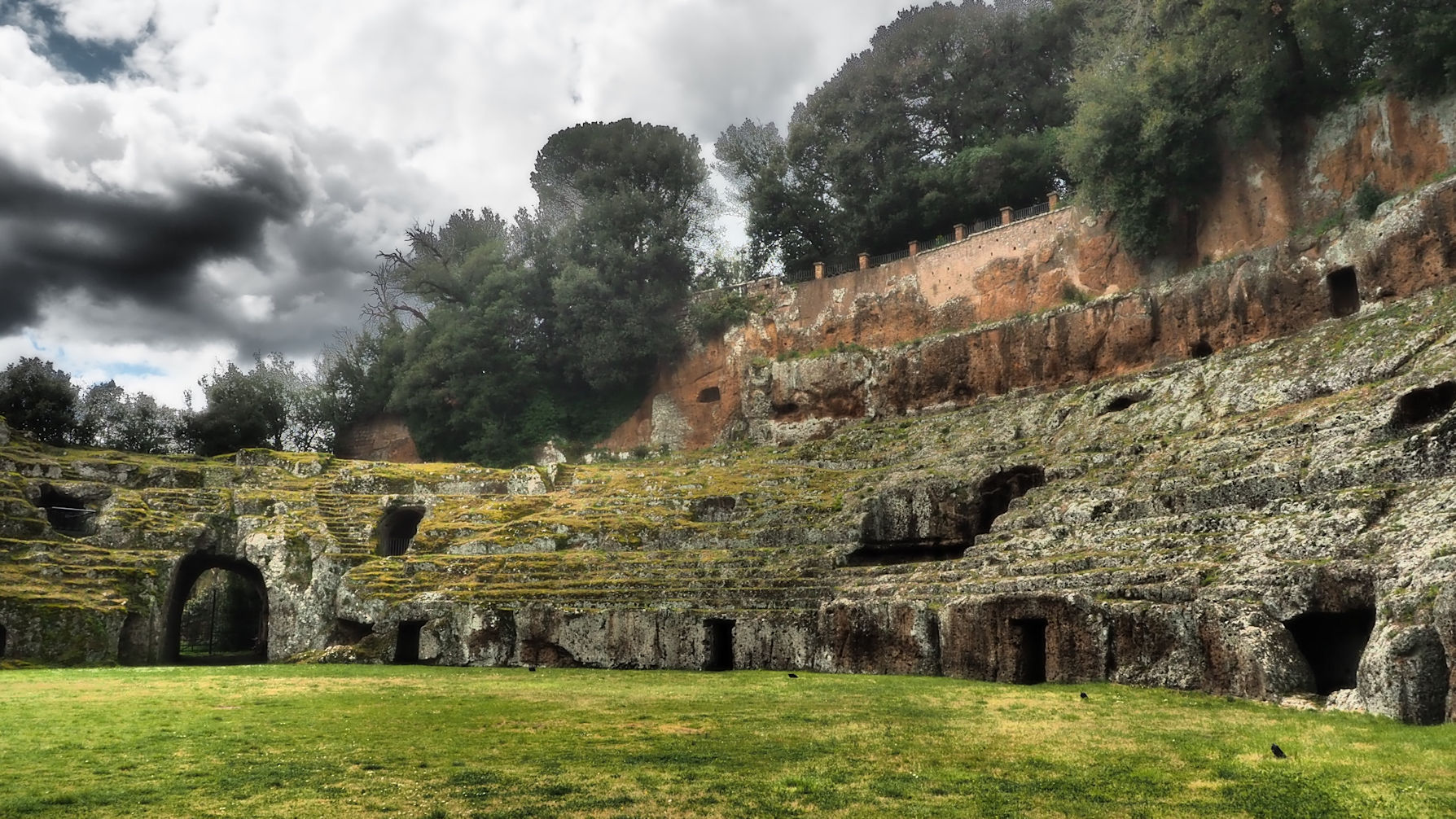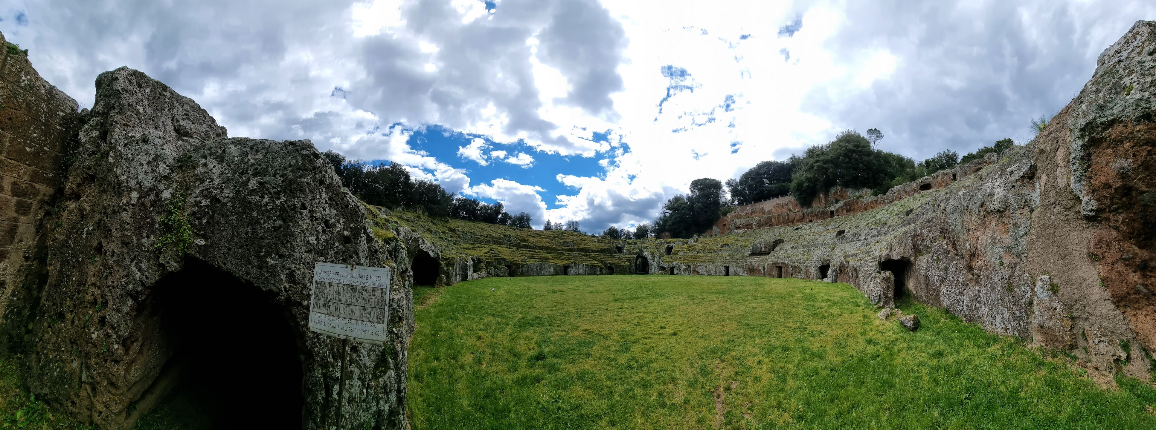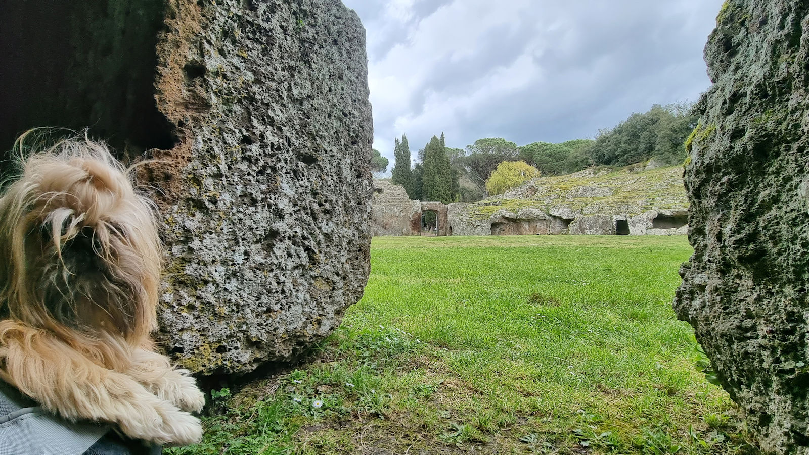 Es scheint mal wieder die Sonne und diese Phase nutzen wir, um in Richtung des Amphietheaters zu gehen. Wir sind im Moment die einzigen Besucher, erstehen unsere Biglietti und los geht es in das magische 48 mal 40 Meter messende Rund, dass erst in den Jahren 1835-1838 wieder freigelegt wurde. Es ist komplett in den Tuffstein gegraben, was viele Forscher vermuten lässt, das es bereits den Etruskern als Austragungsort diente.