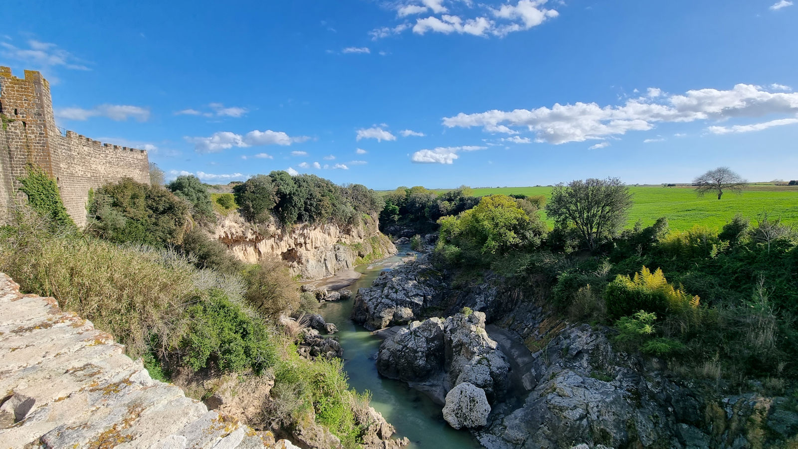 Auf dem Weg zurück kommt uns die Idee, der zu den „Borghi più belli d’Italia“ – schönste Orte Italiens- gehörenden Prt Sutri einen Besuch abzustatten. Aber der Wetterbericht ist dagegen. Kaum zurück am Womo beginnt es erneut zu regnen. Also geht es wieder zurück in Richtung Küste. Via Vetralla und Tuscania fahren wir durch strömenden Regen und auch ein paar Frischlingen ausweichend zum Castello de Vulci.