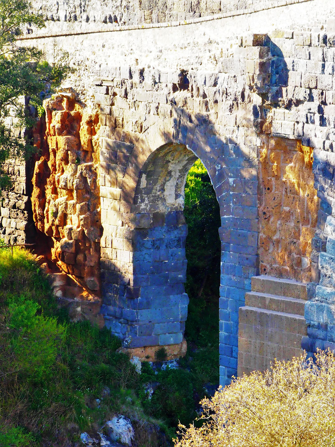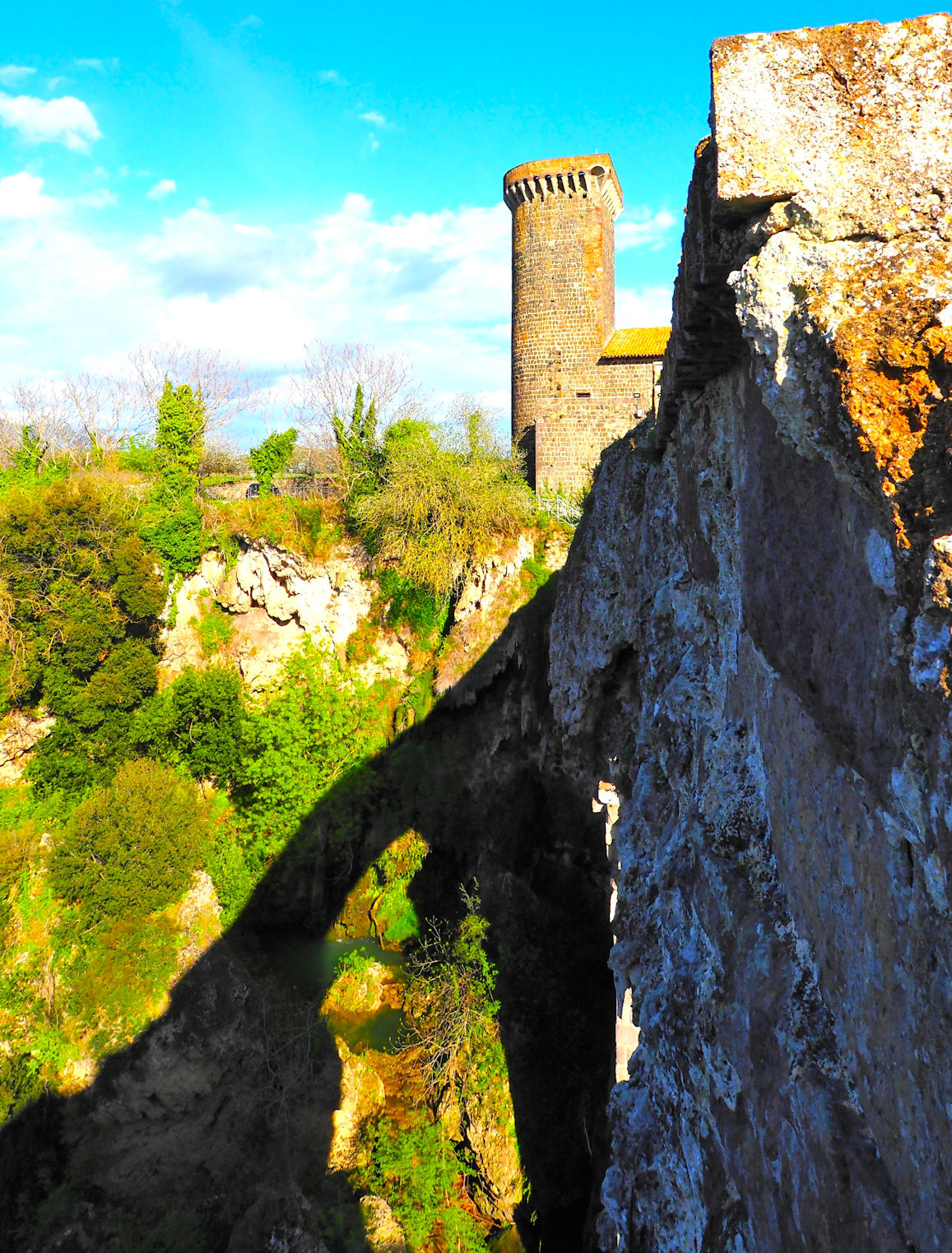 Und hier scheint sie, die Sonne. Der Weitblick bis zum Monte Amiata ist herrlich und die Schlucht am Castello bietet ein tolle Kulisse. Klar bei dieser wundervollen, angeblich aus der Etruskerzeit stammenden Brücke. Und genau hier unterhalten wir uns längere Zeit mit einem netten Ehepaar aus Montalto di Castro, die uns voller Stolz über ihre schöne Region, Sehenswürdigkeiten und gute Restaurants in der Nähe Auskunft geben.
