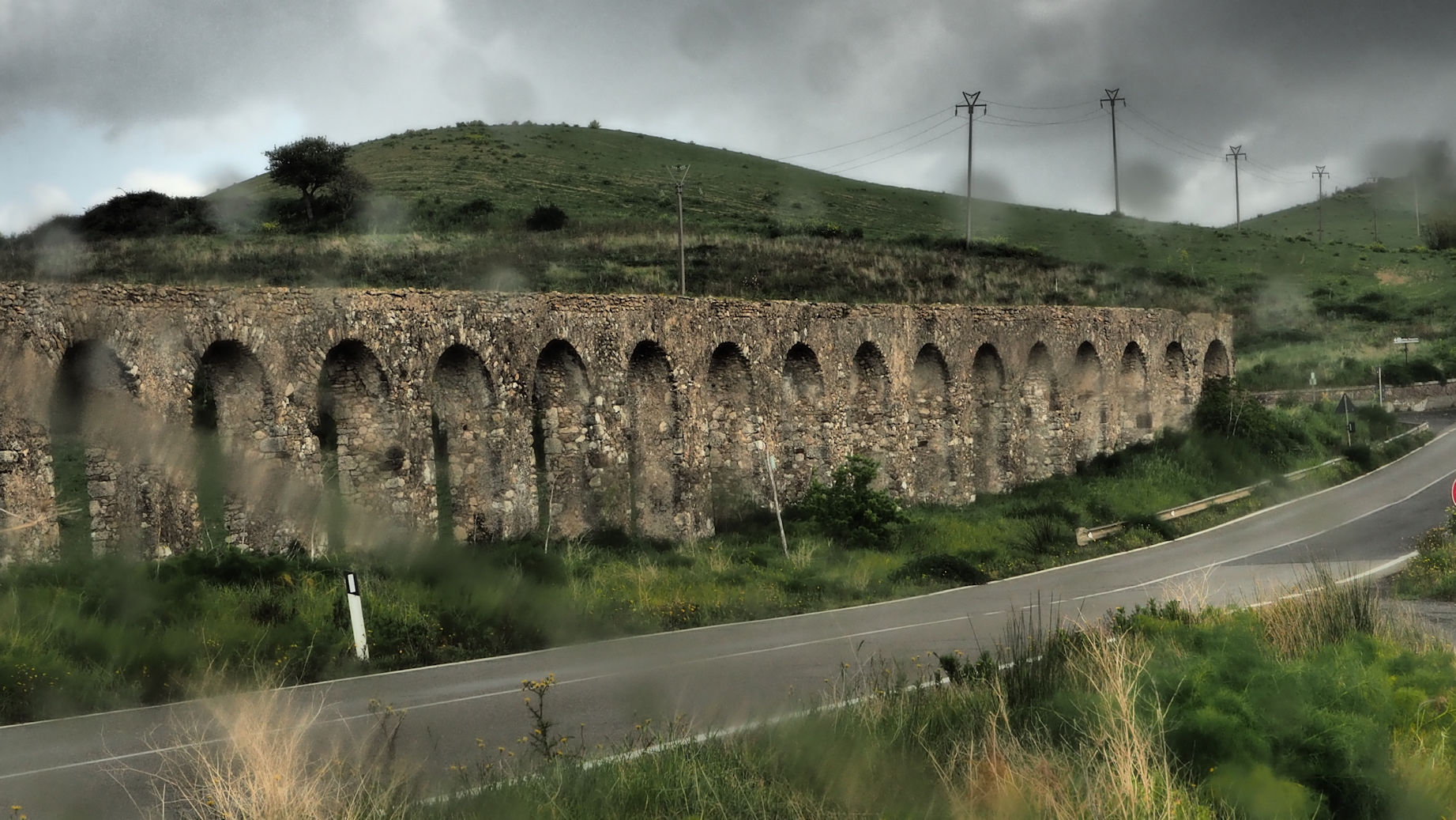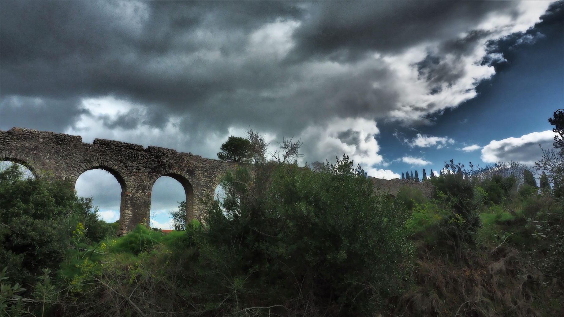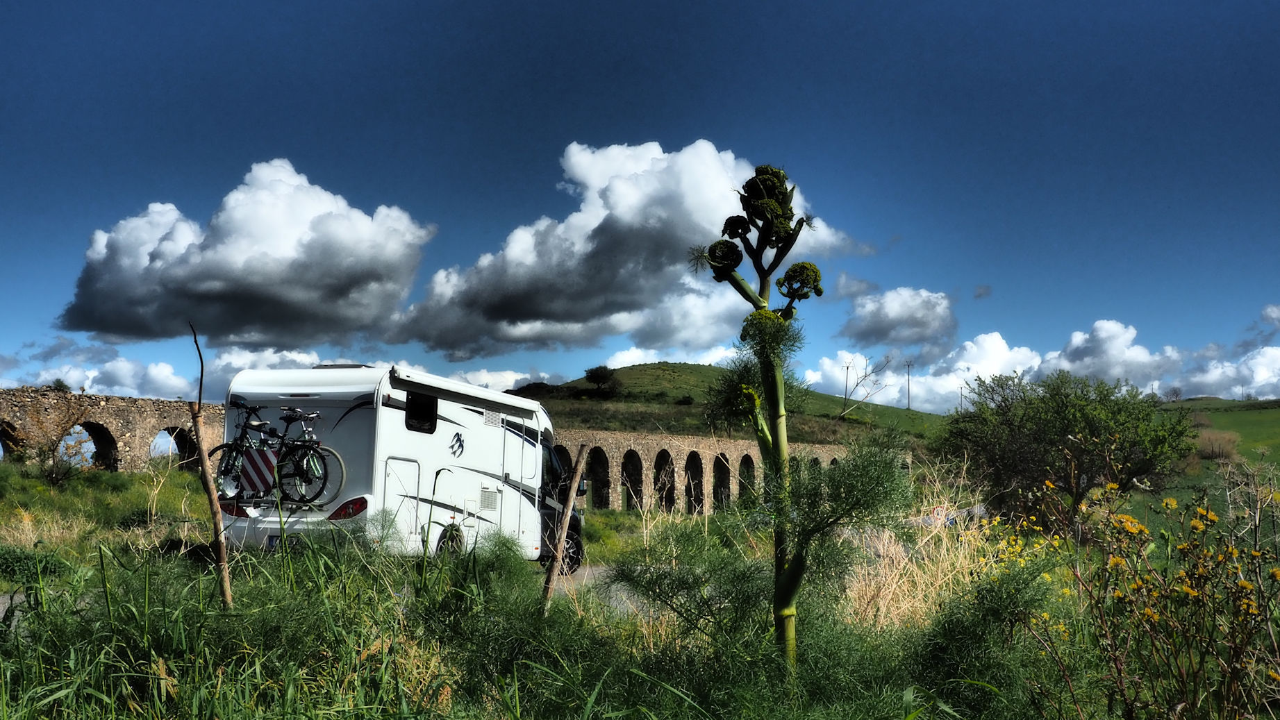 Kurz nach 10 verlassen wir unseren Platz in Tarquinia und fahren in Richtung Viterbo. Dort an der Straße befindet sich ein riesiges Aquädukt, dass wir für Euch natürlich in Szene gesetzt haben. Auch hier geht das Schauerwetter weiter, aber wir haben Glück und es ist gerade ein Schauer durchgezogen und die Sonne hat nun ihre Zeit.