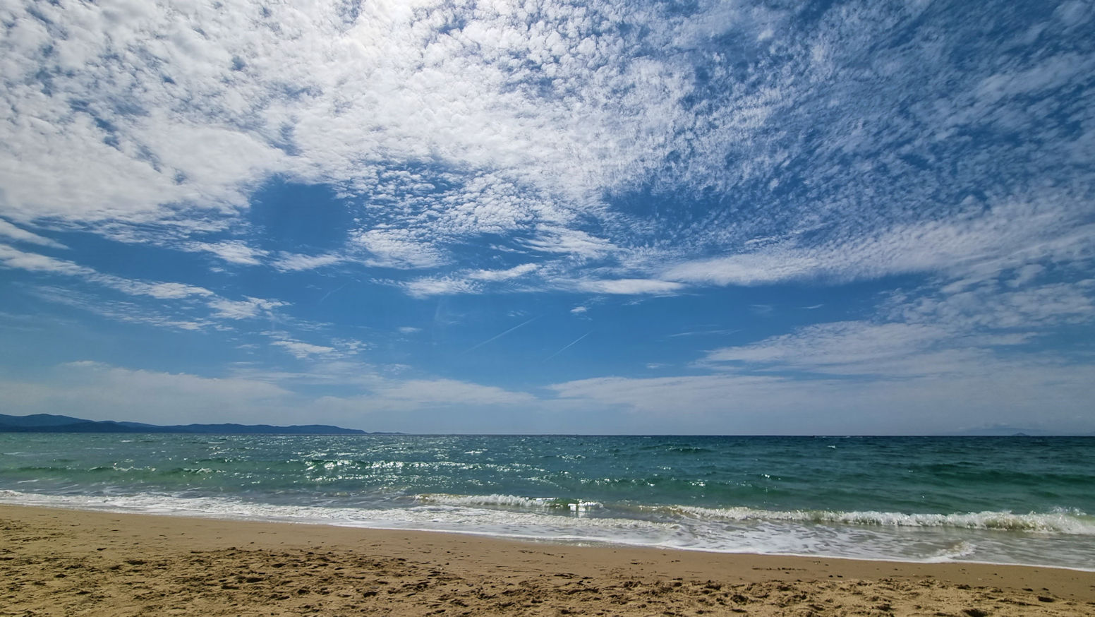 Der Sand ist fast weiß, die Aussicht auf die Insel Elba ist wundervoll und deshalb sind wir auch nicht alleine hier.