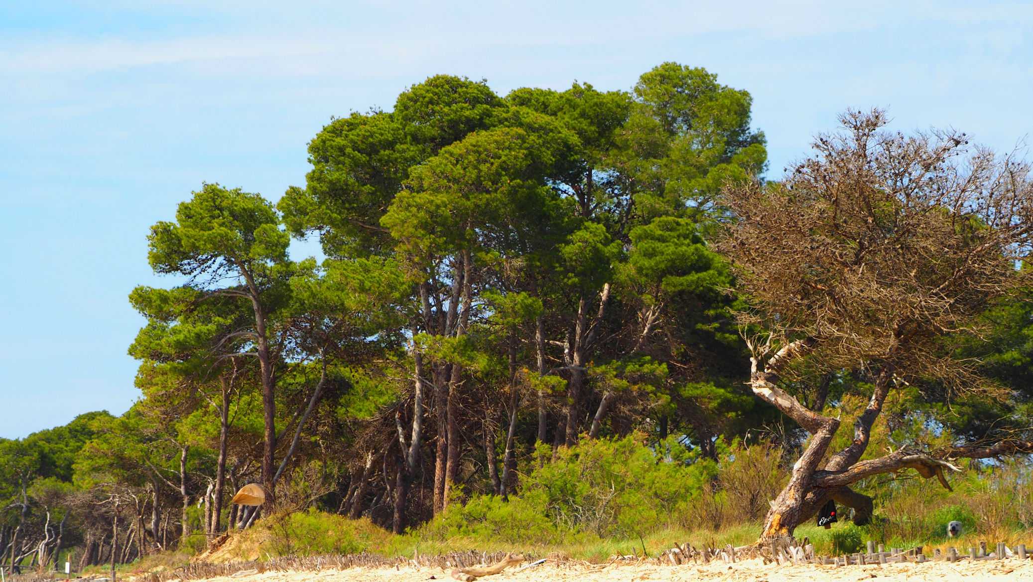 Wir fahren durch eine wunderschöne Toskanalandschaft, an Schafen und großen Pinien vorbei bis zum Hundestrand von La Sterpaia.