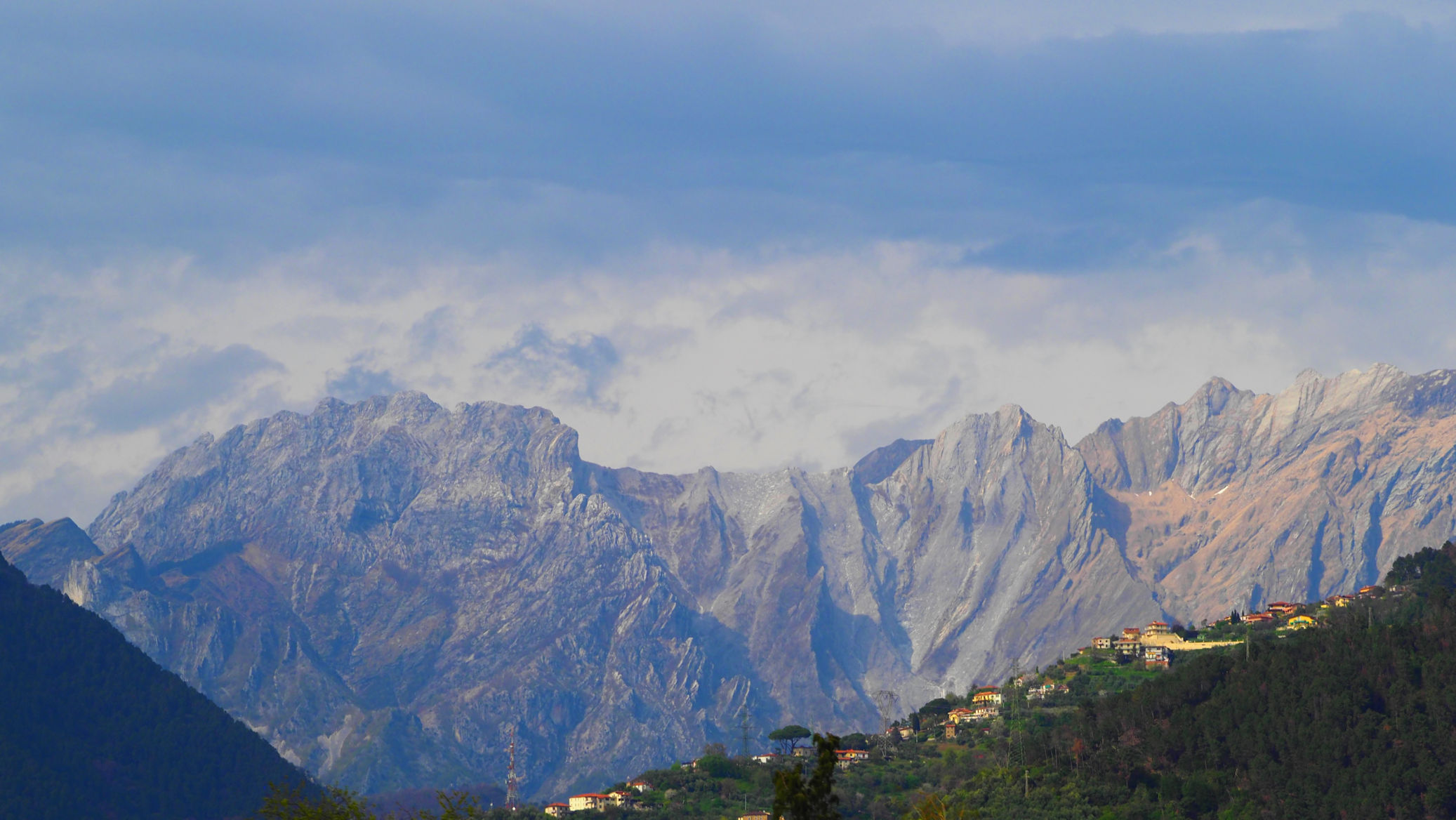 Unterwegs sehen wir die Berge bei Carrara so, wie wir sie noch nie gesehen haben. Die Fotos entstehenwährend der Fahrt. Man kann die Marmorsteinbrüche ganz deutlich erkennen und das Licht ist einfach traumhaft…