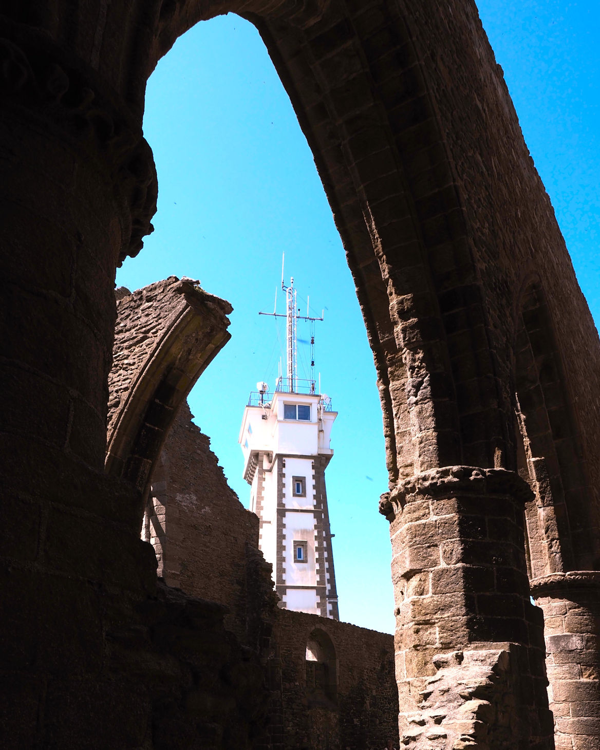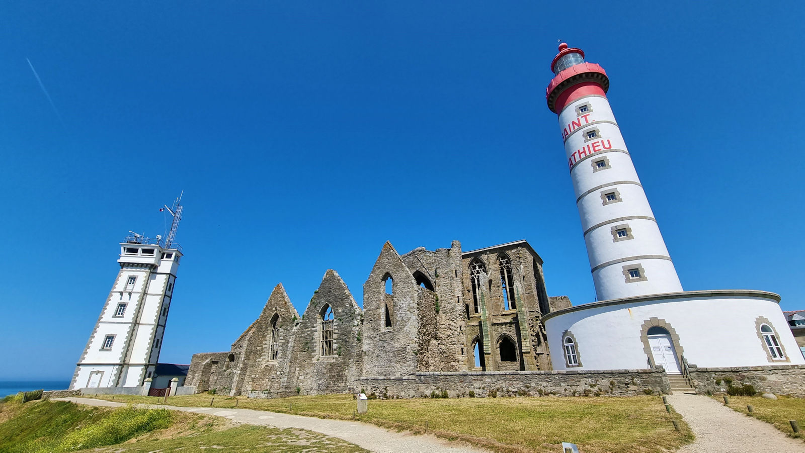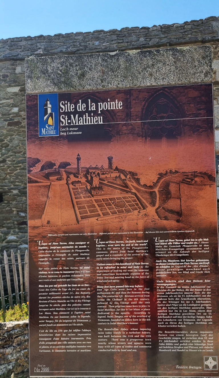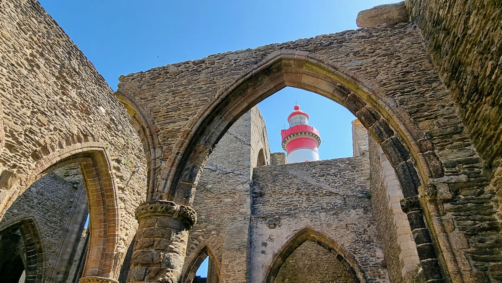 Heute soll es an Brest vorbei zum westlichsten Punkt der Côte des Abers gehen. Zum Pointe Sainte Mathieu. Wir verlassen die Crozon Halbinsel über die Pont de Térénez, an der wir einen kurzen Fotostopp für Euch einlegen, umfahren Brest recht weiträumig, landen bei dieser Aktion aber leider hinter einem Traktor, den wir lange Zeit nicht überholen können und erreichen unser erstes Ziel gegen halb 12: den Leuchtturm an der verfallenen Abtei: die Pointe Sainte Mathieu.