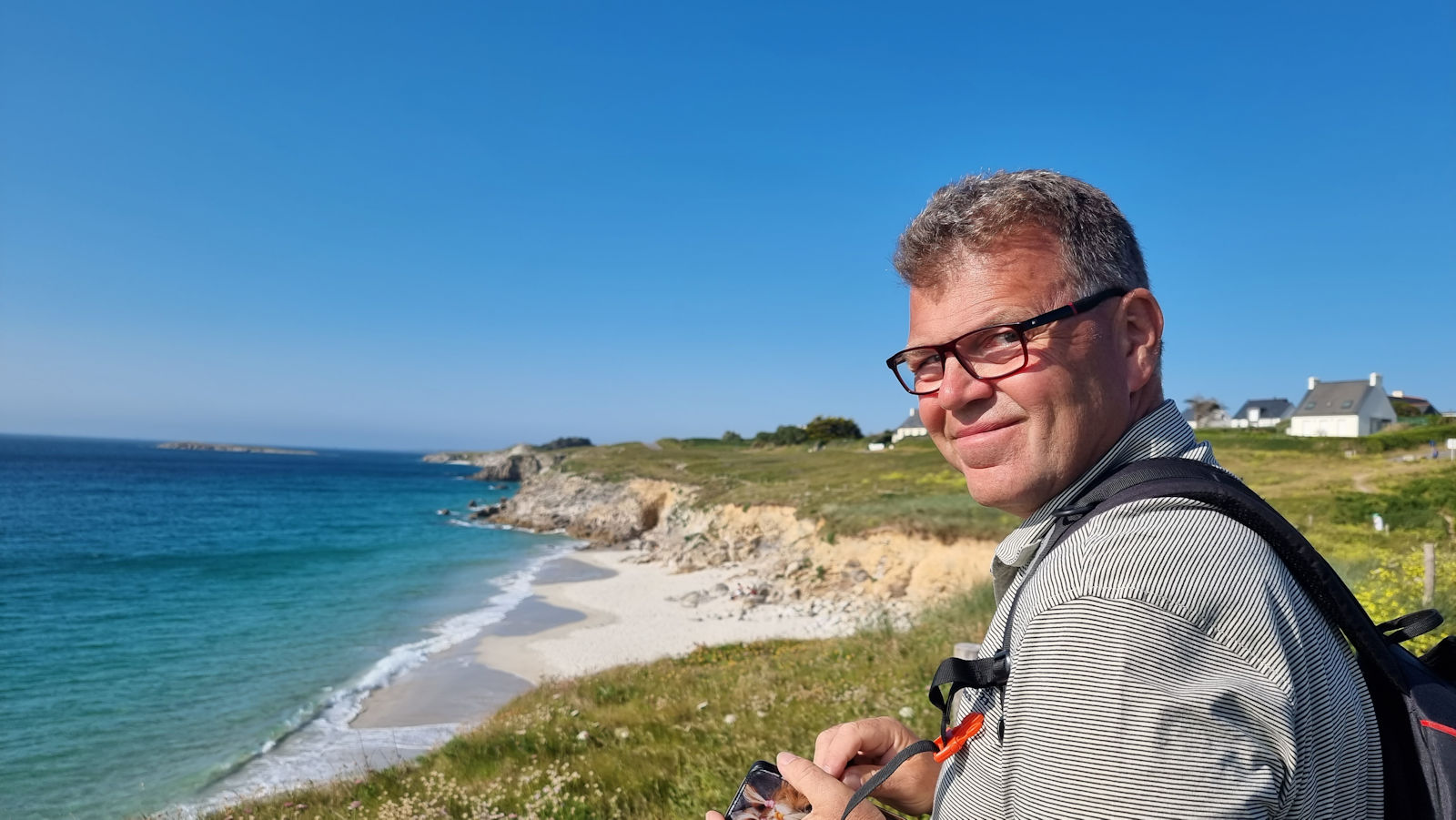 Die Mittagspause nutzen wir, um einen Stellplatz für die Nacht zu suchen. Schnell sind wir fündig und unsere Fahrt führt uns für etwa eine halbe Stunde nach Plouarzel. Ein schönes Areal oberhalb der Küste. Schnell haben wir ein Plätzchen zwischen zwei französischen Campern gefunden und schon beim Einparken spricht einer der beiden Ulli in Englisch mit merkwürdigem Akzent an. Der Akzent ist Scottish und die beiden inklusive deren Hund Ed sind total nett.