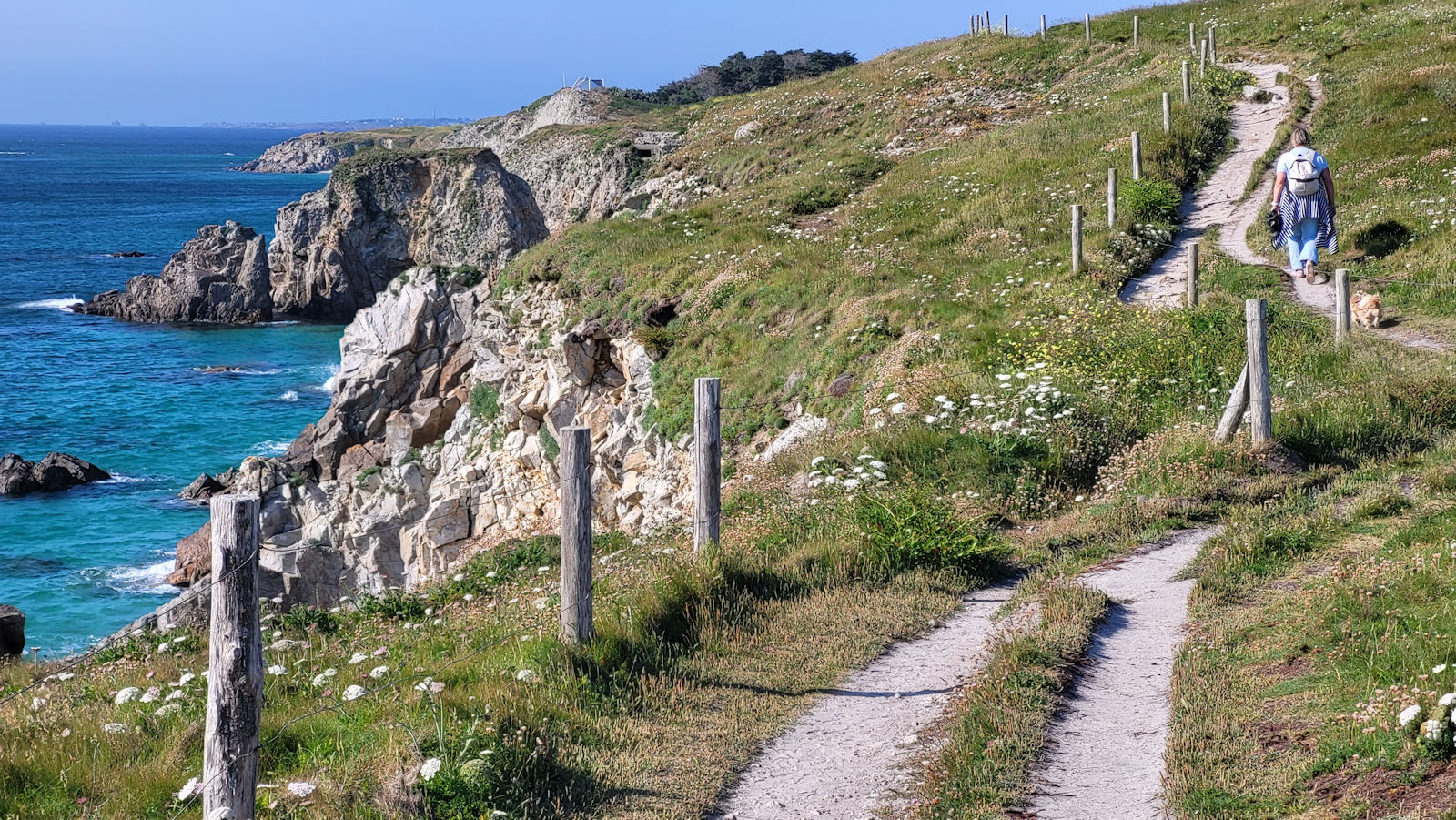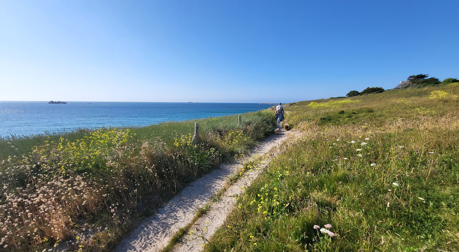 Nicht nur unsere Fellnasen genießen den Abendspaziergang an dieser wundervollen Küste. Hier verläuft, wie an in der ganzen Bretagne der alte Zöllnerpfad. Ein Wandergebiet der besonderen Art.
