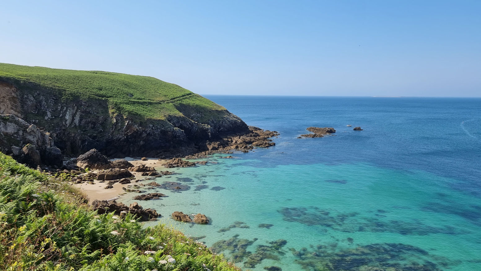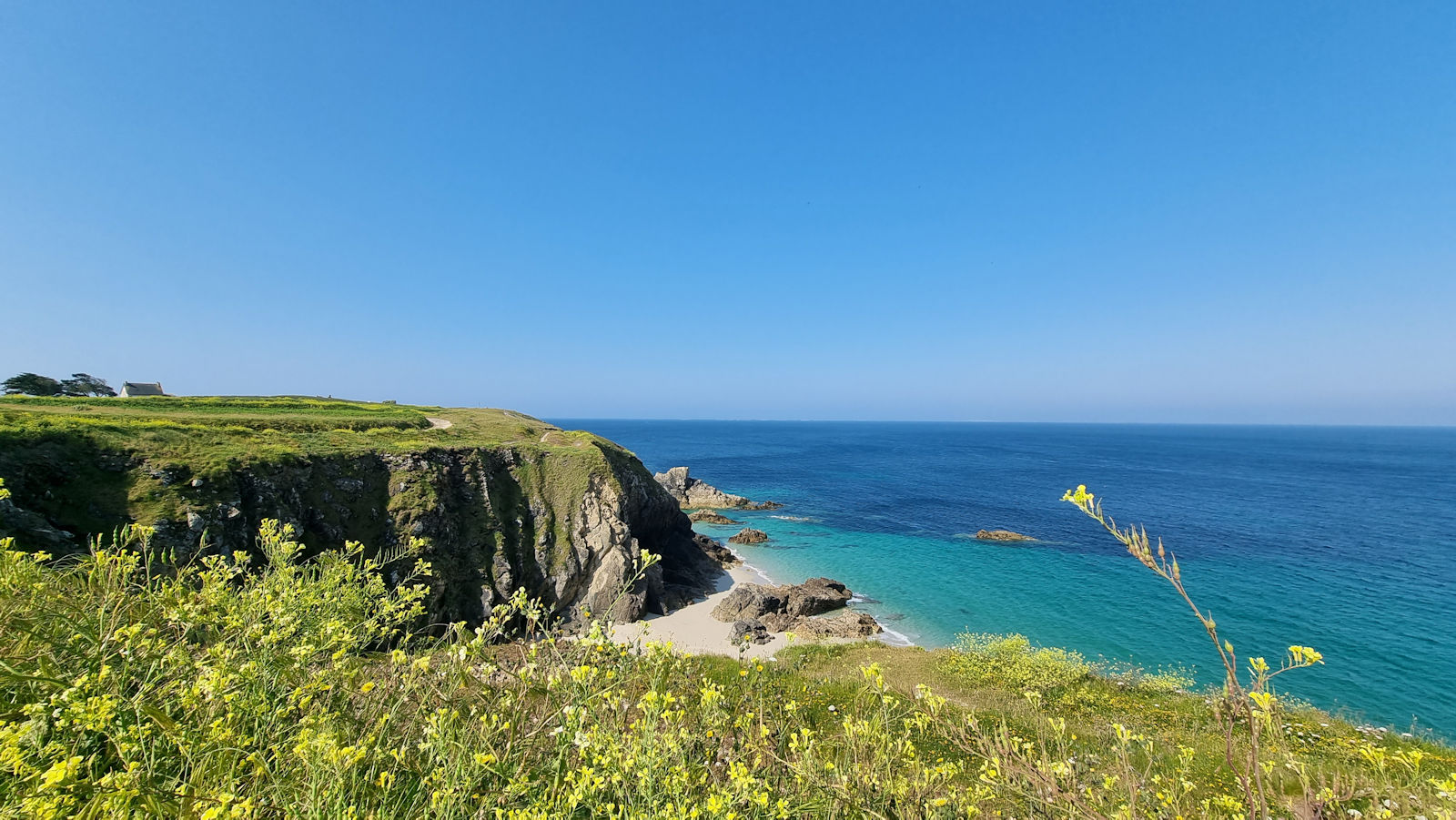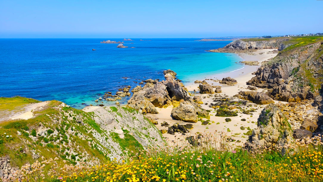 Und es war schon wieder eine überaus ruhige Nacht. Es ist bereits gegen 9 als der Bialettiduft durchs Womo zieht. So geht es erst gegen 10 Uhr in Richtung des Zöllnerpfades GR34. Das Wetter ist einfach nur traumhaft und an manchen Passagen des Weges ist es fast schon zu heiß. Unser Ziel ist die etwa 4,5 km entfernte Plage de Kerhornou.