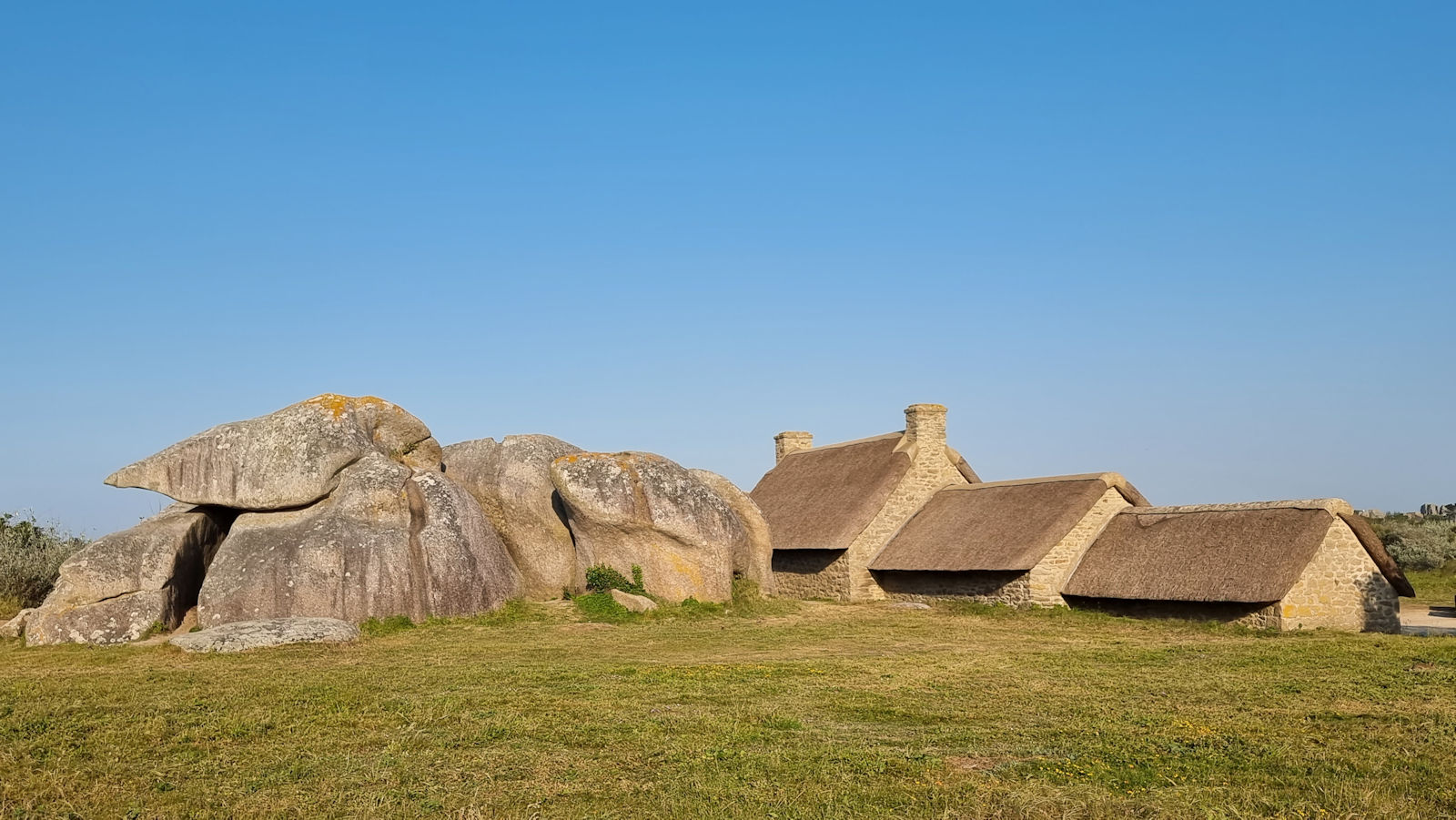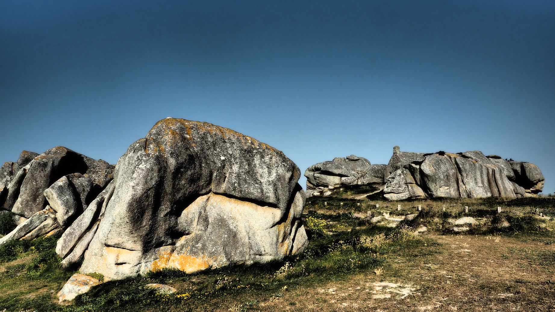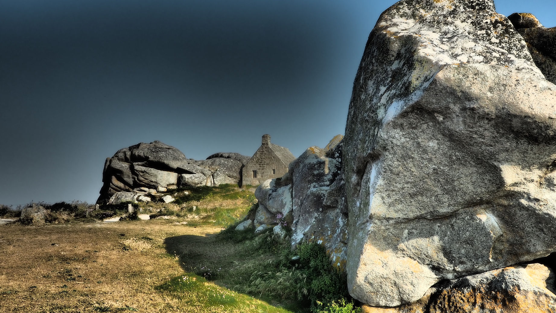 Von hier aus geht es dann auf direktem Weg nach Meneham. Schon bei der Ankunft sind wir beeindruckt von den riesigen Granitmurmeln, die hier in der Landschaft einfach so herumliegen. Wir finden einen windgeschützten Parkplatz, den trotz strahlendem Sonnenscheins haben wir gerade mal 16 Grad.