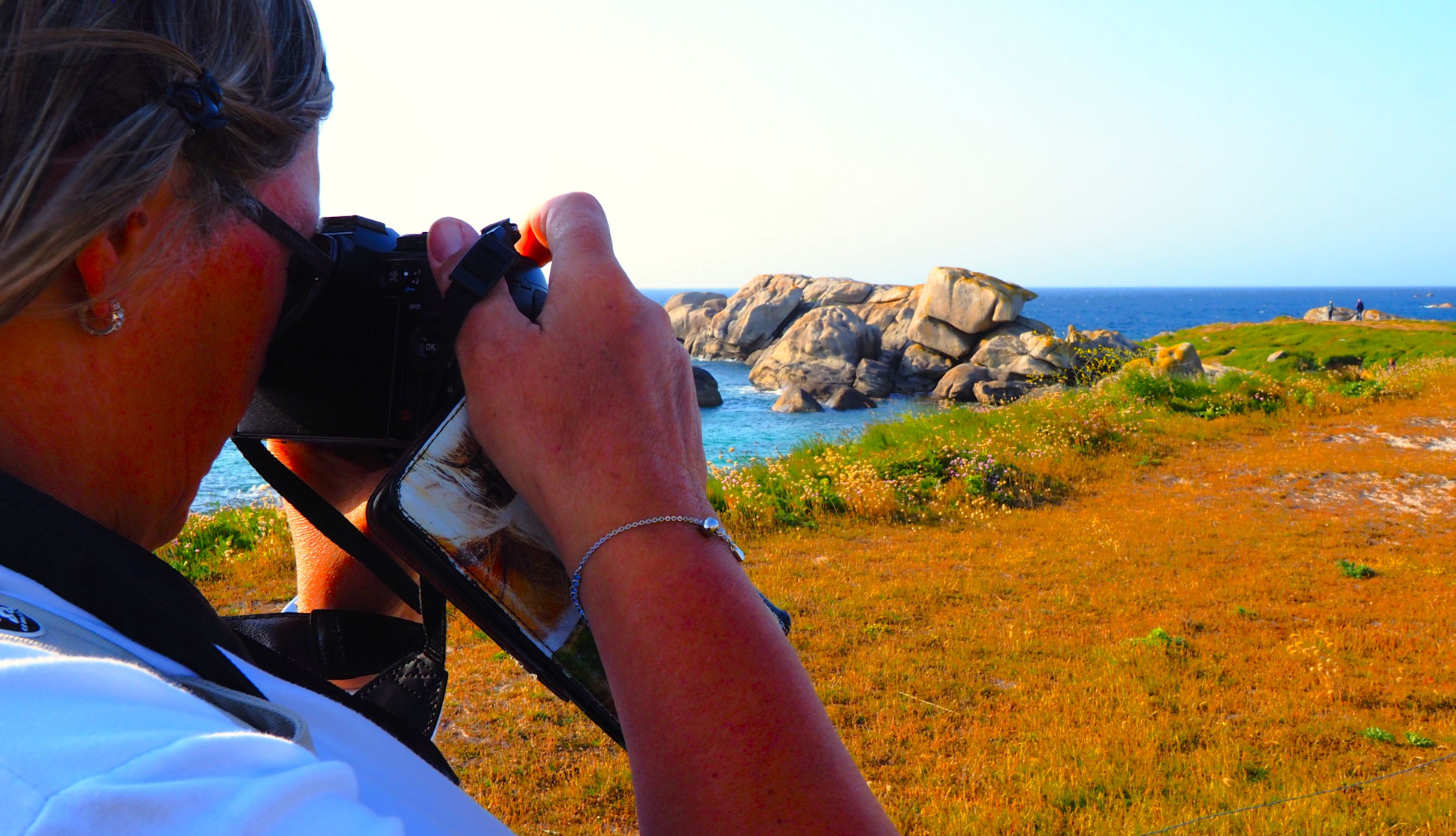 Ein paar Vögel lassen uns ganz dicht an sich heran, doch immer wieder fotografieren wir diese wundervolle Szenerie, ein Teil der sogenannten Legendenküste.