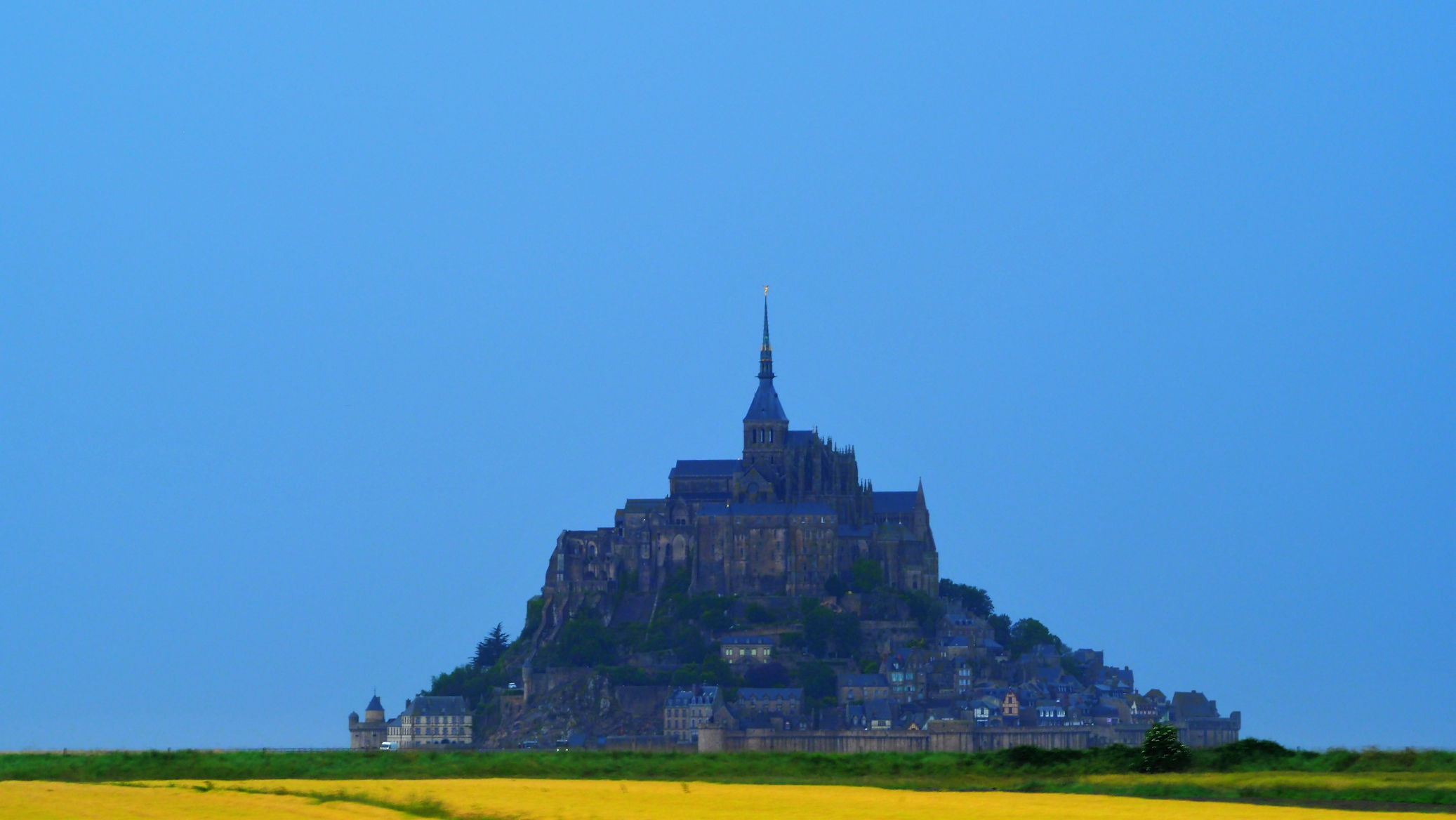 Und nun…wohin? Der dunklen Wolken und des einsetzenden Regens wegen verlassen wir die Bretagne und lassen St. Malo hinter uns. Unser Ziel ist eigentlich so wie immer: total offen. Bereits nach kurzer Fahrt haben wir eine bedrohliche Gewitterwalze vor uns am Himmel, durch die wir nur ungern hindurch fahren möchten. So biegen wir links ab und landen auf einem Parkplatz mit Blick auf eins der berühmtesten Sehenswürdigkeiten Frankreichs: den Mont Saint Michel.