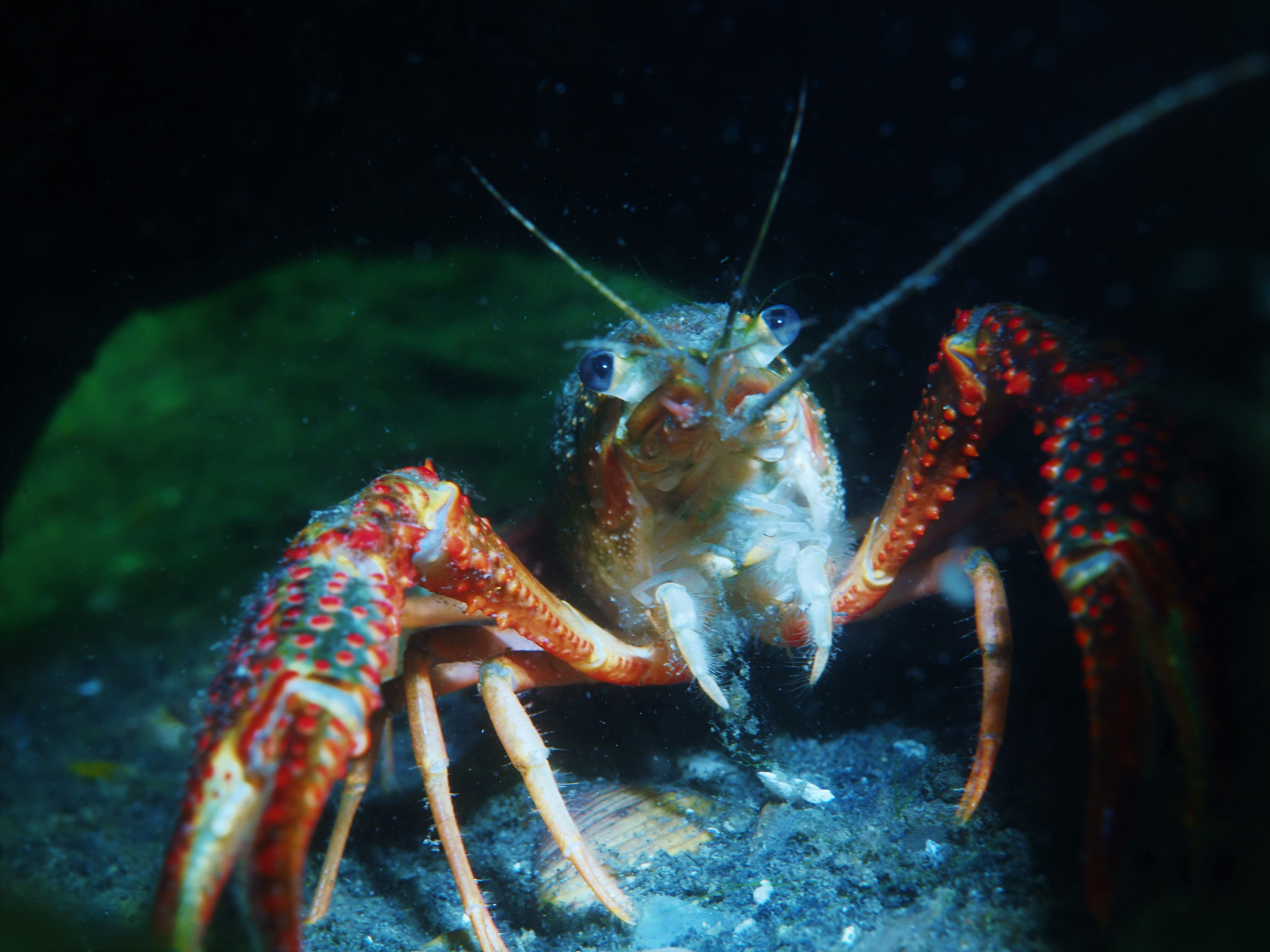 Nach einer sehr ruhigen Nacht wird die Vermutung beim ersten Tauchgang leider bestätigt. Sie Sichtweite liegt bei 1,5 – 2 Metern, wozu Justin und Ralf eine neue Theorie entwickeln. Da man als Taucher in alle vier Richtungen und nach oben und unten ebenfalls diese Sichtweiten hat, herrschen insgesamt 9-10 Meter Sicht. So ganz typisches Taucherlatein eben…aber schon irgendwie nett.