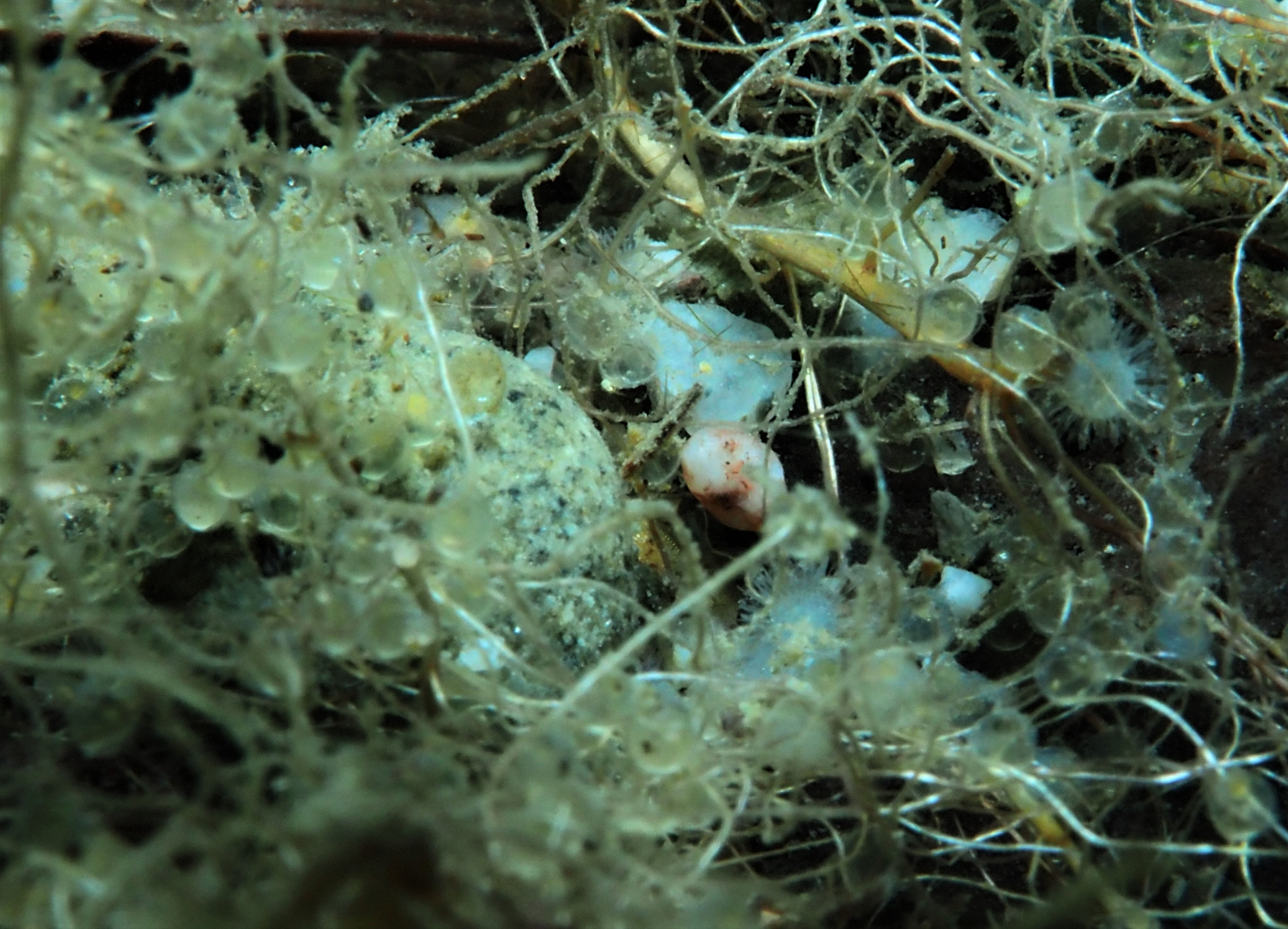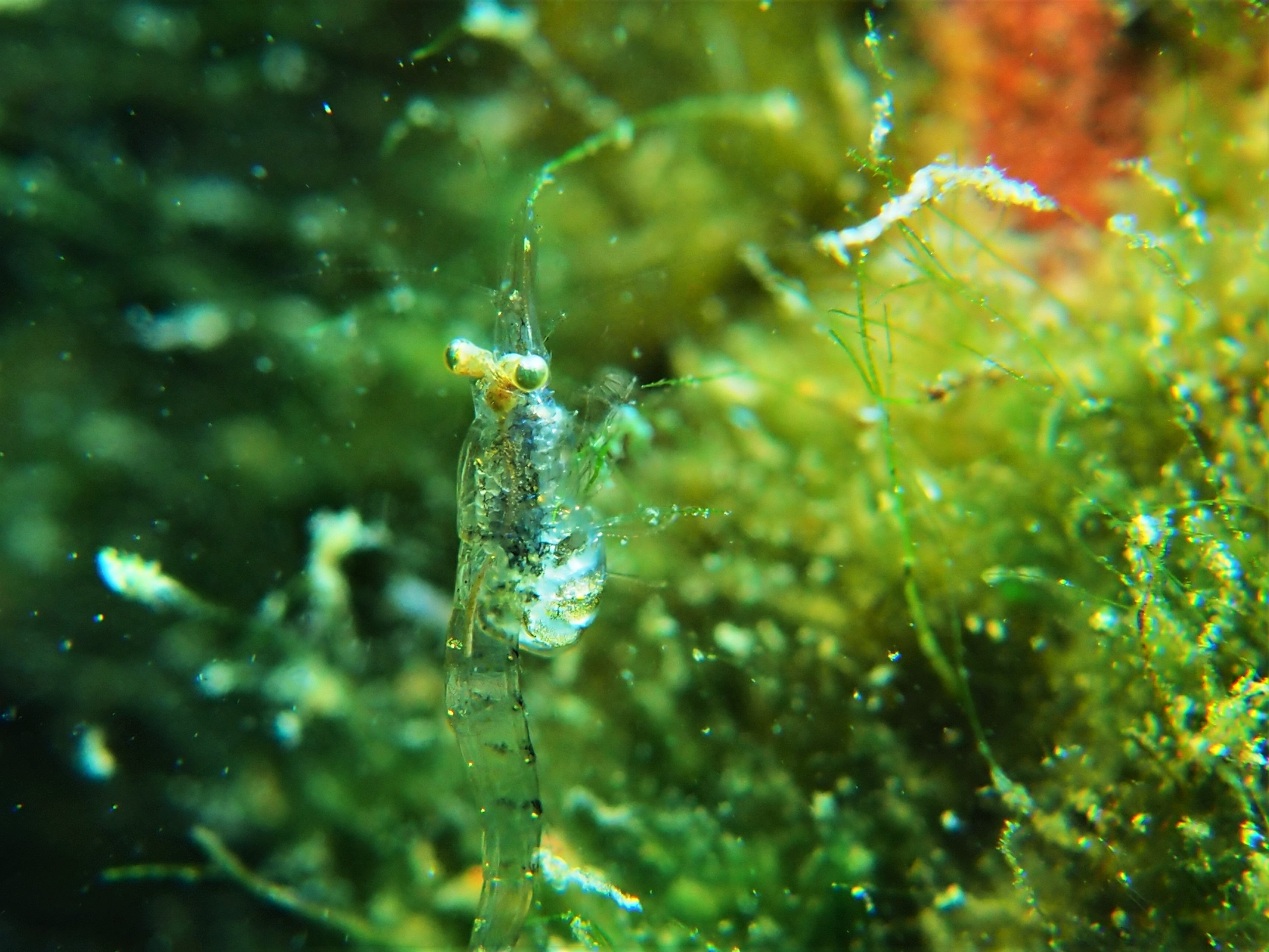 Weiter geht es zu den Winzlingen im See. Die Garnelen sind immer noch da, zwar nicht mehr so zahlreich, aber nun schon deutlich länger als in den Jahren vorher. Ob das mit der schlechteren Sicht und dem wahrscheinlich dadurch resultierenden höheren Futterangebot zusammenhängt? Vielleicht sollte man hierzu mal einen Biologen fragen.