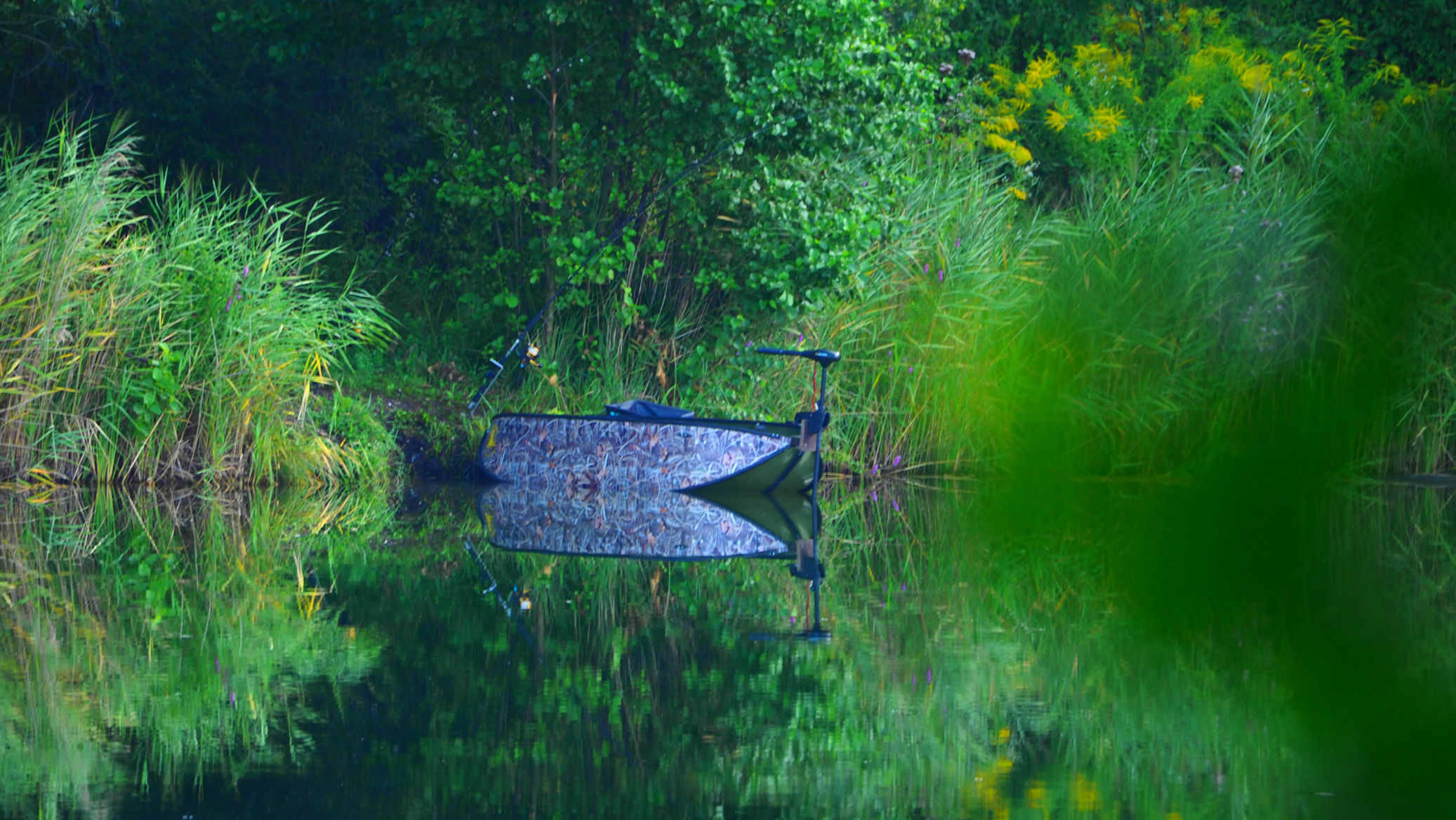 Leicht zerknirscht über die fehlenden Bleitaschen geht Ralf ins Wasser. Sein Blei platziert er im Jacket und dann sind wir wieder in einer anderen Welt. Heute morgen zeigen sich Karpfen und gleich alle drei Koi, wobei wir unsere Aufmerksamkeit den beiden weißen Kois schenken. Die markanten Schuppen des einen sind mindestens so spannend, wie die orangefarbene Zeichnung des anderen.