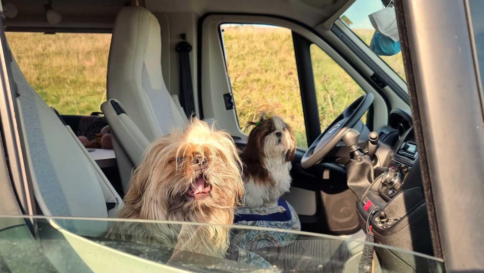 Gegen halb 5 sind wir mit unseren Tauchgängen fertig, die Ausrüstung hat bereits gut getrocknet und der Parkplatz ist nahezu leer. Schnell sind die Flaschen gefüllt, während unsere Fellnasen im Womo auf uns warten. Amadeo scheint uns zuzurufen: „Macht hinne, wir wollen uns gleich mit unseren Freunden treffen!“