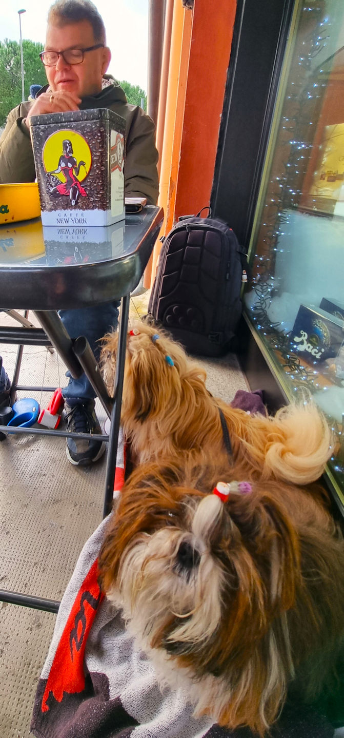 Ja wir sind im Süden. Bereits am gestrigen Abend waren Feuerwerke zu hören und die ganze Nacht hat es irgendwo geböllert. Unseren Amadeo störte das nicht, aber unser Hundemädchen war etwas meckrig letzte Nacht und ist heute Morgen entsprechend unausgeschlafen und morgenmufflig. Aber schon nach der ersten Gassirunde ist das alles vergessen. Zum Frühstück gibt es Bialetti mit Brioches und Meerblick. Der Himmel ist blau und die Sonne scheint vom wolkenfreien Himmel.