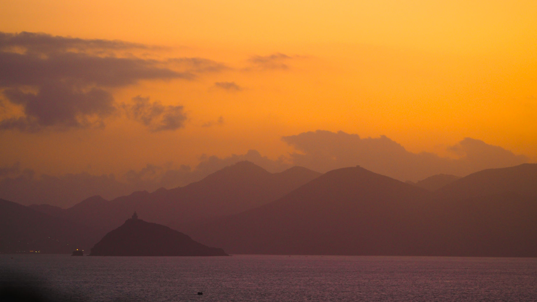 Gegen 4 Uhr beginnen wir mit dem Schmücken unseres Womos und kurze Zeit später folgt ein wundervoller Sonnenuntergang mit Blick auf die Inseln Elba und Korsika.