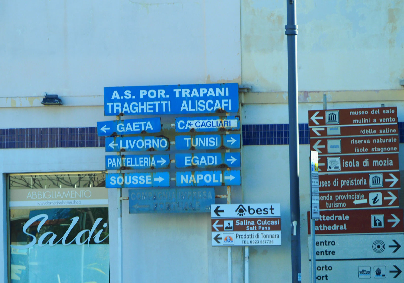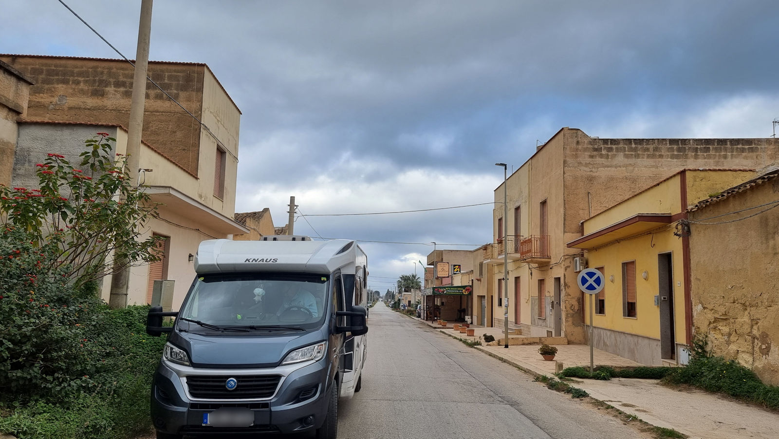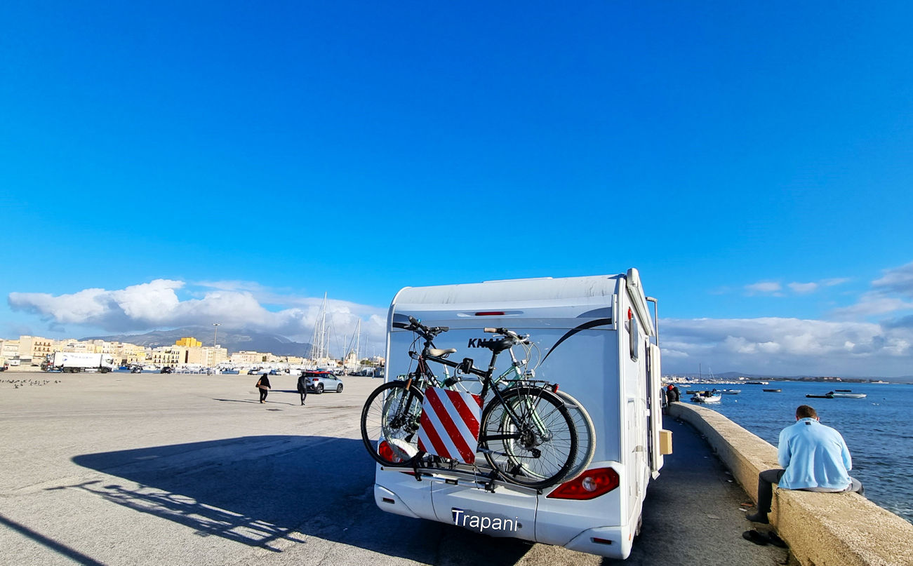 Gegen halb 2 machen wir uns auf den Weg in Richtung Stadt. Erst versuchen wir einen Parkplatz etwas nördlich außerhalb liegend. Aber hier ist es extrem windig und so richtig schön ist dieser Ort auch nicht. Einen kurzen Blick auf Google Maps später und wir haben einen Parkplatz in Hafennähe Trapanis ausgemacht. Und schon sind wir unterwegs. Immer am nördlichen Lungomare entlang, dann kurz durch die Stadt auf die südliche Seite und wenig später parken wir auf dem großzügigen Parkplatz ein.
