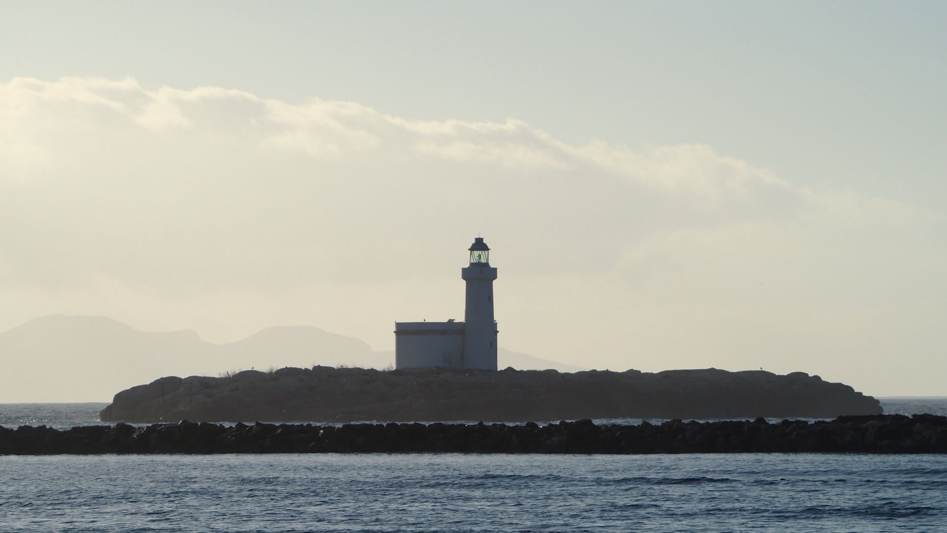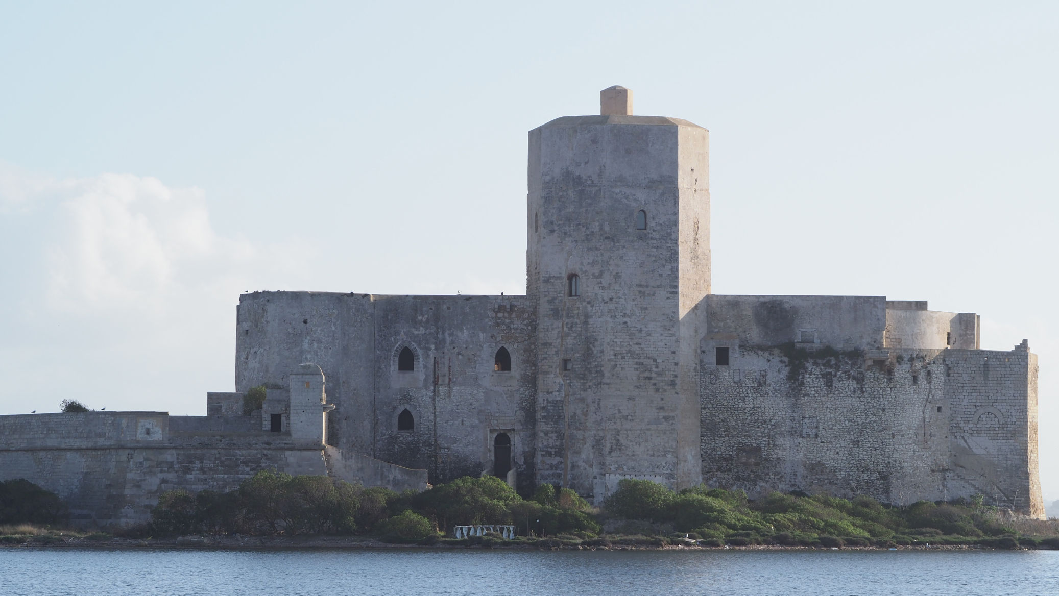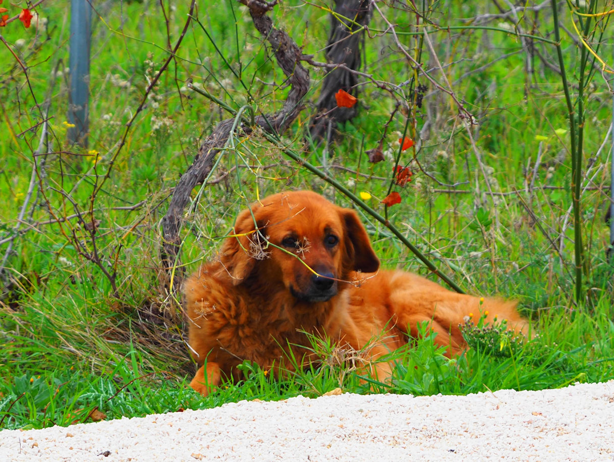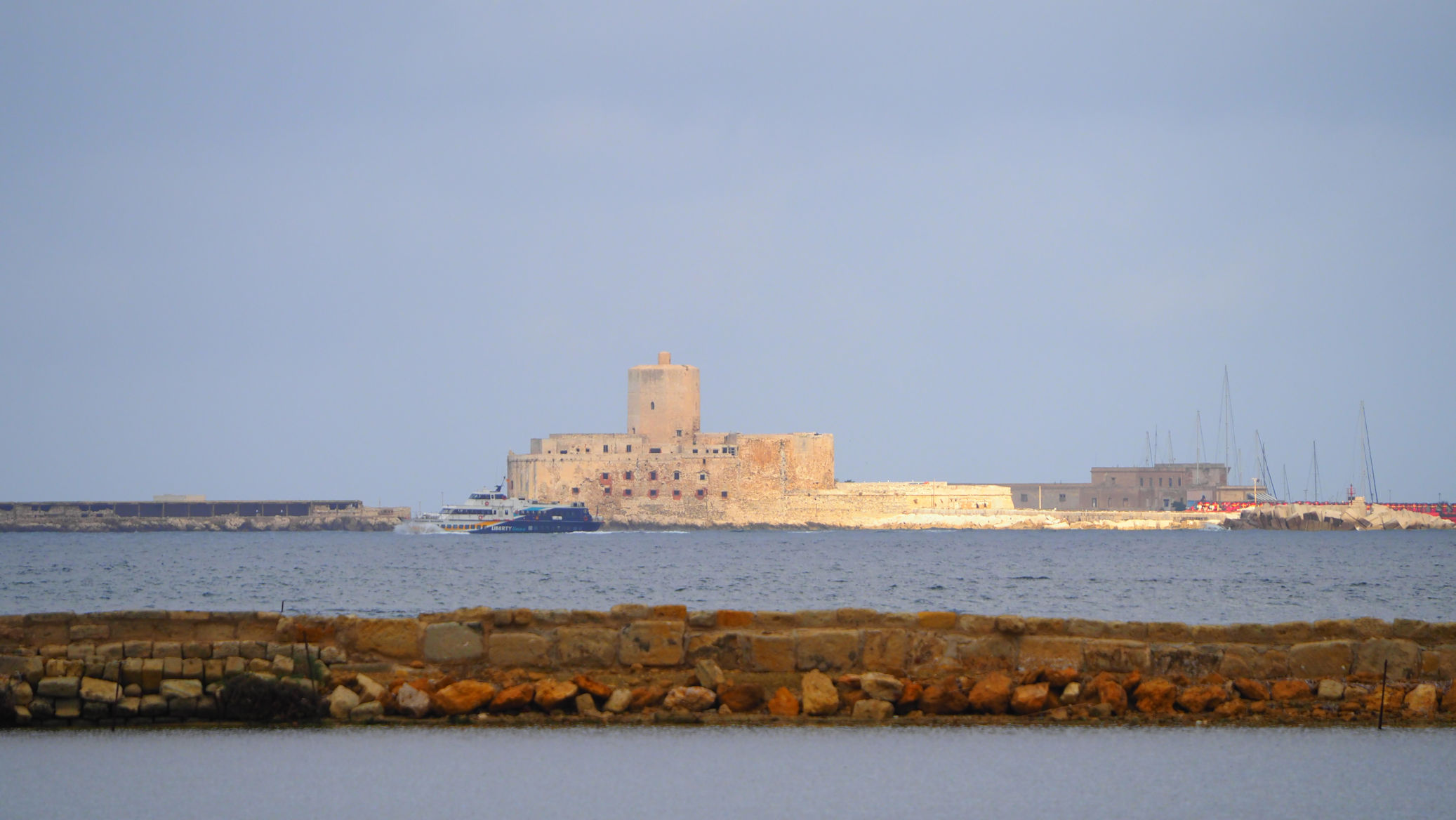Außer uns sind noch zwei andere Womos da. Eins aus Deutschland, aber dessen Besatzung schafft nicht mal ein „Hallo“ und eins aus Trapani. Ein netter Herr mit seinem Schmusehund. Er hat Zeit für einen netten Plausch und ist sehr nett. Und sein Hund lässt sich von Ulli die ganze Zeit kuscheln. Der Mann verabschiedet sich mit einem netten „Auguri, ci vediamo!“ und dann ist es Zeit für eine Mittagspause auf der Hafenmauer. Die Sonne ist wunderbar warm und die Aussicht an diesem Ort ist toll.