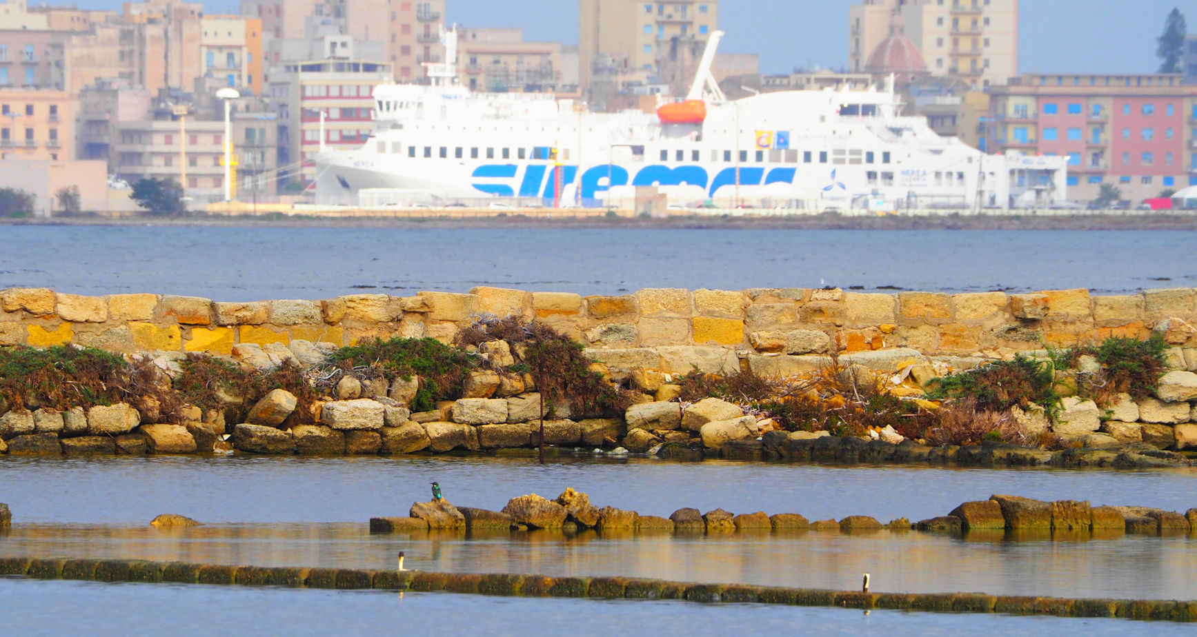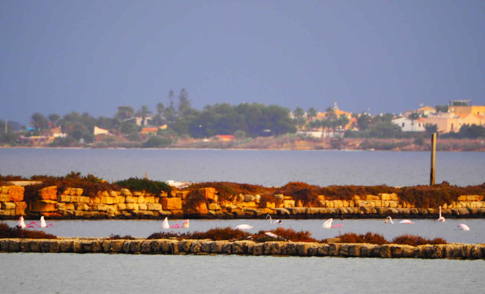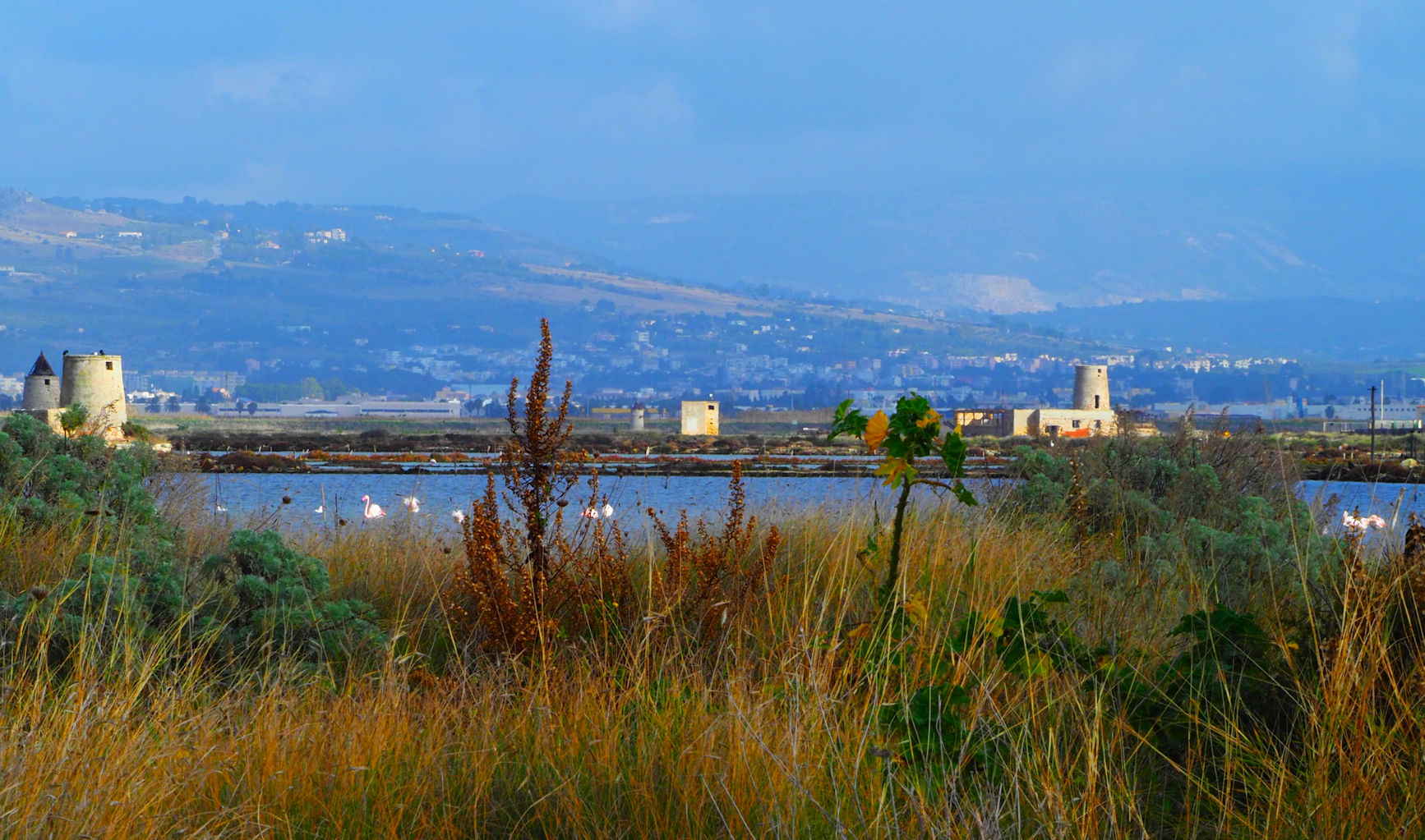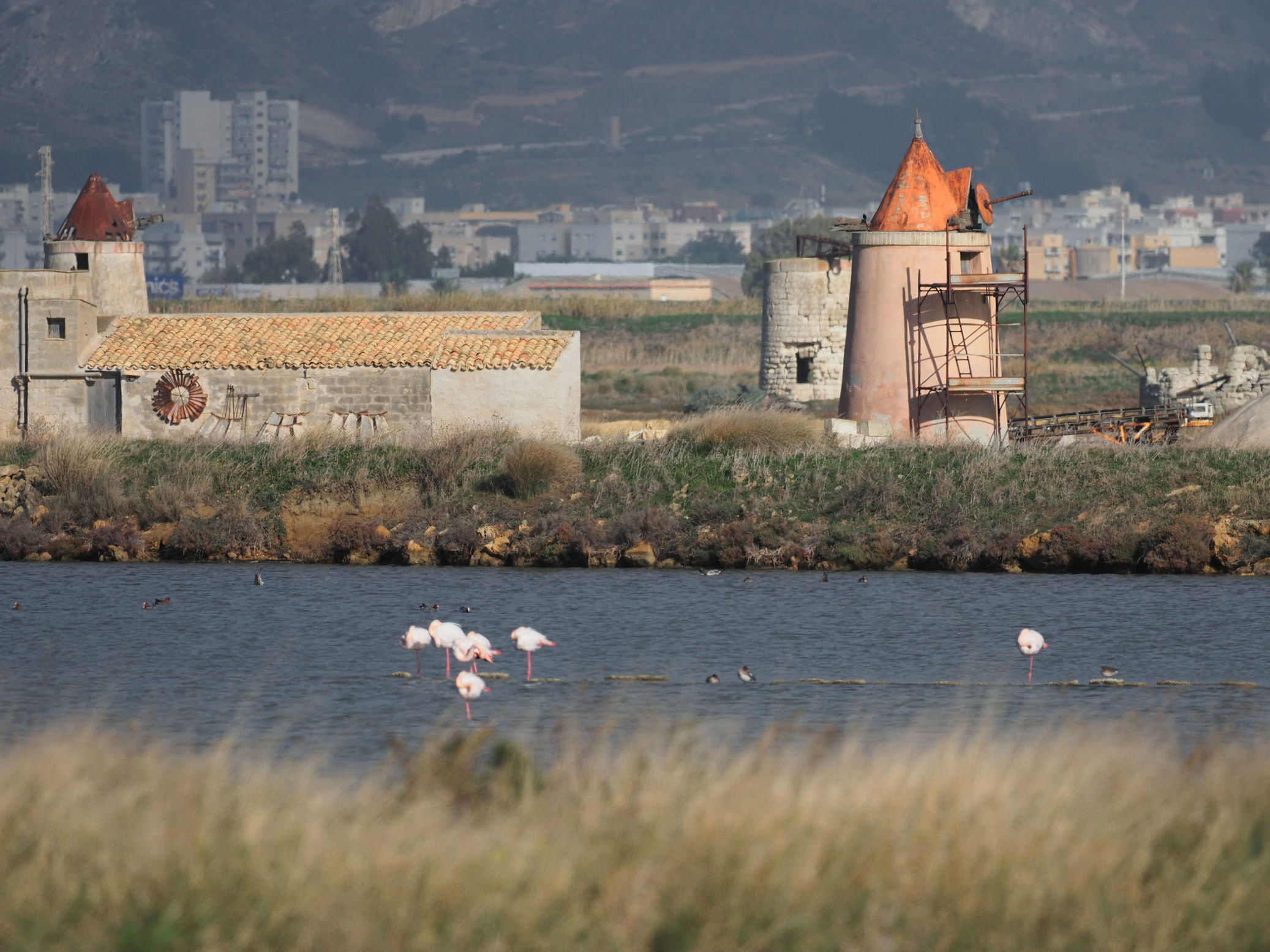 Wir verweilen etwa 2 Stunden hier und es entstehen einige Aufnahmen der hier lebenden Vögel, der Landschaft, der Windmühlen und der Stadt Trapani, die heute um die Mittagszeit wunderbar in der Sonne liegt.