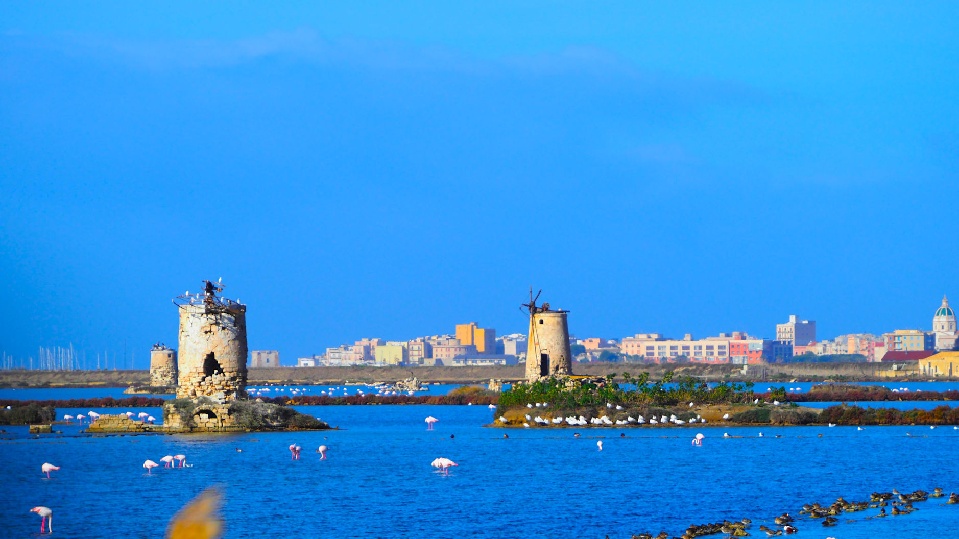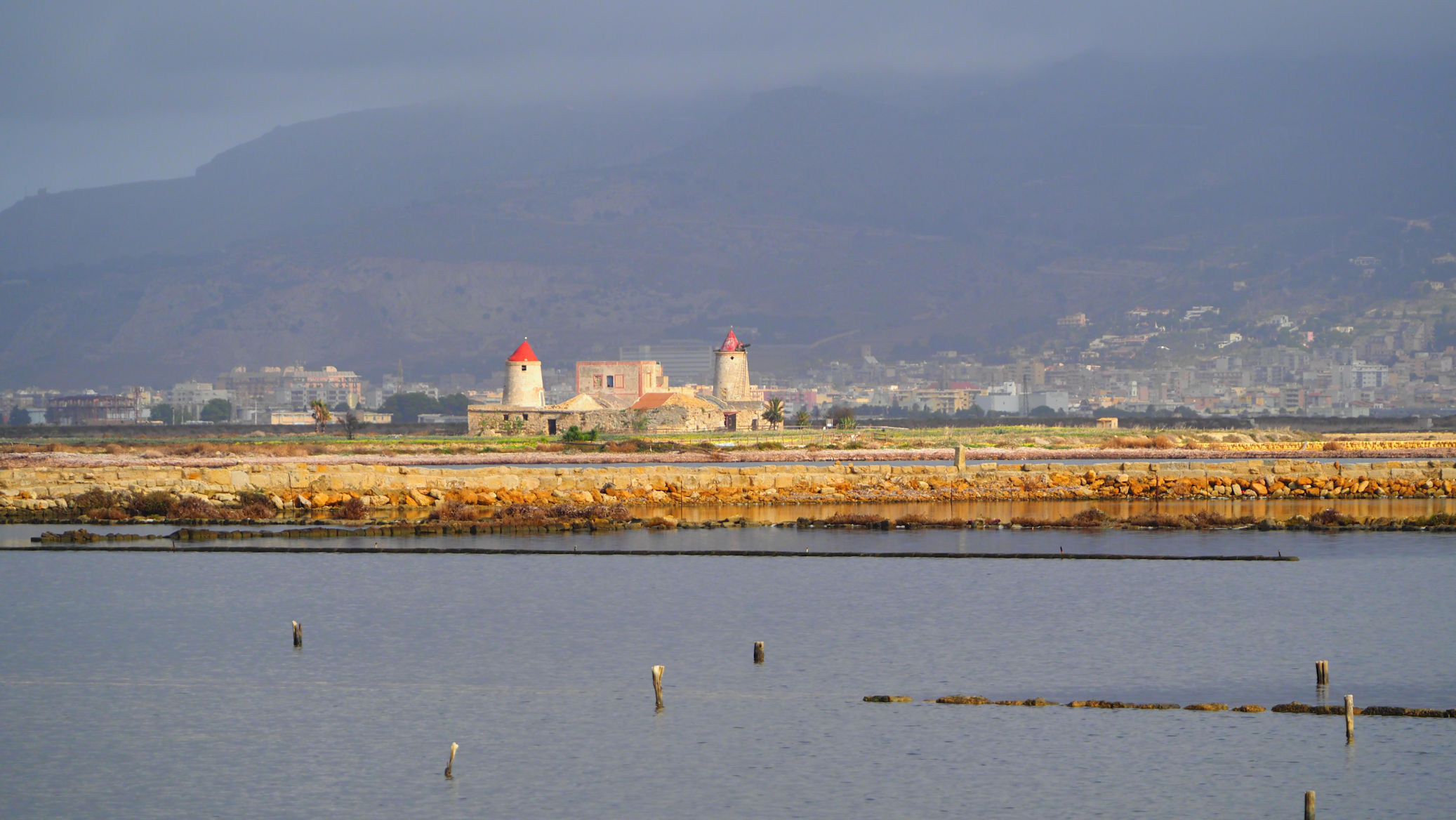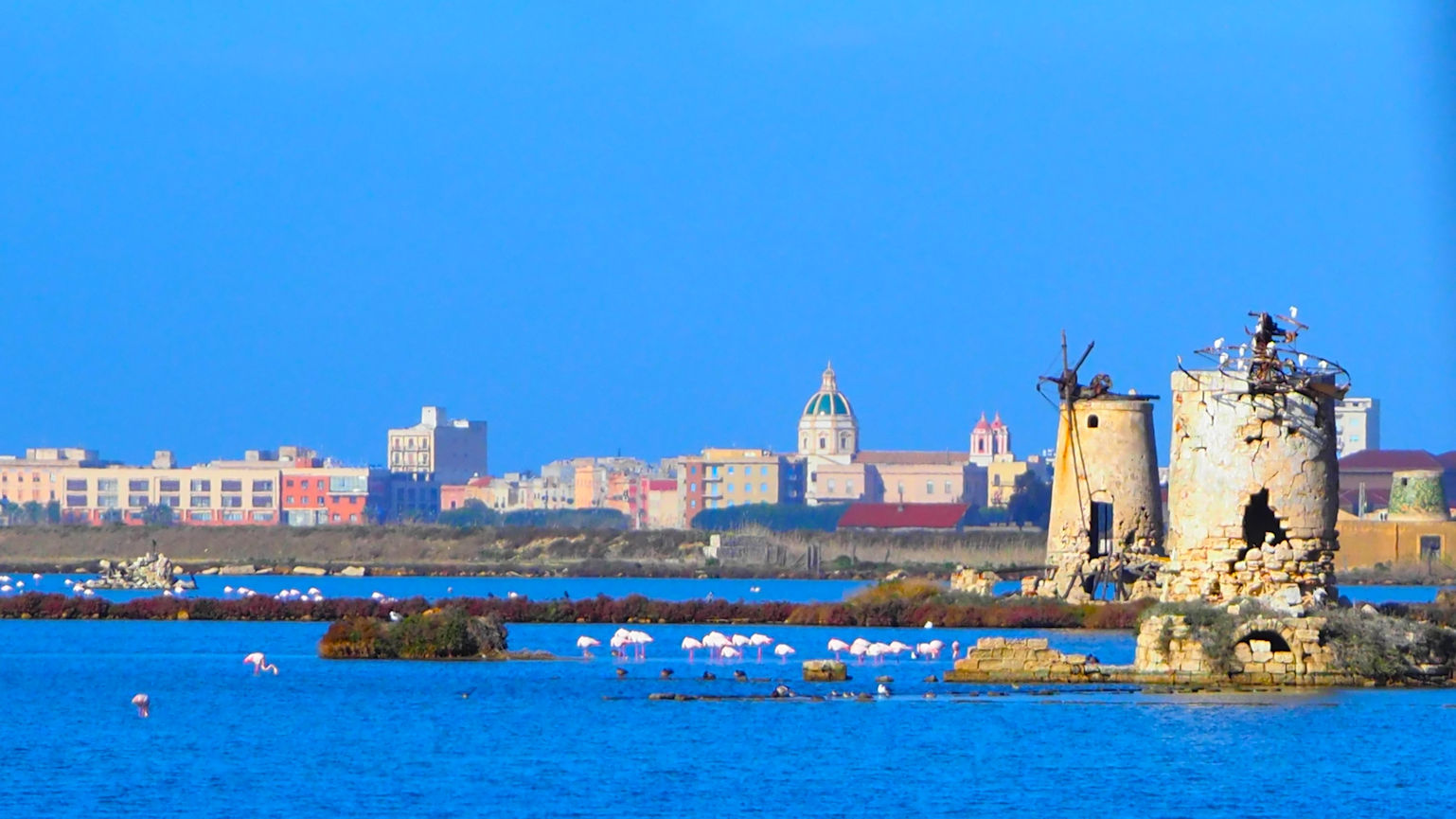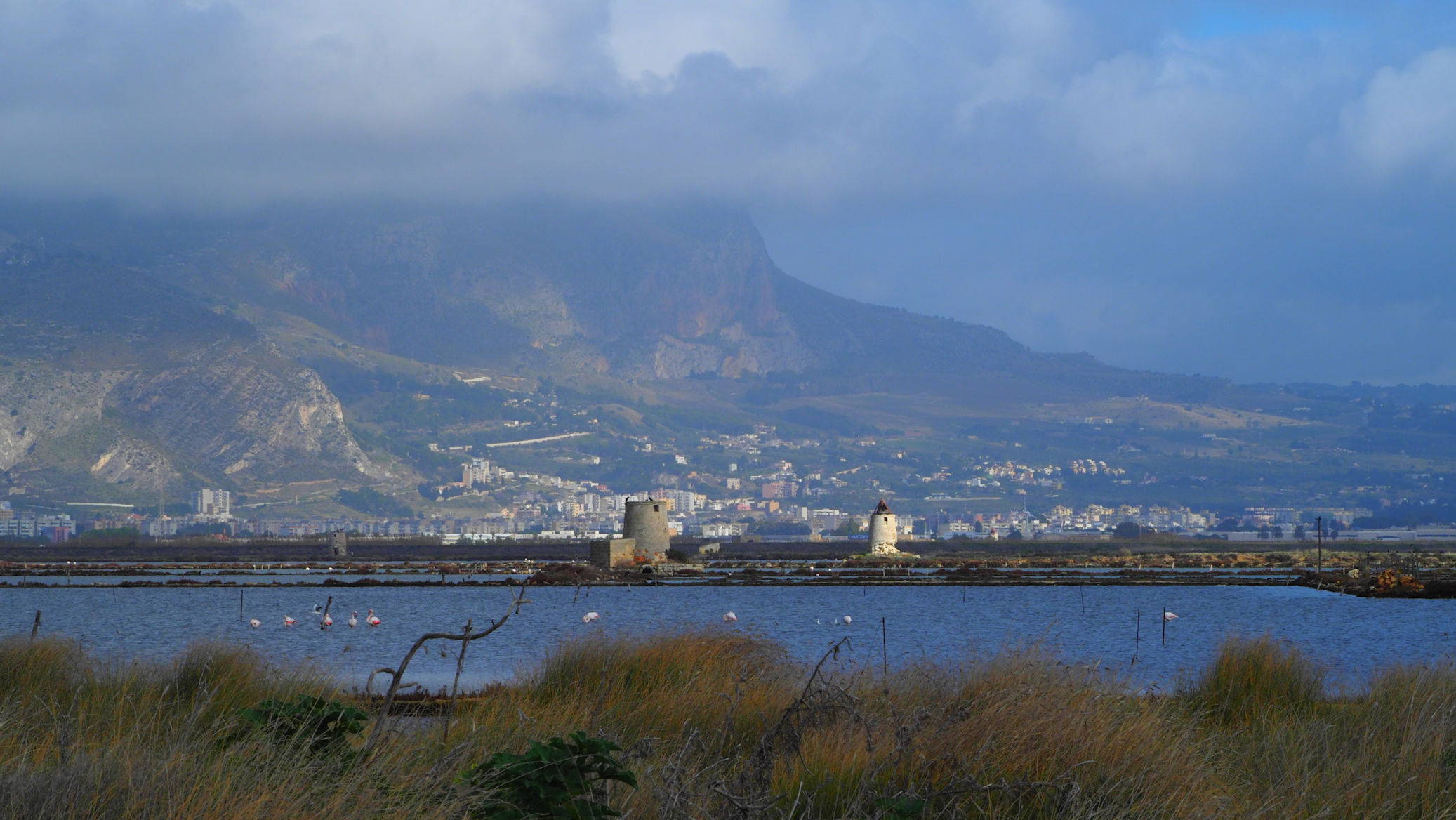 Wir verweilen etwa 2 Stunden hier und es entstehen einige Aufnahmen der hier lebenden Vögel, der Landschaft, der Windmühlen und der Stadt Trapani, die heute um die Mittagszeit wunderbar in der Sonne liegt.