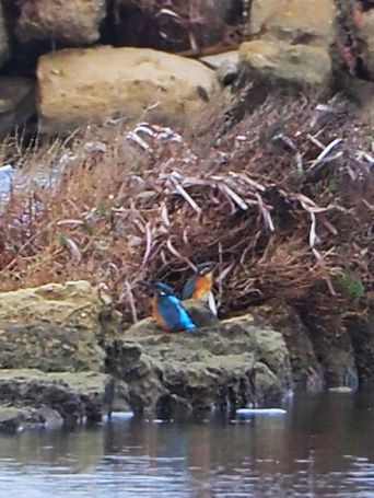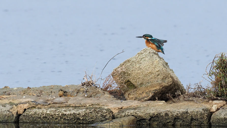 Als wir so leicht frustriert auf einer Bank sitzen und überlegen ins Womo zurückzugehen, fliegt ein Eisvogel laut piepend in Greifentfernung an uns vorbei. Also bleiben wir noch ein bisschen, denn vielleicht können wir diesen wunderschönen Vögel mit unseren Kameras einfangen.