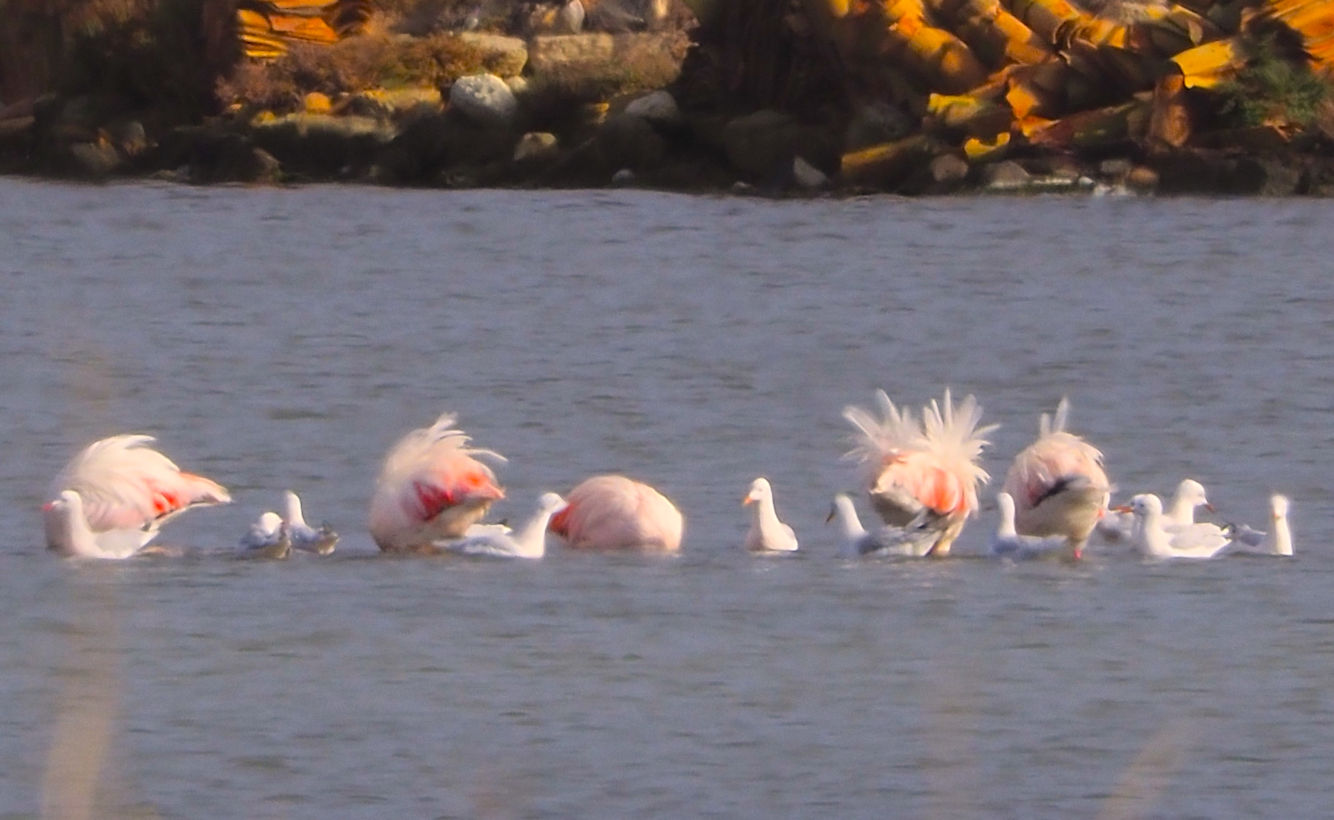 5 Sekunden hat die Sonne heute Morgen für die Windmühlen übrig und genau diese halten wir im Bild für Euch fest, sowie auch Flamingos, die „Alle meine Entchen“ spielen. Sonnenaufgang und Eisvogel sind aber leider Fehlanzeige.